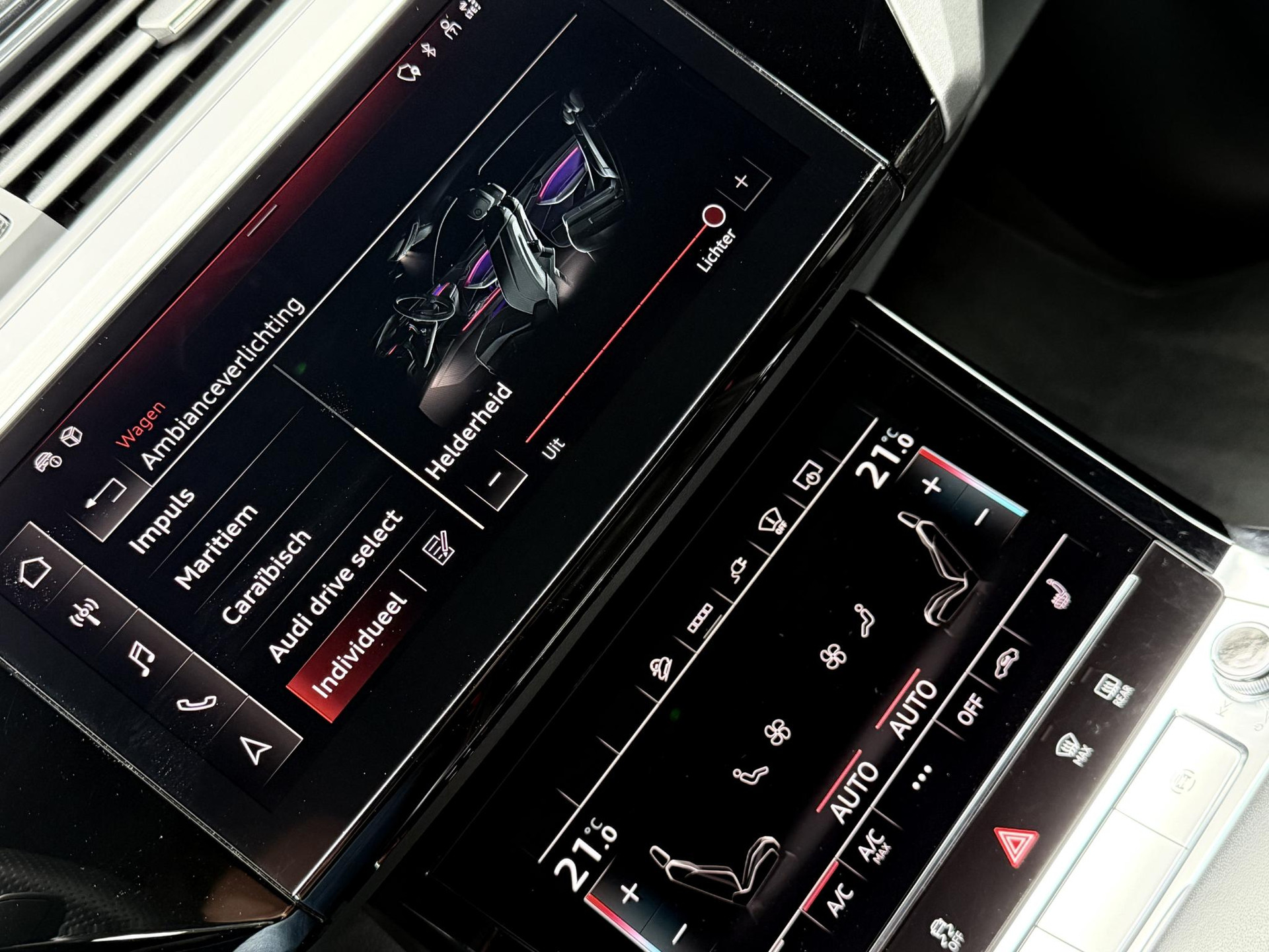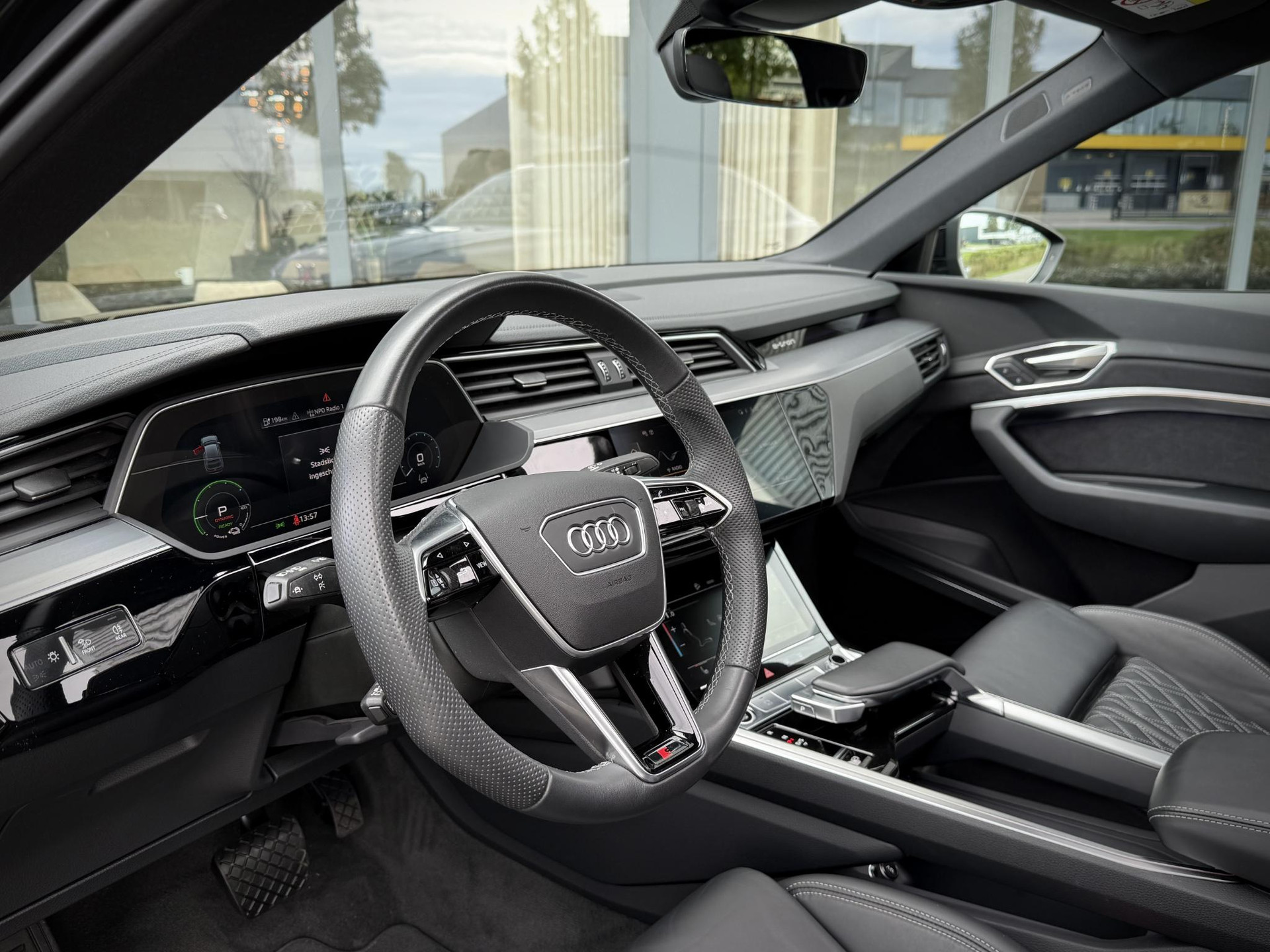 Alleen deze week *** van EUR 45.950,- voor EUR 44.950,- *** In nieuwstaat verkerende en van eerste eigenaar afkomstig, dealer onderhouden en schadevrije Audi E-Tron Sportback 50 Quattro Deze uitvoering is voorzien van S line interieur, S line exterieur pakket, hoogglans zwart exterieur pakket, RS Zetels met gestikt soft lederen bekleding, panoramadak, 21 inch hoogglans zwarte en originele S line velgen, privacy glas origineel af fabriek, LED verlichting voor en achter, Quattro vierwiel aandrijving, ACC radar cruise control, Luchtvering (hoogte instelbaar), Sfeerverlichting (kleur instelbaar), elec. verstelbare stoelen met geheugen, Head Up display, elec. achterklep, key less entry & go, Premium Audio/ Bang & Olufsen, 3 spaaks S line stuurwiel, 4 zone airco met climate control voor en achter incl. display voor achterbank, dode hoek systeem, uitstaphulp, Stoelverwarming, 360 graden camera met topview functie parkeer camera voor, achter en zijkant, stoelverwarming, draadloze telefoonlader, verkeersbordherkenning, etc. TOPSTAAT met slechts 19.710 km !!!!, 75% wegenbelasting korting, lage bijtelling voor ondernemer, prijs is rijklaar incl BTW en 1 jaar algehele garantie. Audi Accu garantie t/m 10-2030!