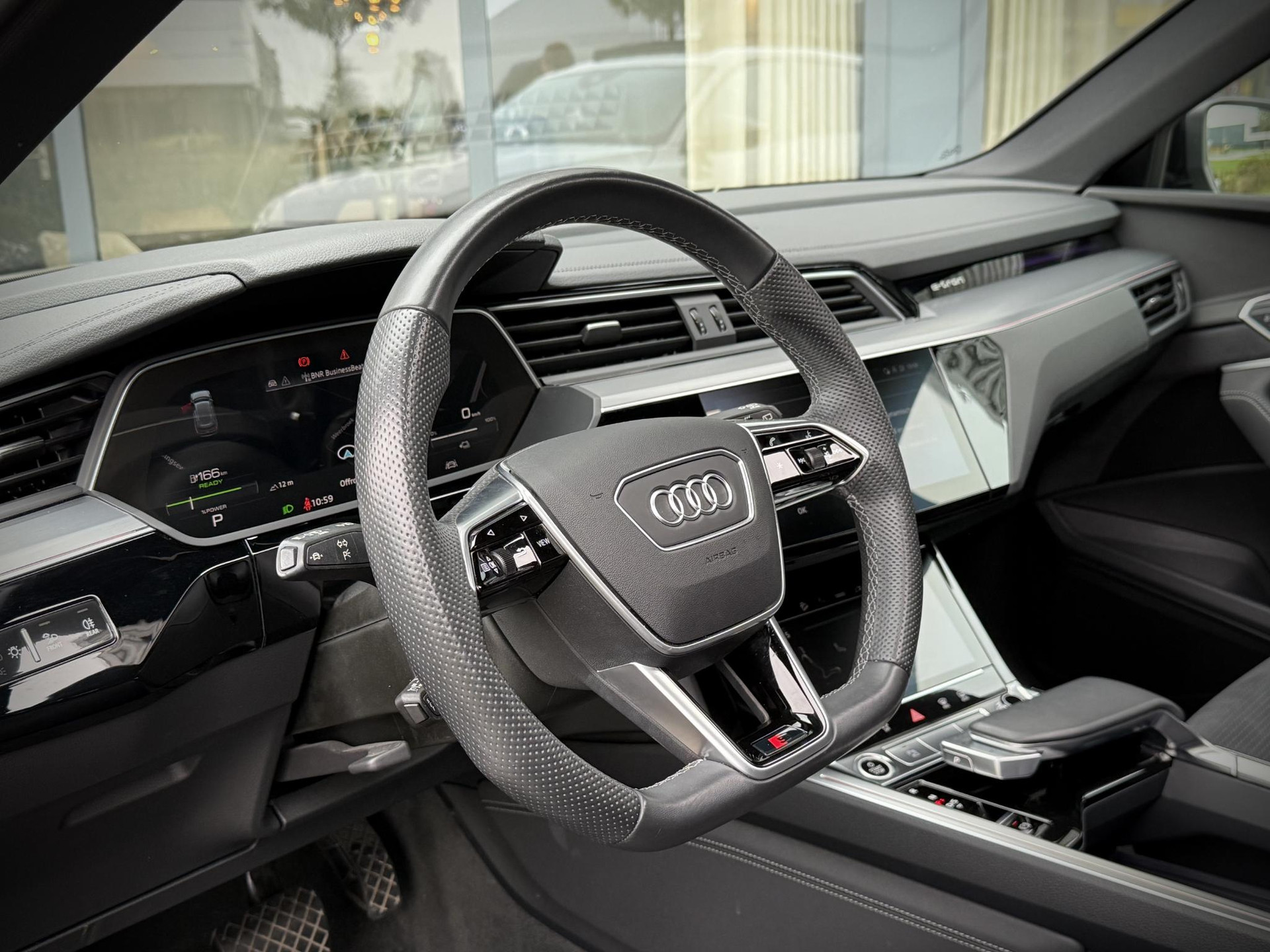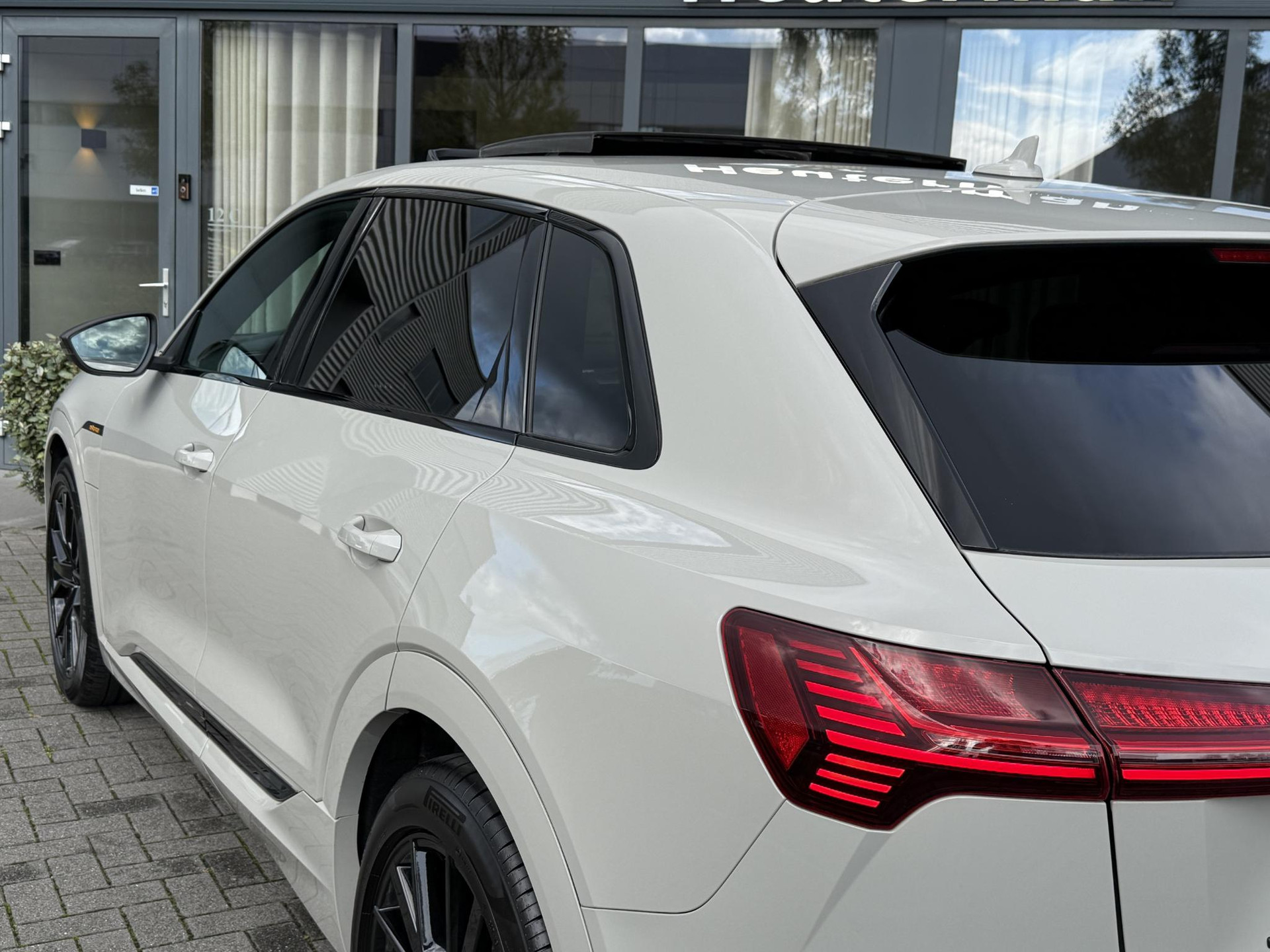 In absolute nieuwstaat verkerende, van eerste eigenaar afkomstig en dealer onderhouden Audi E-Tron 50 Quattro Black Edition. Rechtstreeks van Audi Duitsland afkomstig, niet in gerookt en schade vrij! Voorzien van S line interieur en S line exterieur pakket, hoogglans zwarte exterieur delen (origineel af fabriek), privacy glas (origineel af fabriek), luchtvering (hoogte instelbaar), sfeerverlichting Ambiente Plus (kleur instelbaar), panoramadak, unieke Audi Exclusive kleur Krijt Beige, 21 inch originele hoogglans zwarte S line velgen, E-Tron geel/ oranje remklauwen, afgevlakt 3 spaaks S line stuurwiel, stoelverwarming, draadloze telefoonlader, slechts 31.675 km!, lane assist, Apple Car Play, Matrix LED verlichting voor en achter, achteruitrijcamera incl. parkeersensoren voor en achter, TOPSTAAT! 75% wegenbelasting korting, Audi Accu garantie t/m 8-2030, prijs is rijklaar inclusief BTW en 1 jaar algehele garantie. 2 x laadkabel incl. thuislader (dus geen laadpaal nodig), 2 x sleutel.