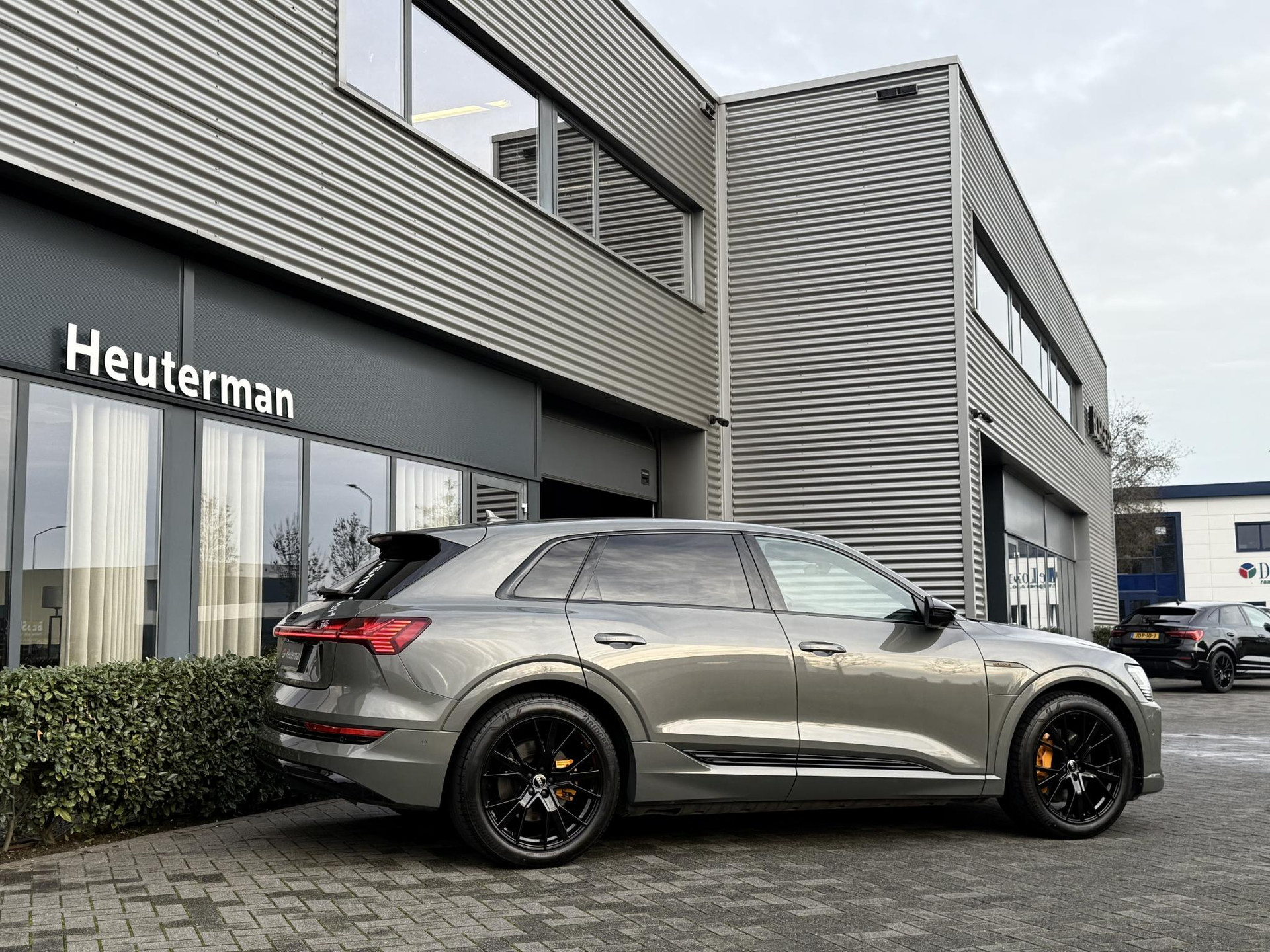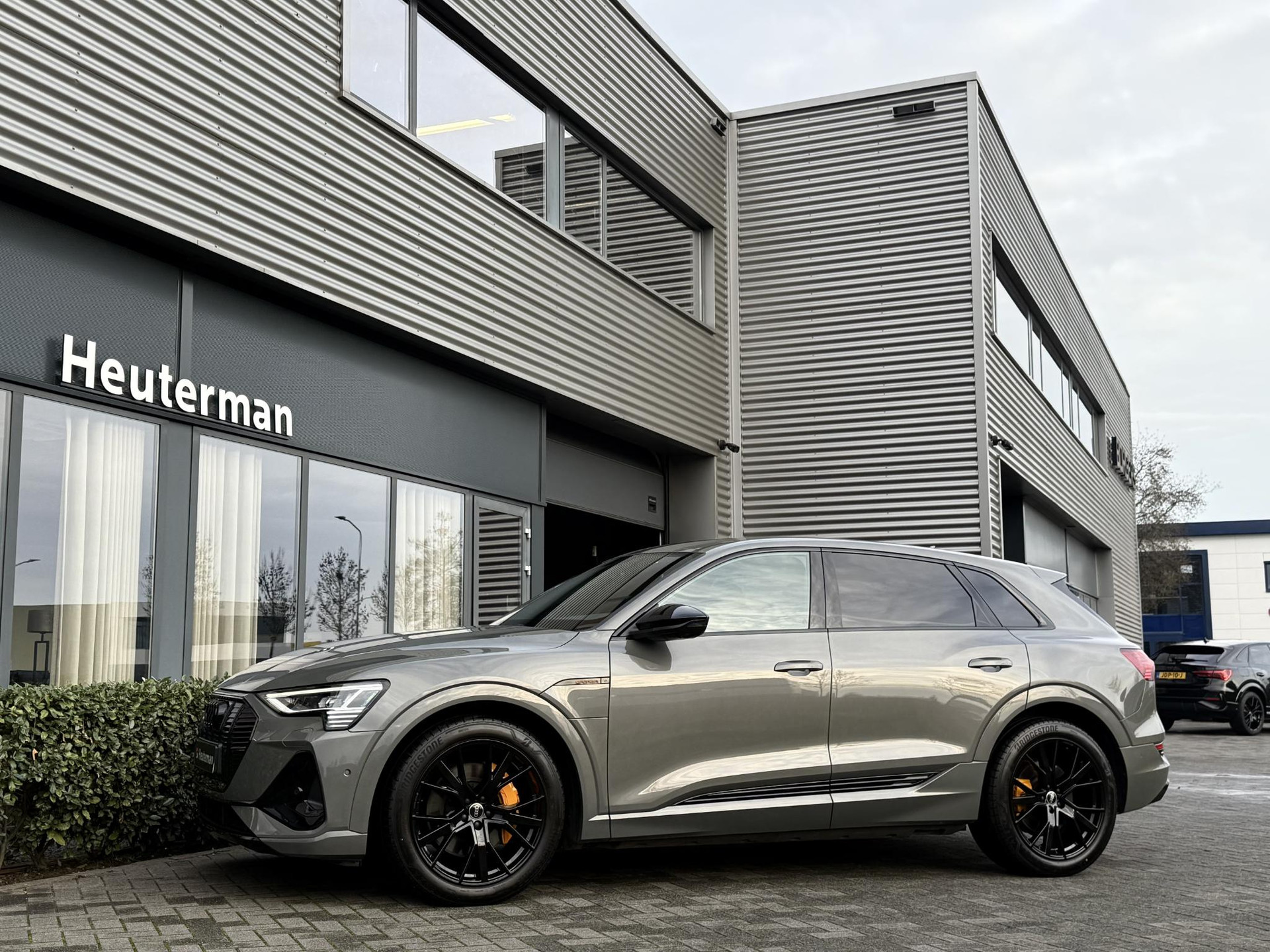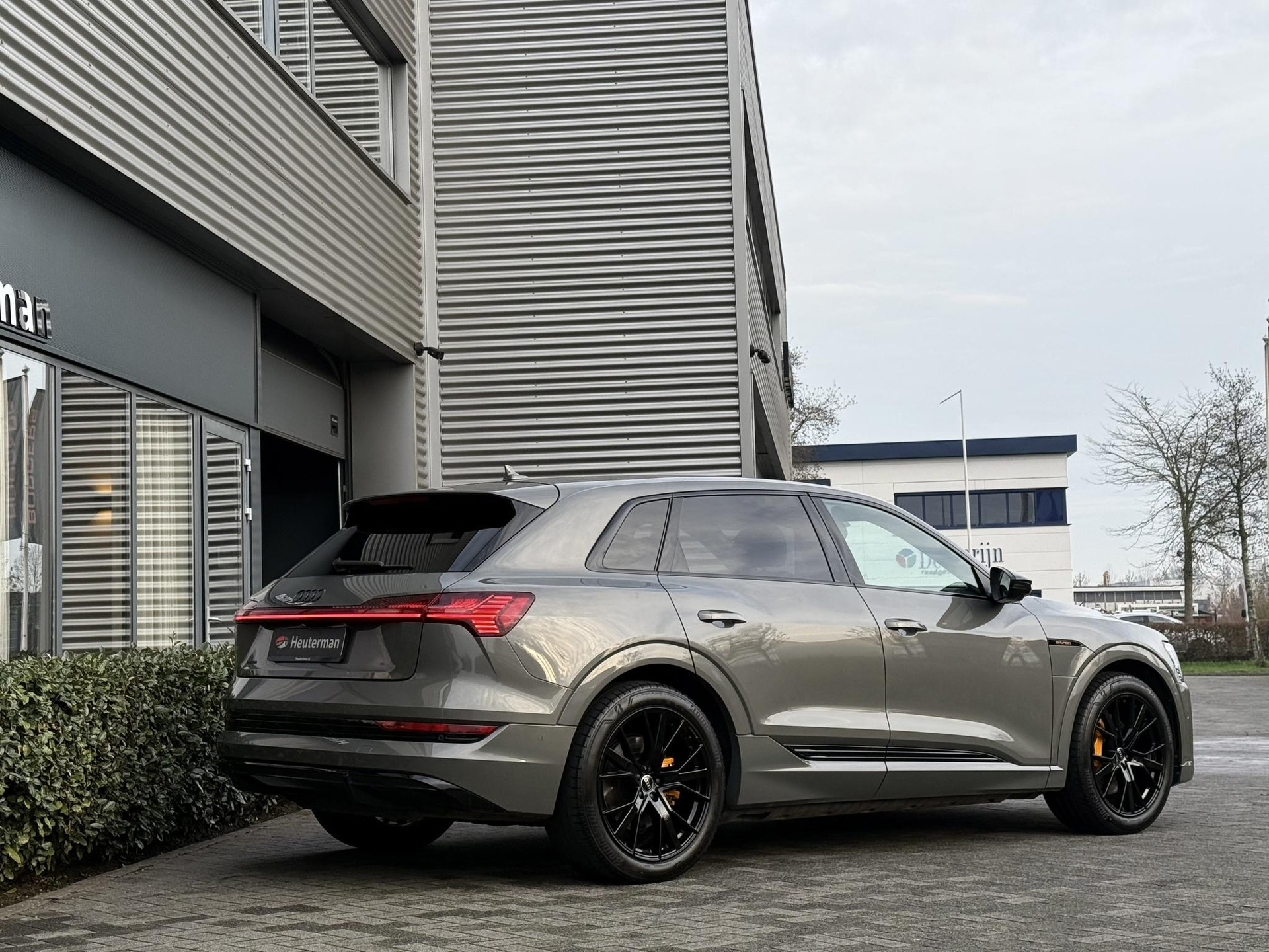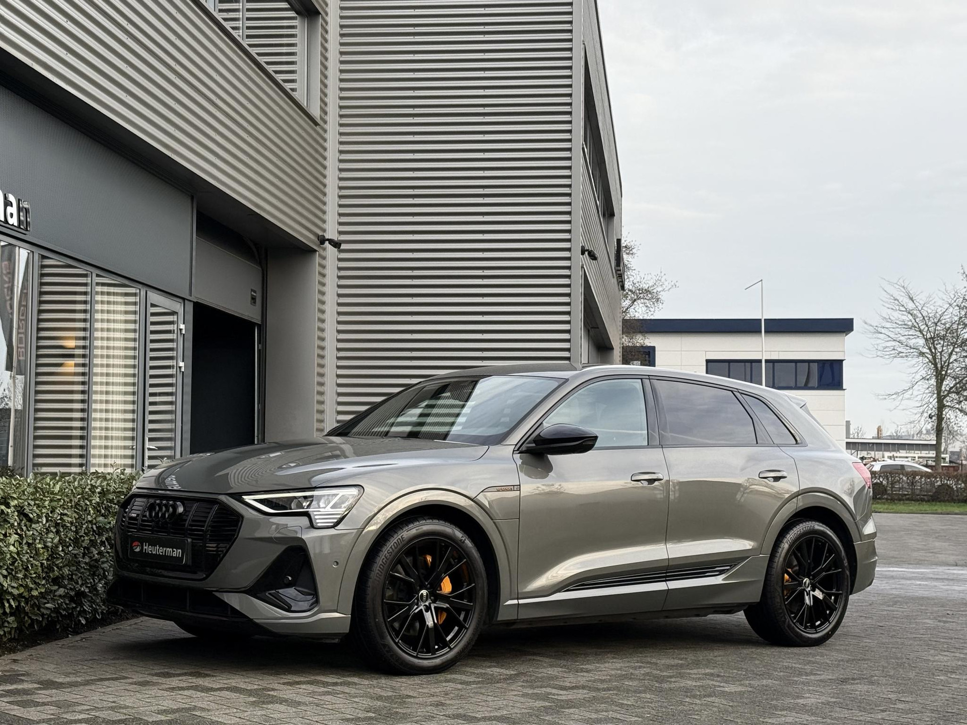 In zeer nette staat verkerende, van eerste eigenaar afkomstig en dealer onderhouden Audi E-Tron Quattro 55 in unieke Black Edition uitvoering. Voorzien van S line interieur, S line exterieur, black optie exterieur pakket, luchtvering (hoogte verstelbaar), sfeerverlichting (kleur instelbaar), 21 inch hoogglans zwarte S line velgen, E-tron geel/ oranje remklauwen/ gordels en sticksels, rondom zicht camera met parkeercamera voor- achter en zijkant met topview en 360gr. functie, draadloze telefoonhouder, electrische achterklep, stoelverwarming, unieke kleur Chronos Grey, Topstaat! 30% wegenbelasting korting, lage bijtelling voor ondernemer, prijs is rijklaar inclusief BTW en 1 jaar algehele garantie. Audi Accu garantie t/m 7-2030.