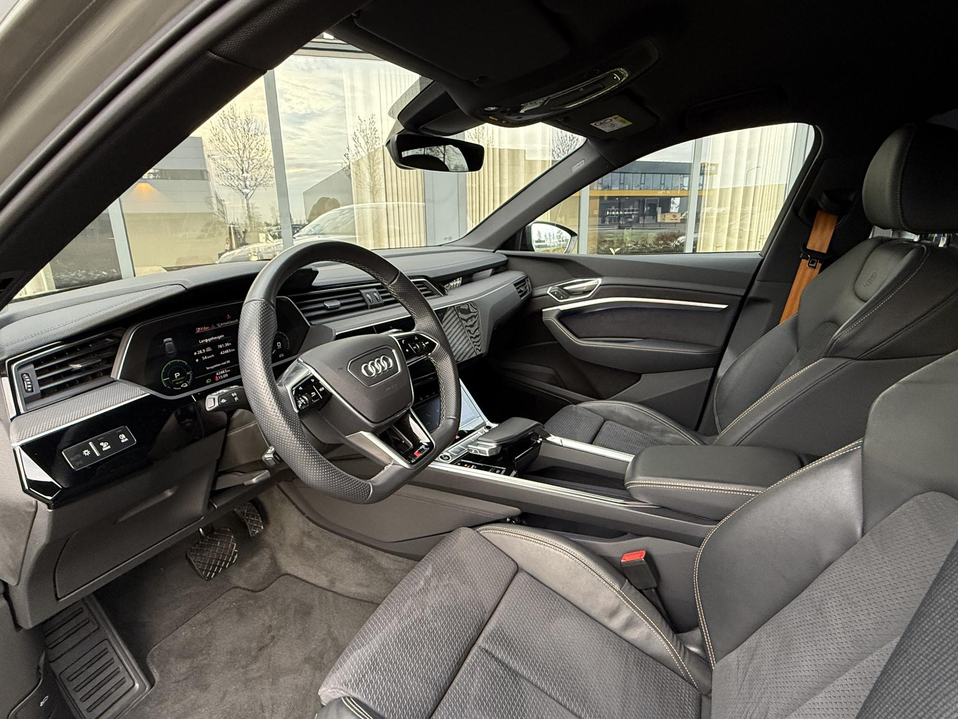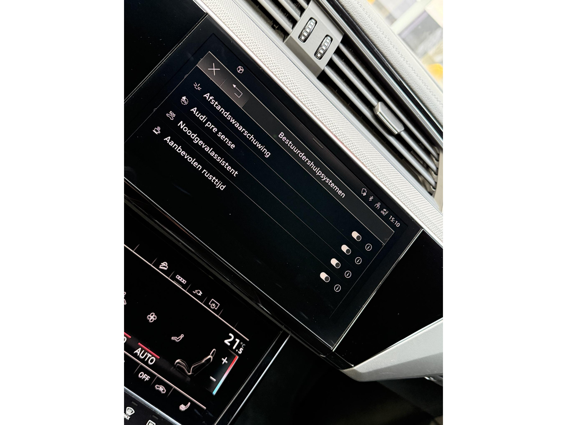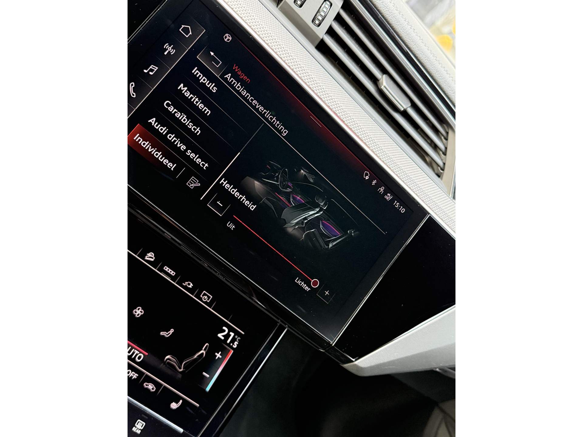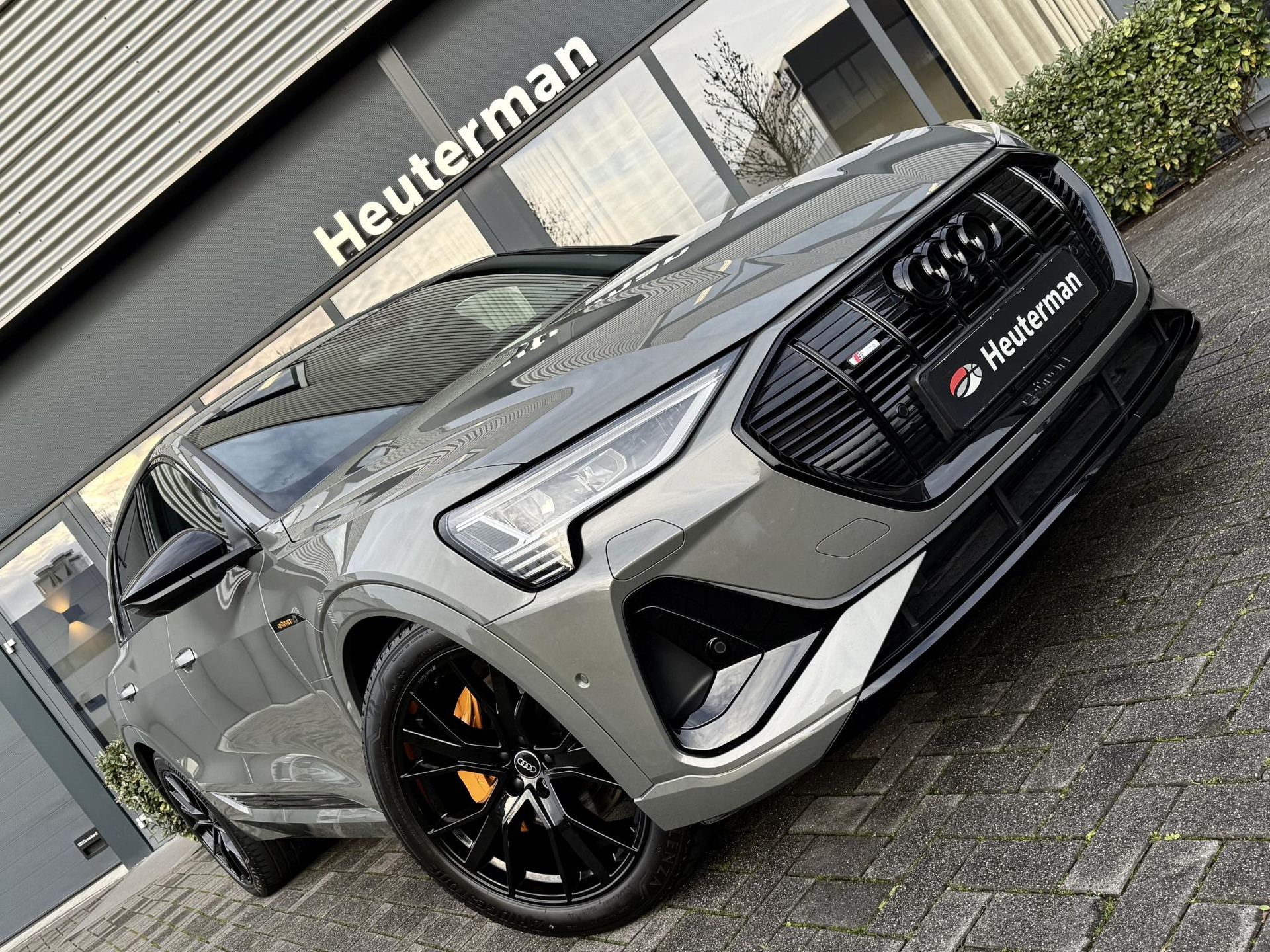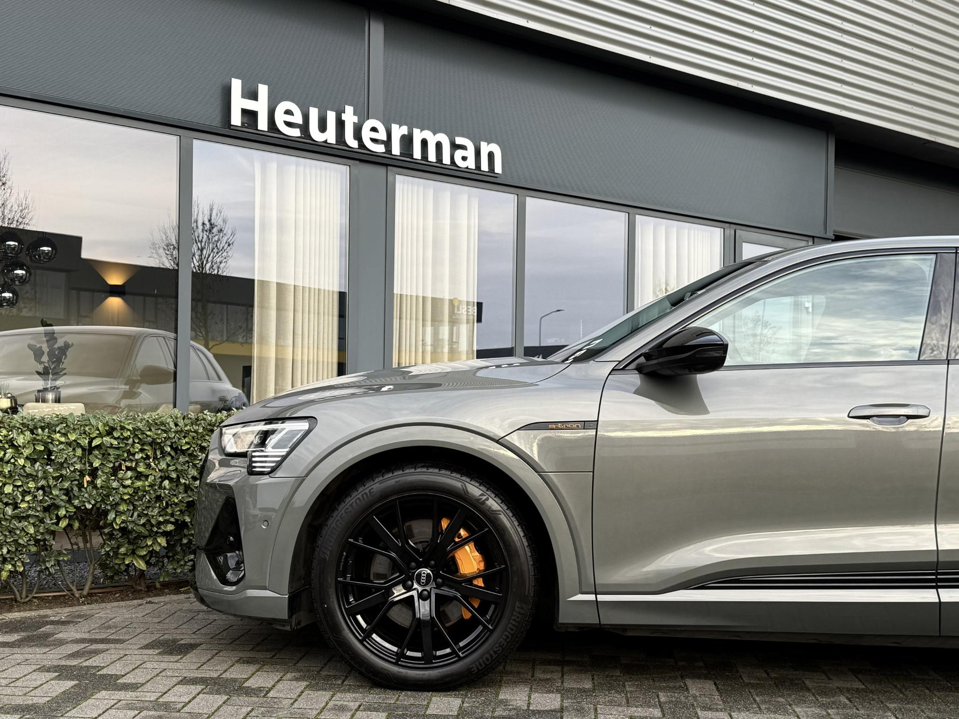 In zeer nette staat verkerende, van eerste eigenaar afkomstig en dealer onderhouden Audi E-Tron Quattro 55 in unieke Black Edition uitvoering. Voorzien van S line interieur, S line exterieur, black optie exterieur pakket, luchtvering (hoogte verstelbaar), sfeerverlichting (kleur instelbaar), 21 inch hoogglans zwarte S line velgen, E-tron geel/ oranje remklauwen/ gordels en sticksels, rondom zicht camera met parkeercamera voor- achter en zijkant met topview en 360gr. functie, draadloze telefoonhouder, electrische achterklep, stoelverwarming, unieke kleur Chronos Grey, Topstaat! 30% wegenbelasting korting, lage bijtelling voor ondernemer, prijs is rijklaar inclusief BTW en 1 jaar algehele garantie. Audi Accu garantie t/m 7-2030.