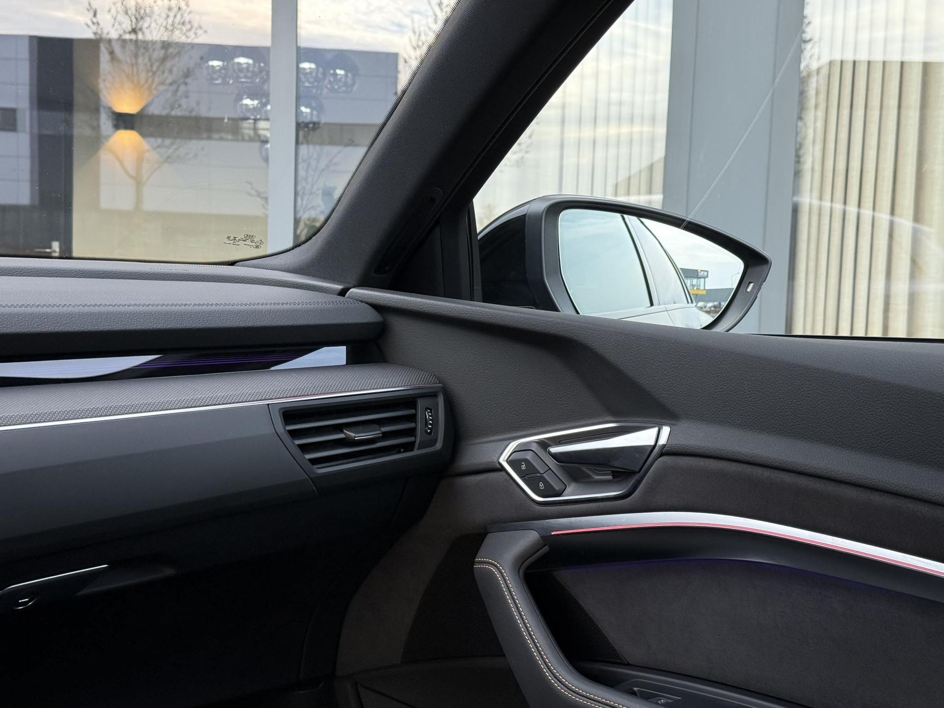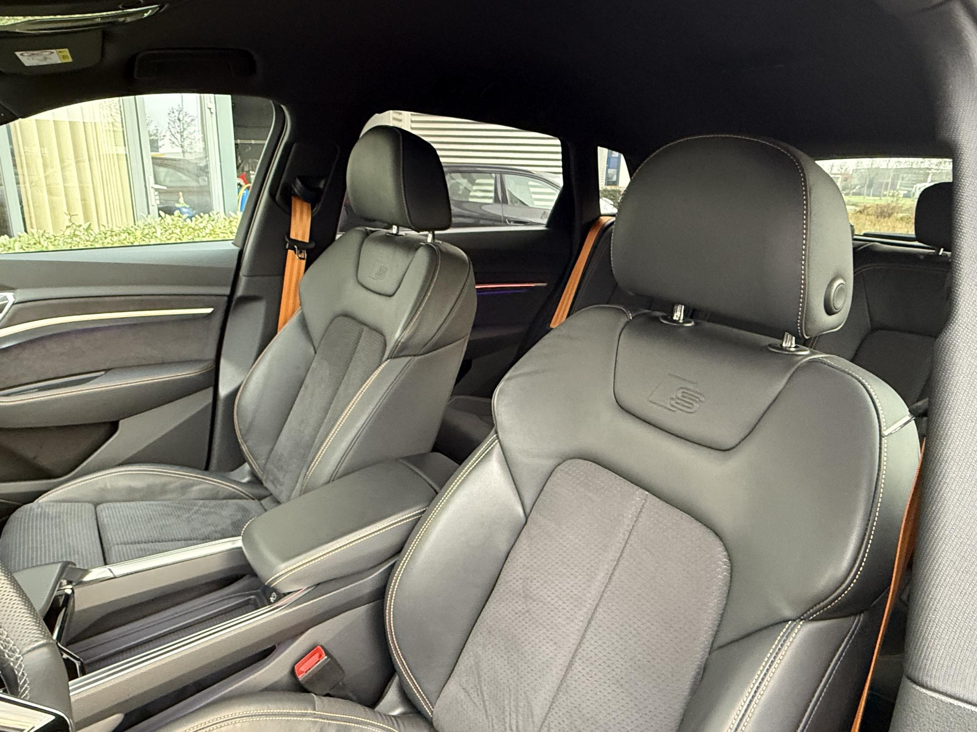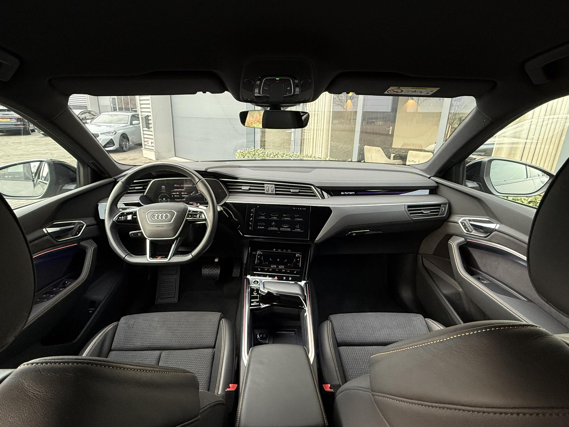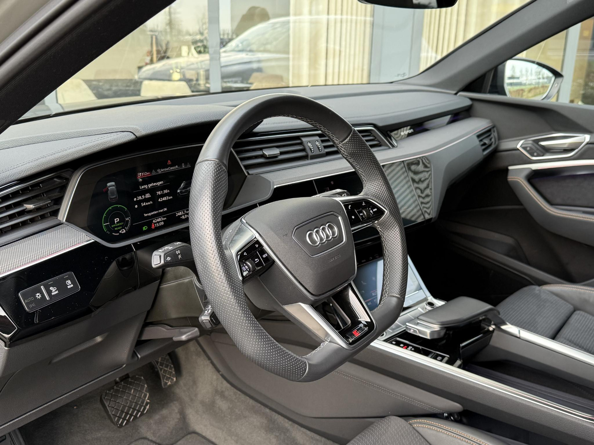In zeer nette staat verkerende, van eerste eigenaar afkomstig en dealer onderhouden Audi E-Tron Quattro 55 in unieke Black Edition uitvoering. Voorzien van S line interieur, S line exterieur, black optie exterieur pakket, luchtvering (hoogte verstelbaar), sfeerverlichting (kleur instelbaar), 21 inch hoogglans zwarte S line velgen, E-tron geel/ oranje remklauwen/ gordels en sticksels, rondom zicht camera met parkeercamera voor- achter en zijkant met topview en 360gr. functie, draadloze telefoonhouder, electrische achterklep, stoelverwarming, unieke kleur Chronos Grey, Topstaat! 30% wegenbelasting korting, lage bijtelling voor ondernemer, prijs is rijklaar inclusief BTW en 1 jaar algehele garantie. Audi Accu garantie t/m 7-2030.
