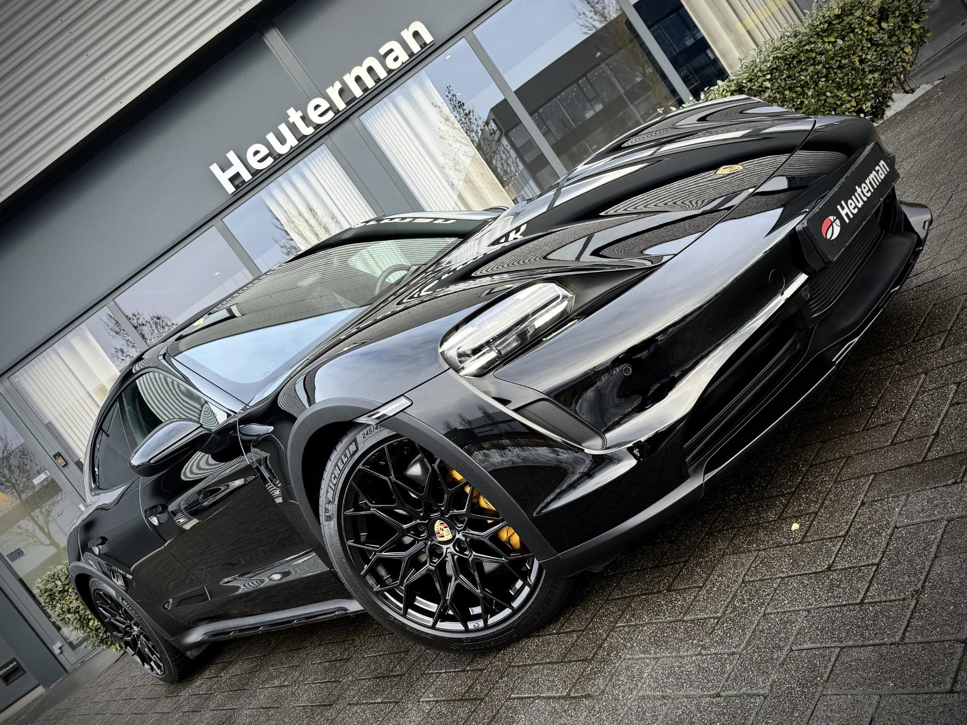 In absolute nieuwstaat verkerende Porsche Taycan Cross Turismo 4 met 93kwh accupakket, Porsche dealer geleverd en rookvrij. Hoogglans zwart met zwart lederen sport interieur, 20 ich hoogglans zwarte performance velgen, privacy glas, Gele remklauwen met Porsche opschrift, parkeer sensoren voor en achter, Apple Carplay, adaptief onderstel met luchtvering (hoogte instelbaar), LED verlichting voor en achter, stoelverwarming, 2x laadpoort inchl snellaad functie, Electric Sport sound module, elec. achterklep, etc. TOPSTAAT met slechts 19.451 km! Lage bijtelling voor ondernemer, 30% wegenbelasting korting, prijs is rijklaar incl 1 jaar algehele garantie.