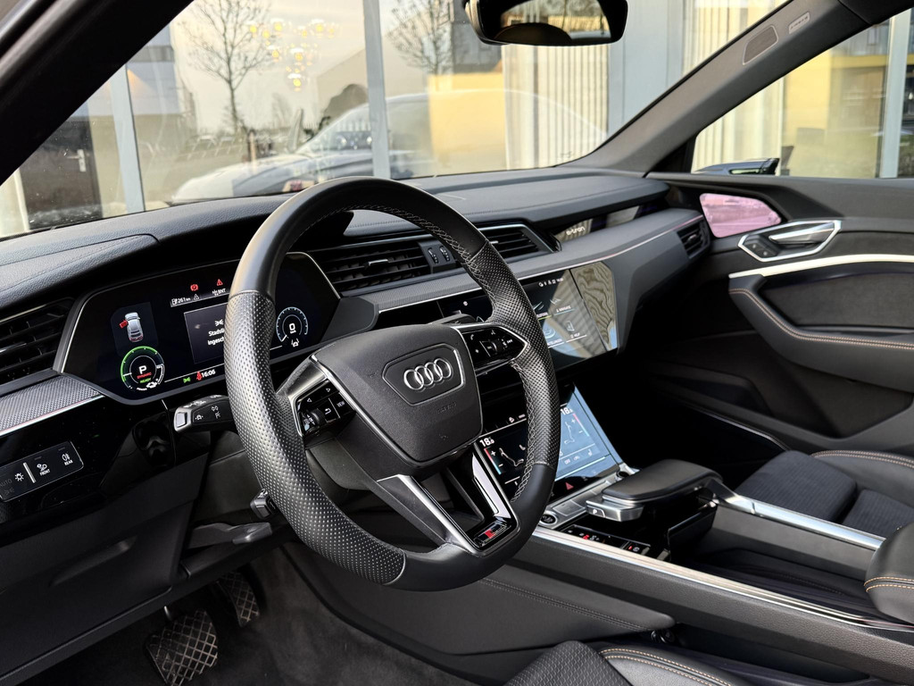 Alleen deze week van *** € 46.950 voor € 44.950 *** In absolute nieuwstaat verkerende Audi E-Tron 55 Quatttro Sportback. Van eerste eigenaar, dealer onderhouden, schade vrij en rechtstreeks bij Audi Duitsland afkomstig. Unieke Black Edition uitvoering in het Chronos grijs. Voorzien van S Line interieur en S line exterieur pakket, hoogglans zwart optiek exterieur pakket, hoogglans zwarte 21 Audi Sport velgen, E-Tron geel/ oranje remklauwen/ gordels en sticksels, elec. Achterklep, matrix LED, head up Display, dubbele laadpoort rechts en links met snellaad functie, 360gr camera met topview functie, camera spiegels met dodehoek functie, sfeerverlichting (naar kleur instelbaar), ACC radar cruise control, key less entry en go, Bang & Olufsen premium Audio installatie, 2 x Laadkabel aanwezig, Quattro vierwielaandrijving (hoogte instelbaar), 30 % wegenbelasting korting, lage bijtelling voor ondernemer, prijs is rijklaar incl BTW en 1 jaar algehele garantie. Audi accu garantie t/m 9/2030 of 160.000 km SOH 96%