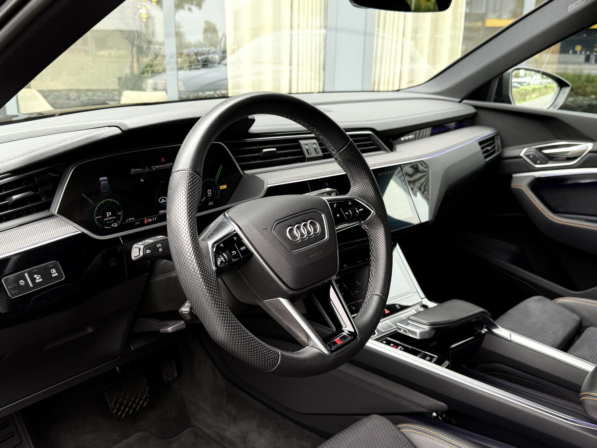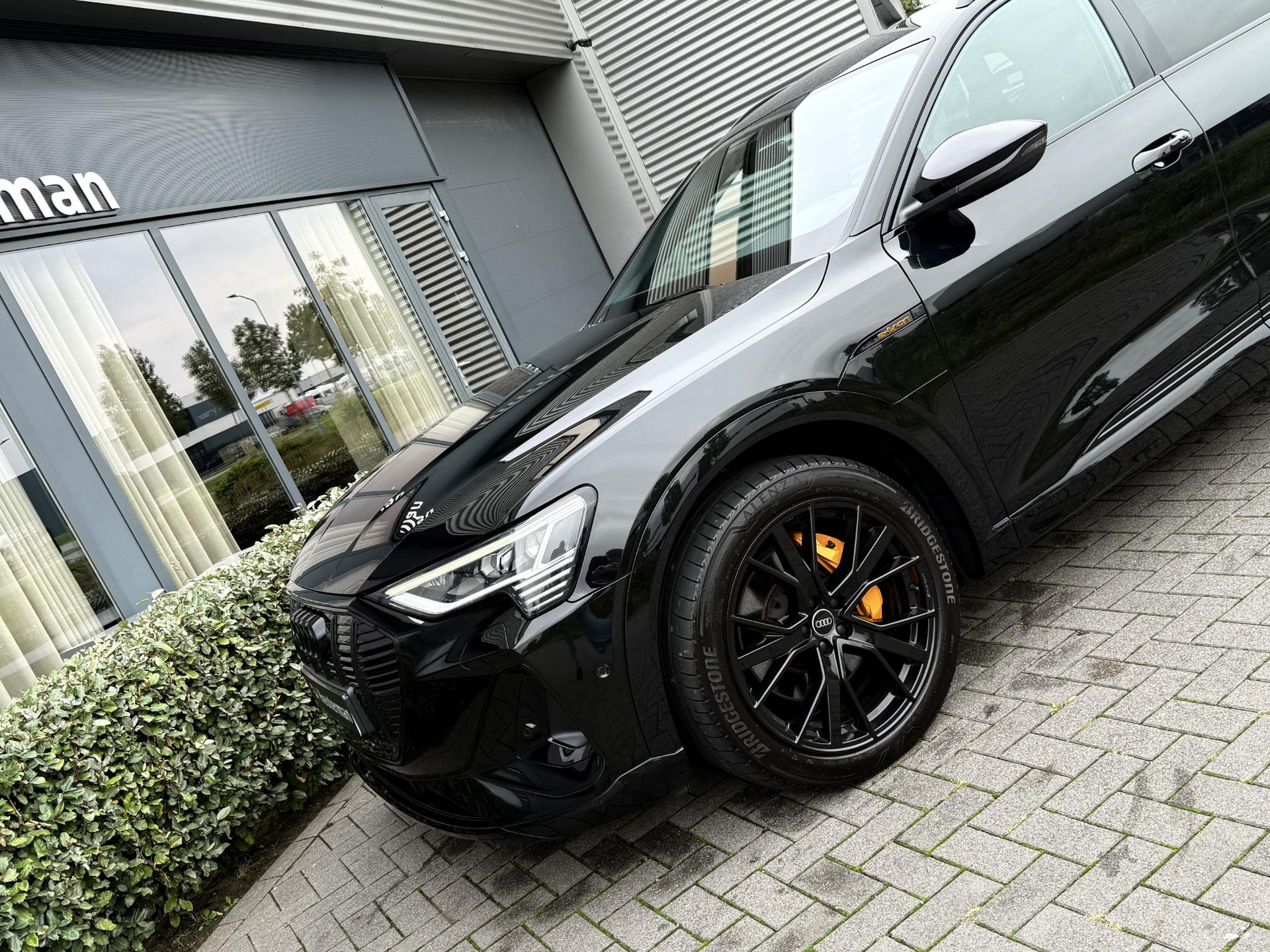Alleen deze week van *** EUR 39.950,- voor EUR 38.950,- *** In zeer nette staat verkerende, van eerste eigenaar afkomstige Audi E-Tron Quattro. Rechtstreeks bij Audi Duitsland afkomstig, niet in gerookt en uitgevoerd in unieke Black Edition Uitvoering! Voorzien van S line interieur en S line exterieur, Black optiek exterieur pakket met hoogglans zwarte details en 21 inch hooglans zwarte S line velgen, E-Tron geel/ oranje remklauwen/ sitcksels en gordels, privacy glas af fabrieks, sfeerverlichting (naar kleur instelbaar), Quattro vierwielaandrijving, Luchtvering (hoogte instelbaar), stoelverwarming, snellaad functie, elec. achterklep, Matrix LED Verlichting, zwarte hemelbekleding, 2 x laadkabel aanwezig, 2 x sleutel, historie aanwezig, Audi accu garantie t/m 12 - 2030, 75% wegenbelasting korting, prijs is rijklaar incl BTW en 1 jaar volledige garantie. TOPSTAAT!