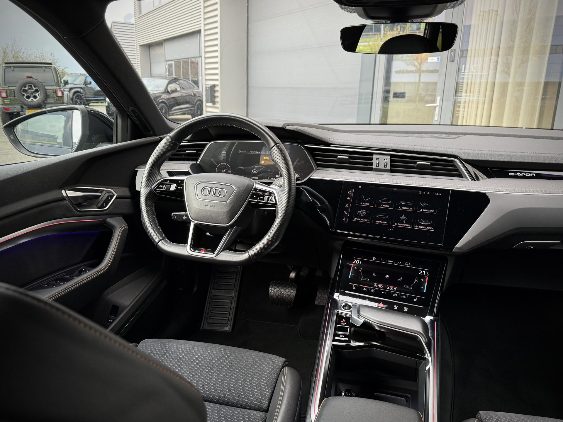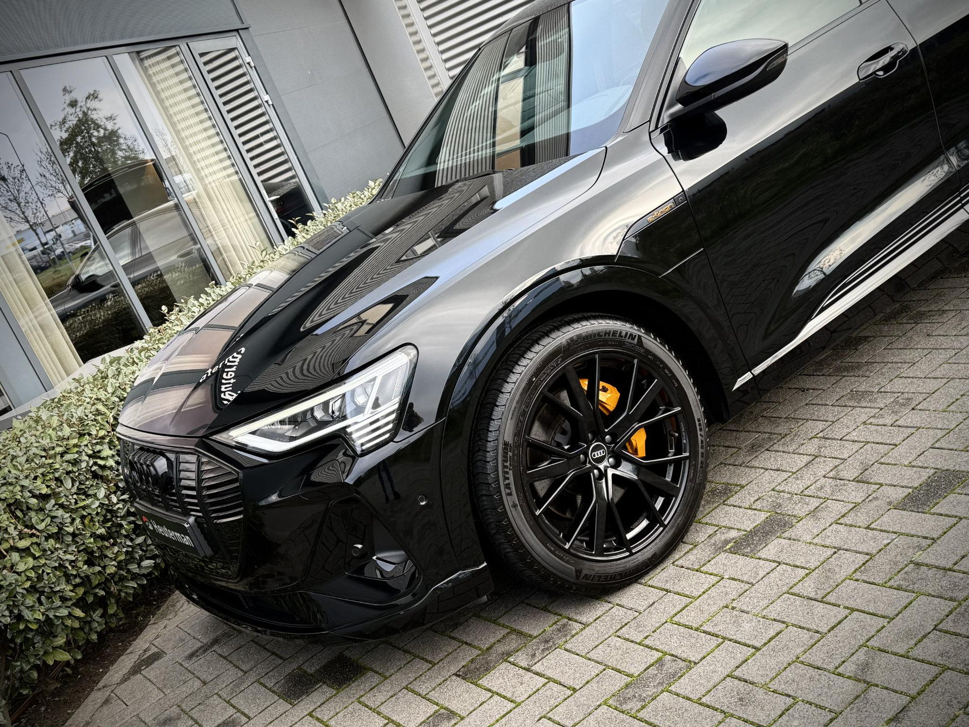 In absolute nieuwstaat verkerende, van eerste eigenaar afkomstig, dealer onderhouden en schadevrije Audi E-Tron 55 Quattro in unieke Black Edition. Voorzien van S line interieur en S line exterieur pakket, black optiek exterieur pakker, 21 inch originele hoogglans zwarte S line Audi Sport velgen, luchtvering (in hoogte verstelbaar), sfeerverlichting (kleur instelbaar), privacy glas origineel af fabriek, Matrix LED verlichting, Apple Car Play, stoelverwarming, elec. achterklep, E-Tron geel/ oranje remklauwen, gordels en stickselnaden, afgevlakt 3 spaaks S line stuurwiel, premium Audi B&O / Bang & Olufson, 2 x laadkabel aanwezig, wegenbelastingkorting, lage bijtelling voor ondernemer, prijs is rijklaar incl BTW, 1 jaar algehele garantie en Audi Accu garantie t/m 7-2030.