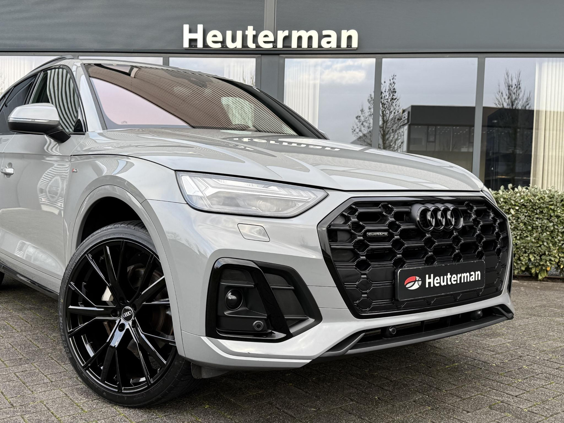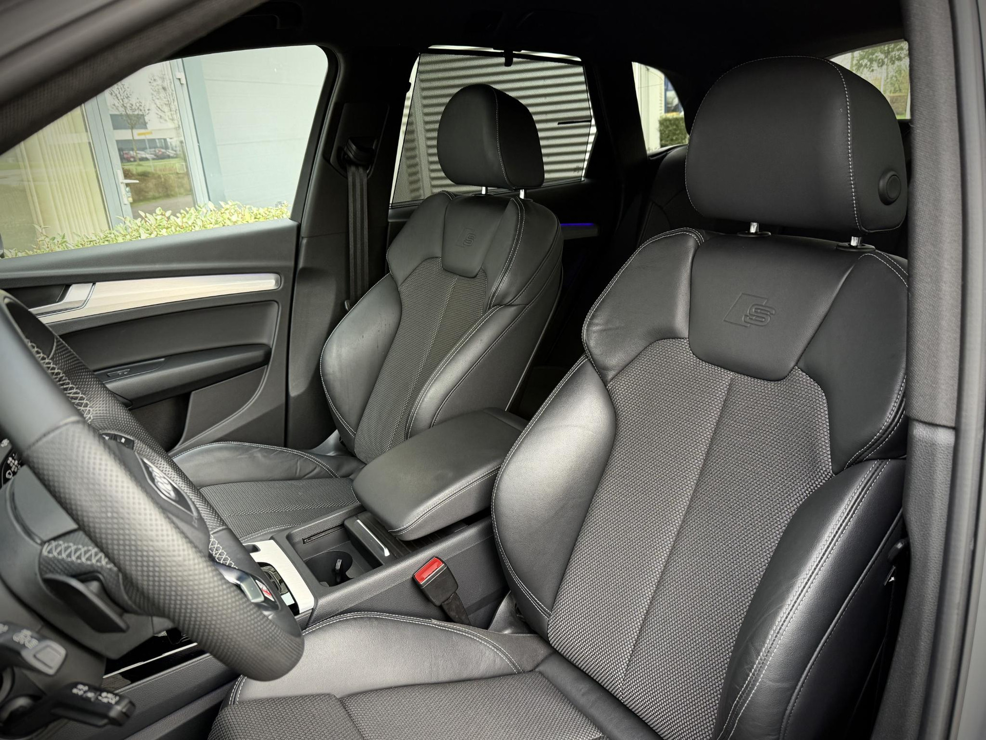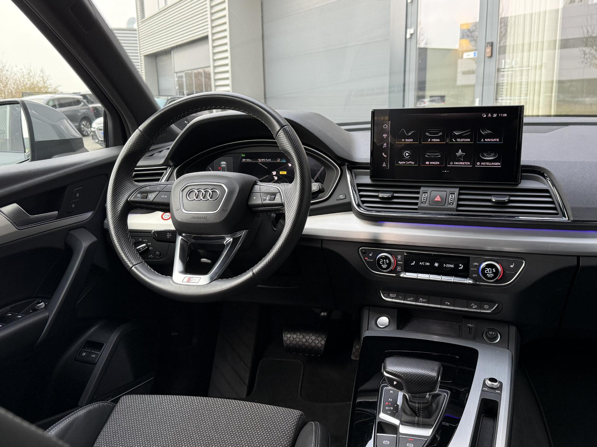 In nieuwstaat verkerende, van eerste eigenaar afkomstige, schadevrij en dealer onderhouden Audi Q5 Plug in Hybride. Voorzien van Quattro vierwielaandrijving, S line interieur, S line exterieur pakket, zwart optiek exterieur pakket met hoogglans zwarte details, OLED matrix LED verlichting, sfeerverlichting (kleur instelbaar), privacy glas af fabriek, elec. achterklep, stoel- en achterbank verwarming, 4 zone climate control, groot beeld MMI, Apple Car Play, draadloze telefoonlader, S line stuurwiel met schakelflippers, virtual cockpit, etc. TOPSTAAT! Voorzien van nieuwe 22 inch hoogglans zwarte performance velgen met nieuwe banden. Prijs is inclusief BTW en rijklaar.