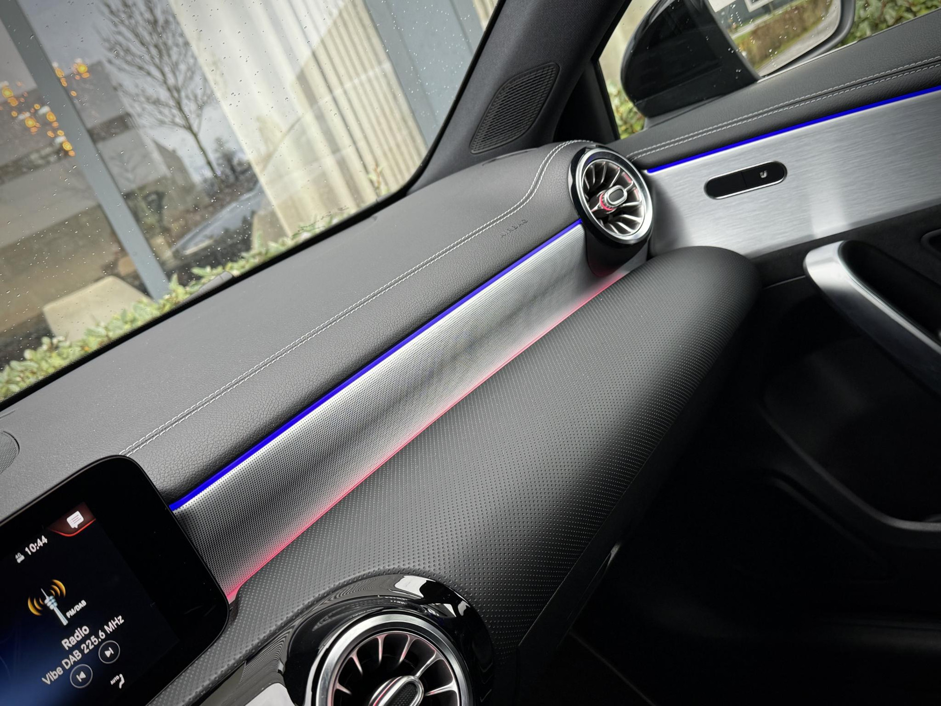 In zeer nette staat verkerende en van twee eigenaar afkomstige Mercedes-Benz A250e Plug-In Hybrid in Business Solution AMG Sport uitvoering. Auto is origineel Duits geleverd, heeft een digitale service historie en is rook vrij! Compleet uitgevoerd, voorzien van o.a. AMG Sportpakket, Nightpakket met hoogglans zwarte exterieur delen, sfeerverlichting; meerkleurig instelbaar, LED koplampen, LED achterlichten, parkeersensoren voor + achter incl. parkeercamera, volledig digitaal instrumentenpaneel, zwarte hemelbekleding, sportstoelen met stoelverwarming voor, lane assist, privacy glas origineel af fabriek, etc.