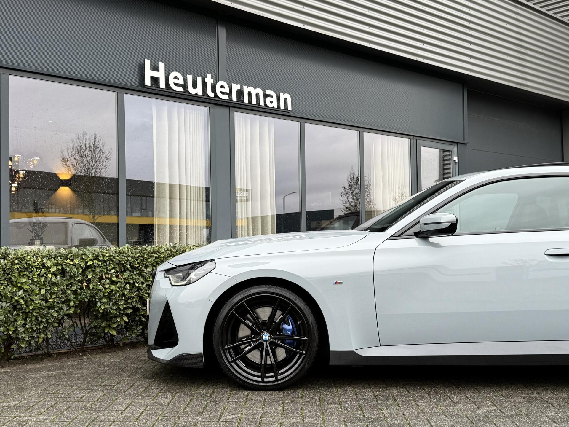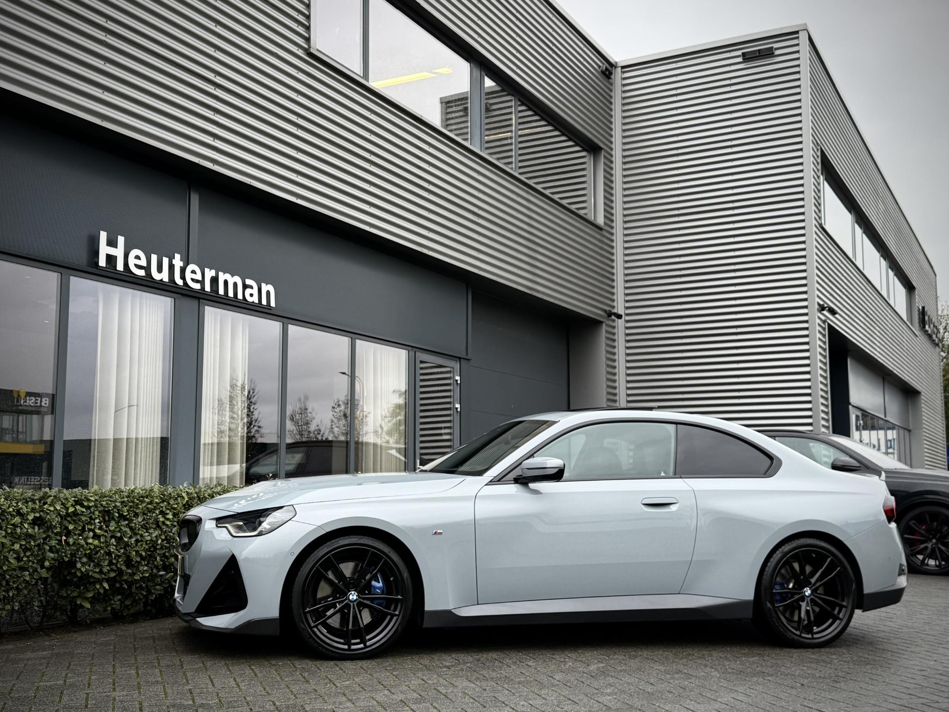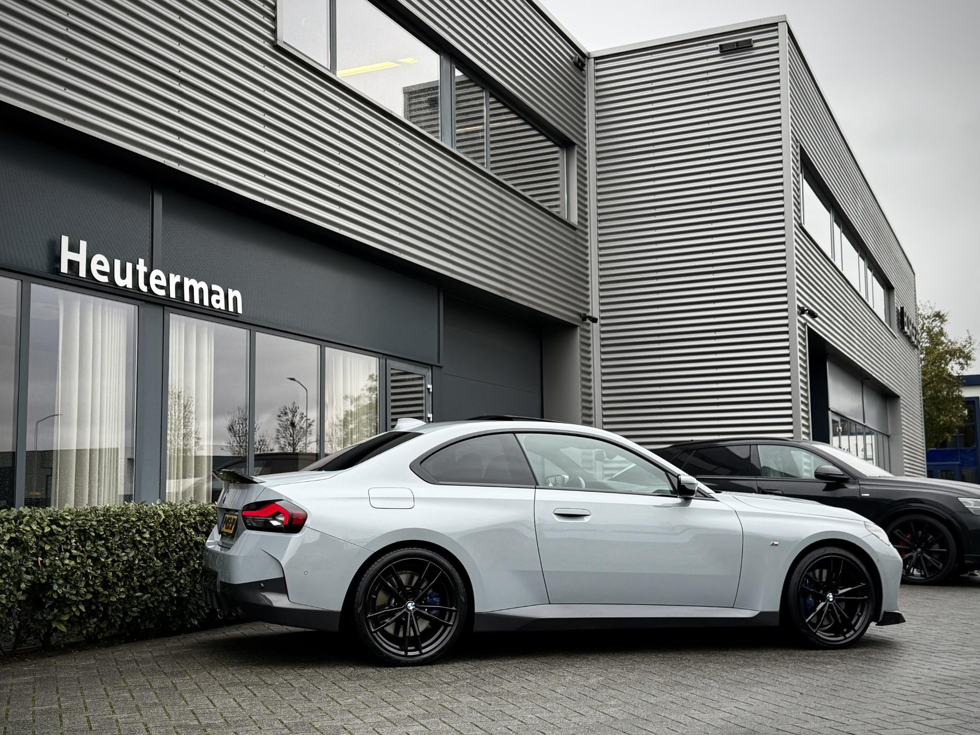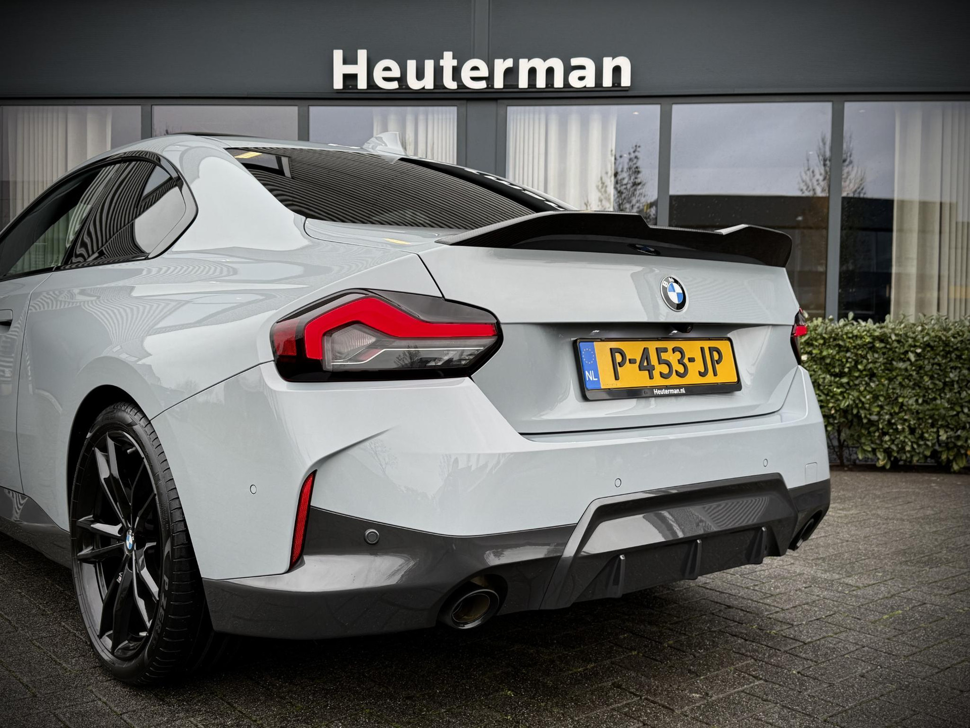 Origineel Nederlands geleverde en van eerste eigenaar afkomstige BMW 2-serie Coupé 220i in M-Sport uitvoering. Auto verkeert in zeer nette staat, is volledig BMW dealer onderhouden en nooit in gerookt. Sportief samengesteld in de kleur Brooklyn grau; voorzien van een M-Sport interieur en - exterieur, hoogglans zwarte exterieur optiek (Shadow Line) en diverse originele M-Performance parts w.o. carbon achterspoiler, carbon front lip etc. Verder voorzien van o.a. elektr. glazen schuif-/ kanteldak, lederen interieur, virtual cockpit, sfeerverlichting, 19" hoogglans zwarte lichtmetalen M Sport velgen, LED koplampen, LED achterlichten, parkeersensoren voor + achter incl. parkeercamera, stoelverwarming voor + stuurwielverwarming, Apple Carplay, privacy glas origineel af fabriek, etc. Topstaat!