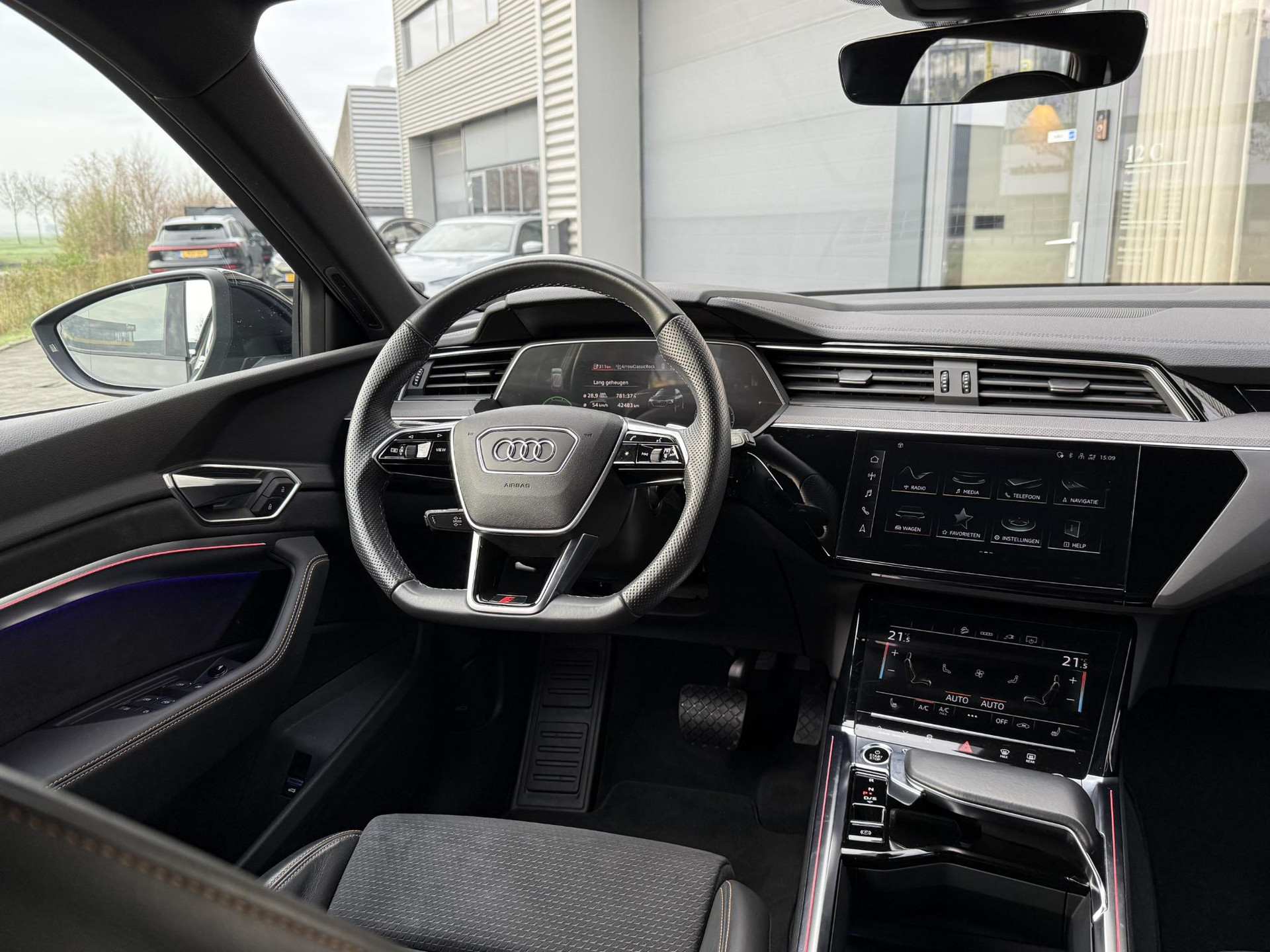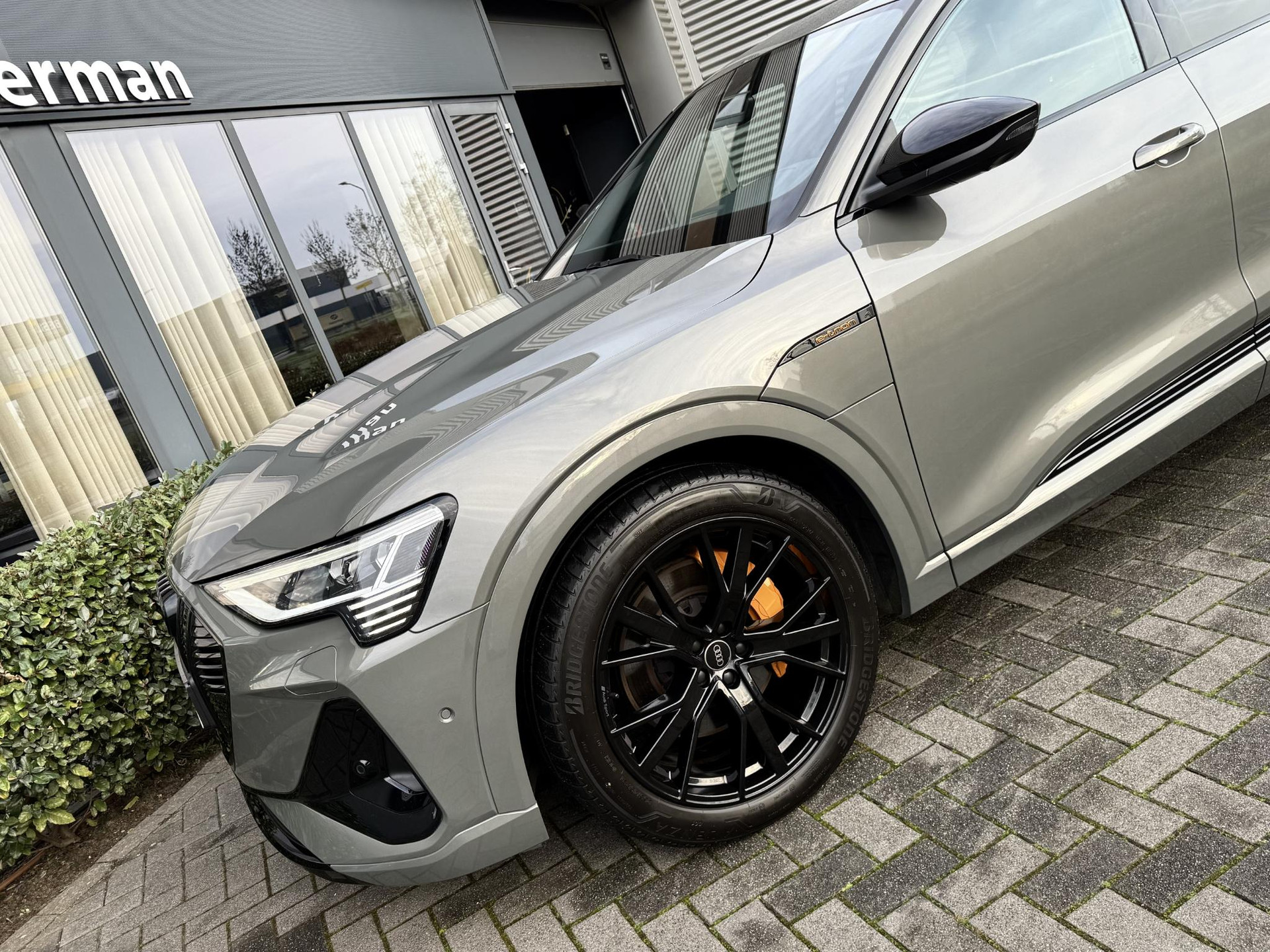 In zeer nette staat verkerende, van eerste eigenaar afkomstig en dealer onderhouden Audi E-Tron Quattro 55 in unieke Black Edition uitvoering. Voorzien van S line interieur, S line exterieur, black optie exterieur pakket, luchtvering (hoogte verstelbaar), sfeerverlichting (kleur instelbaar), 21 inch hoogglans zwarte S line velgen, E-tron geel/ oranje remklauwen/ gordels en sticksels, rondom zicht camera met parkeercamera voor- achter en zijkant met topview en 360gr. functie, draadloze telefoonhouder, electrische achterklep, stoelverwarming, unieke kleur Chronos Grey, Topstaat! 30% wegenbelasting korting, lage bijtelling voor ondernemer, prijs is rijklaar inclusief BTW en 1 jaar algehele garantie. Audi Accu garantie t/m 7-2030.