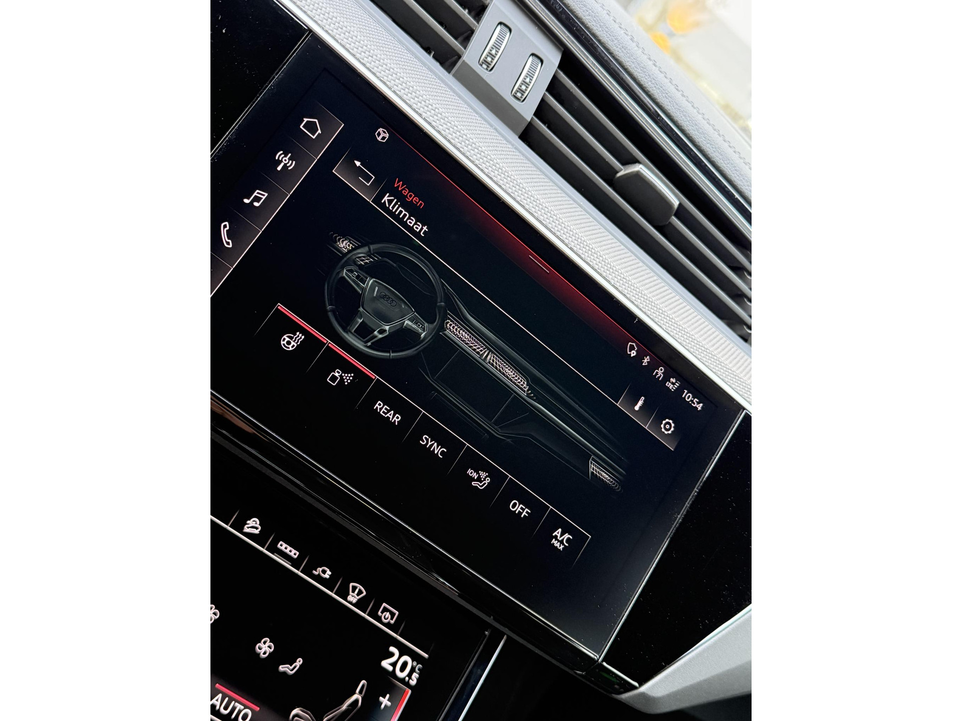 Alleen deze week *** van EUR 40.950,- voor EUR 39.950,- *** In zeer nette staat verkerende, van eerste eigenaar afkomstige Audi E-Tron Quattro. Rechtstreeks bij Audi Duitsland afkomstig, niet in gerookt en uitgevoerd in unieke Black Edition Uitvoering! Voorzien van S line interieur en S line exterieur, Black optiek exterieur pakket met hoogglans zwarte details en 21 inch hooglans zwarte S line velgen, E-Tron geel/ oranje remklauwen/ sitcksels en gordels, volledig lederen bekleding, head up display, dodehoek assistent, rondomzicht camera met 360gr en topview functie, stoel verwarming, stuurwiel verwarming, achterbank verwarming,key less entry en go, 2 x laadpoort rechts en links met snellaad functie, S line stoelen met comfort hoofdsteunen, privacy glas af fabriek, sfeerverlichting (naar kleur instelbaar), Quattro vierwielaandrijving, Luchtvering (hoogte instelbaar), stoelverwarming, snellaad functie, elec. achterklep, Matrix LED Verlichting, zwarte hemelbekleding, 2 x laadkabel aanwezig, 2 x sleutel, historie aanwezig, Audi accu garantie t/m 7 - 2030, 30% wegenbelasting korting, prijs is rijklaar incl BTW en 1 jaar volledige garantie. TOPSTAAT!
