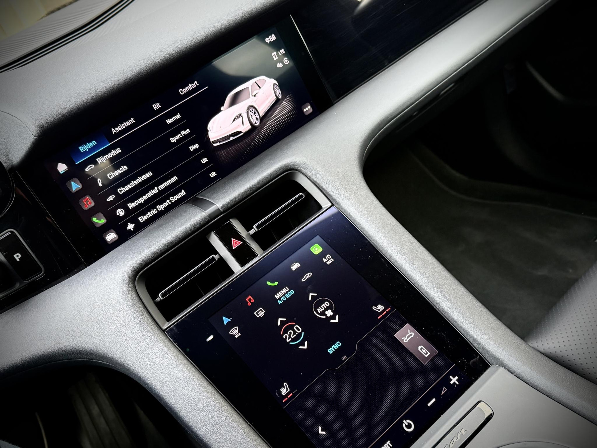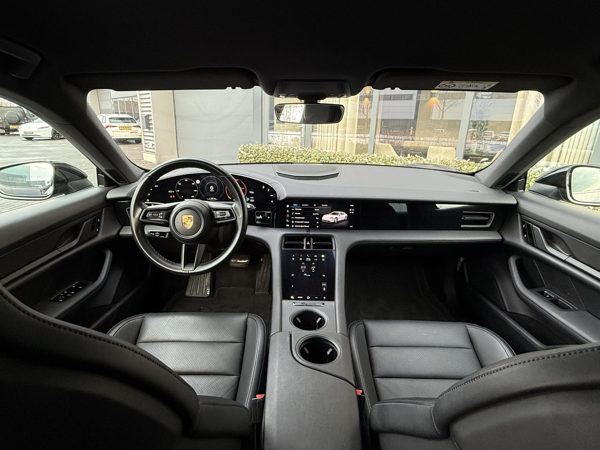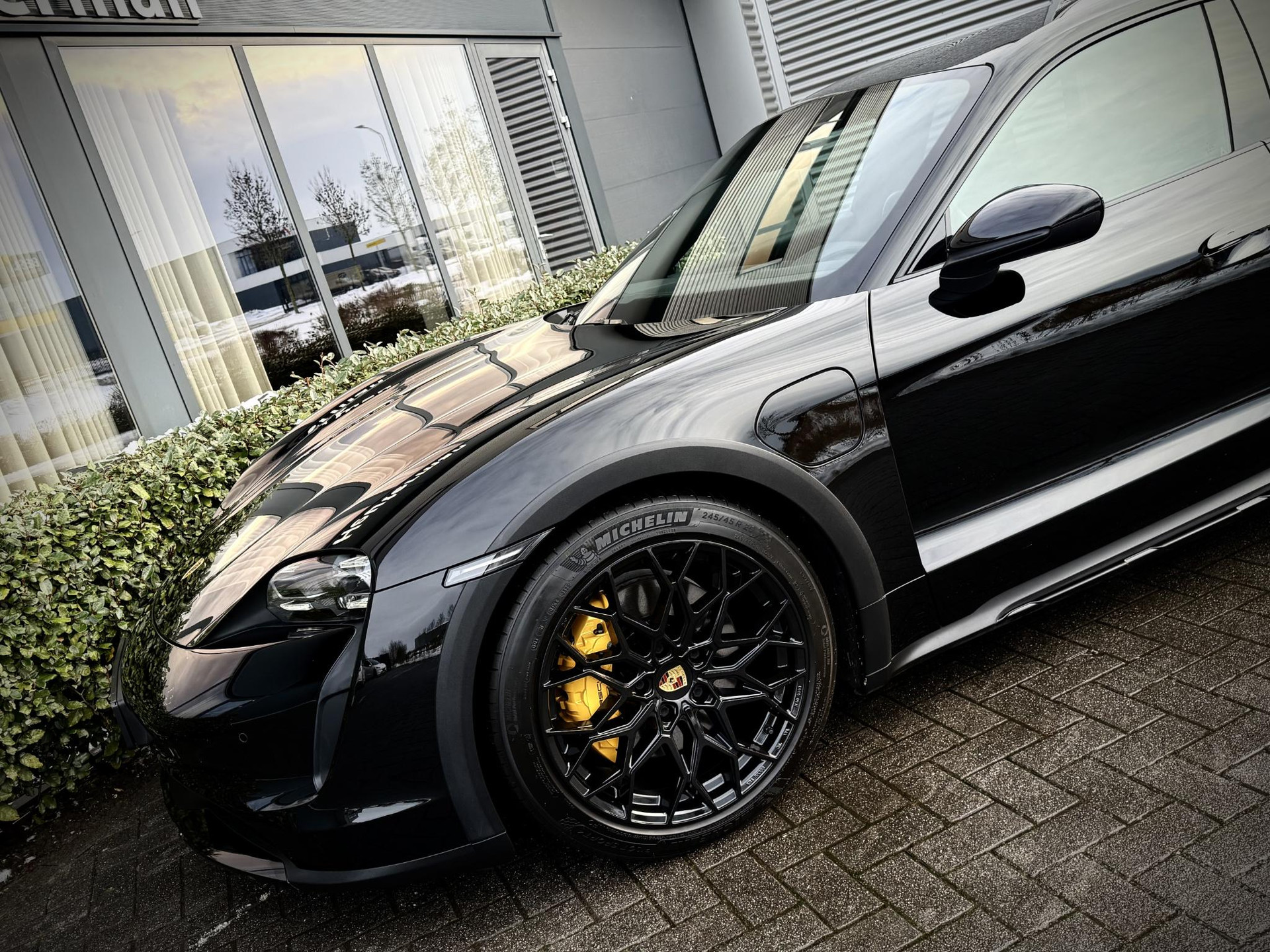 In absolute nieuwstaat verkerende Porsche Taycan Cross Turismo 4 met 93kwh accupakket, Porsche dealer geleverd en rookvrij. Hoogglans zwart met zwart lederen sport interieur, 20 ich hoogglans zwarte performance velgen, privacy glas, Gele remklauwen met Porsche opschrift, parkeer sensoren voor en achter, Apple Carplay, adaptief onderstel met luchtvering (hoogte instelbaar), LED verlichting voor en achter, stoelverwarming, 2x laadpoort inchl snellaad functie, Electric Sport sound module, elec. achterklep, etc. TOPSTAAT met slechts 19.451 km! Lage bijtelling voor ondernemer, 30% wegenbelasting korting, prijs is rijklaar incl 1 jaar algehele garantie.