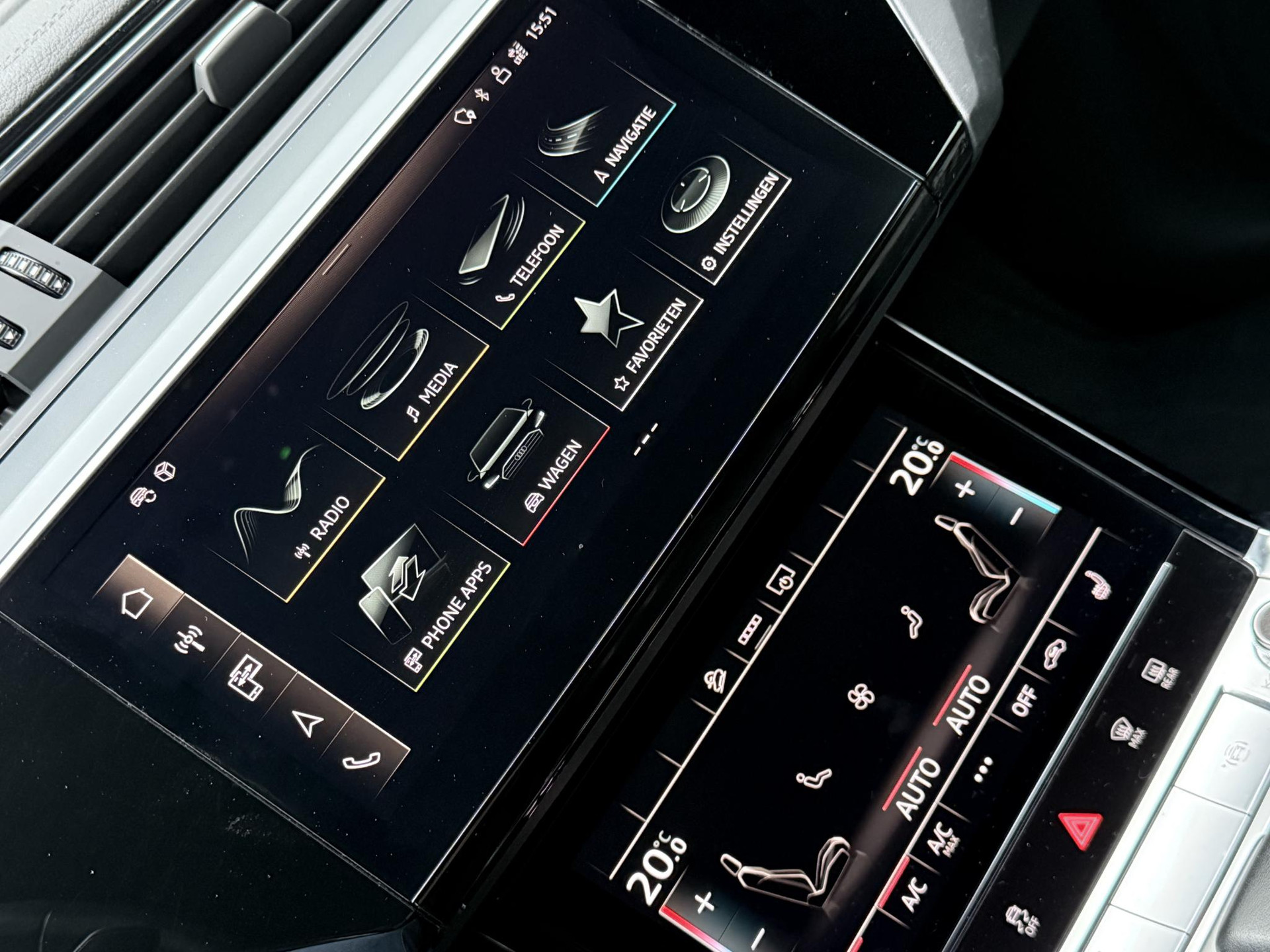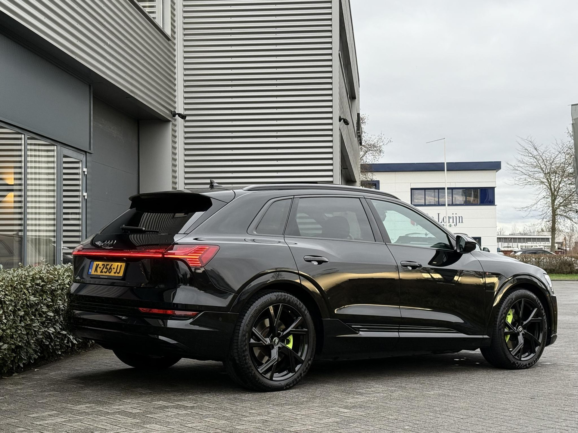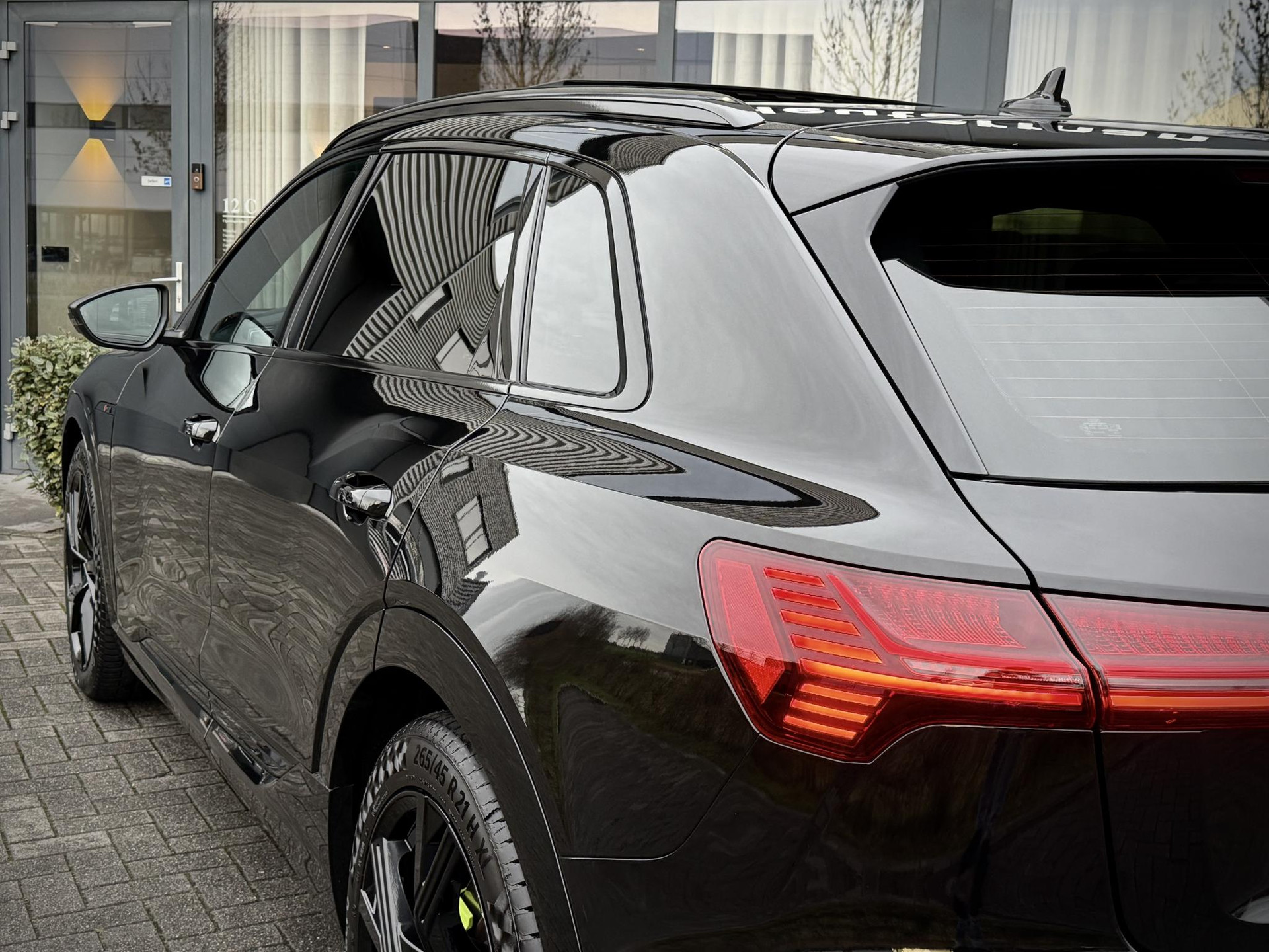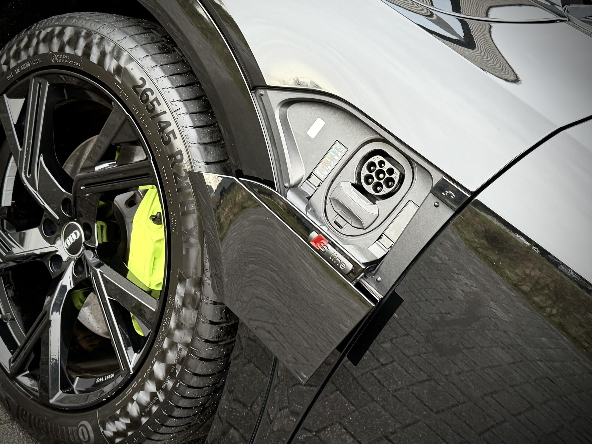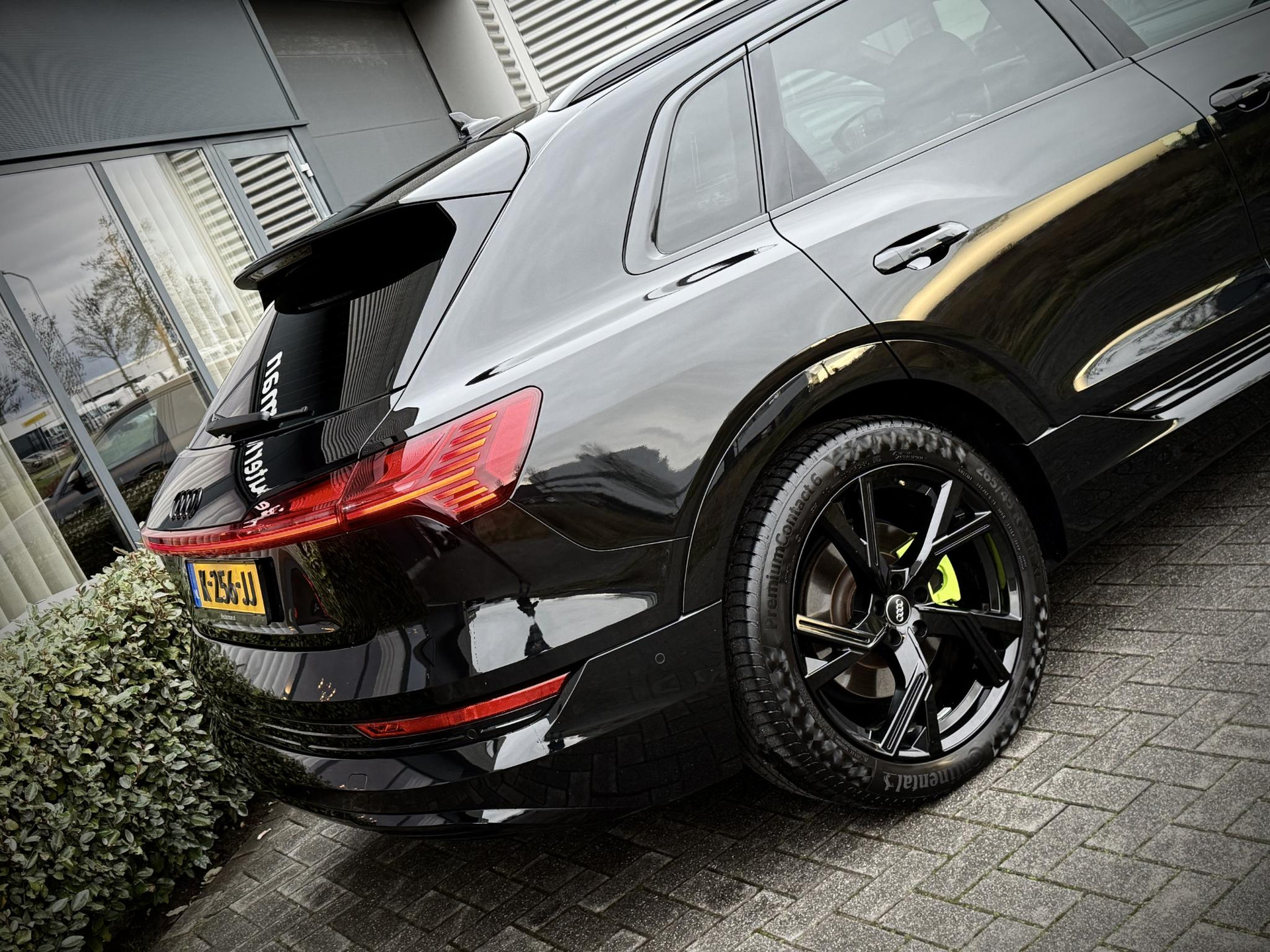 Van eerste eigenaar afkomstige, volledig Audi Dealer onderhouden en in zeer nette staat verkerende Audi E-Tron Quattro Black Edition. Voorzien van zwart optiek exterieur, 21 inch hoogglans zwarte performance velgen, parkercamera, luchtvering (hoogte instelbaar), Quattro vierwielaandrijving, ACC cruise control met afstandsradar, elec. achterklep, privacy glas, lane assist, volledig lederen bekleding, elec. verstelbare stoelen met memory functie, Apple CarPlay, panoramadak, LED verlichting voor en achter, Porsche geel/ groene remklauwen, 30% wegenbelasting korting, Audi Accu garantie t/m 12/2028 of 160.000km, prijs is rijklaar inclusief BTW en 1 jaar algehele garantie.
