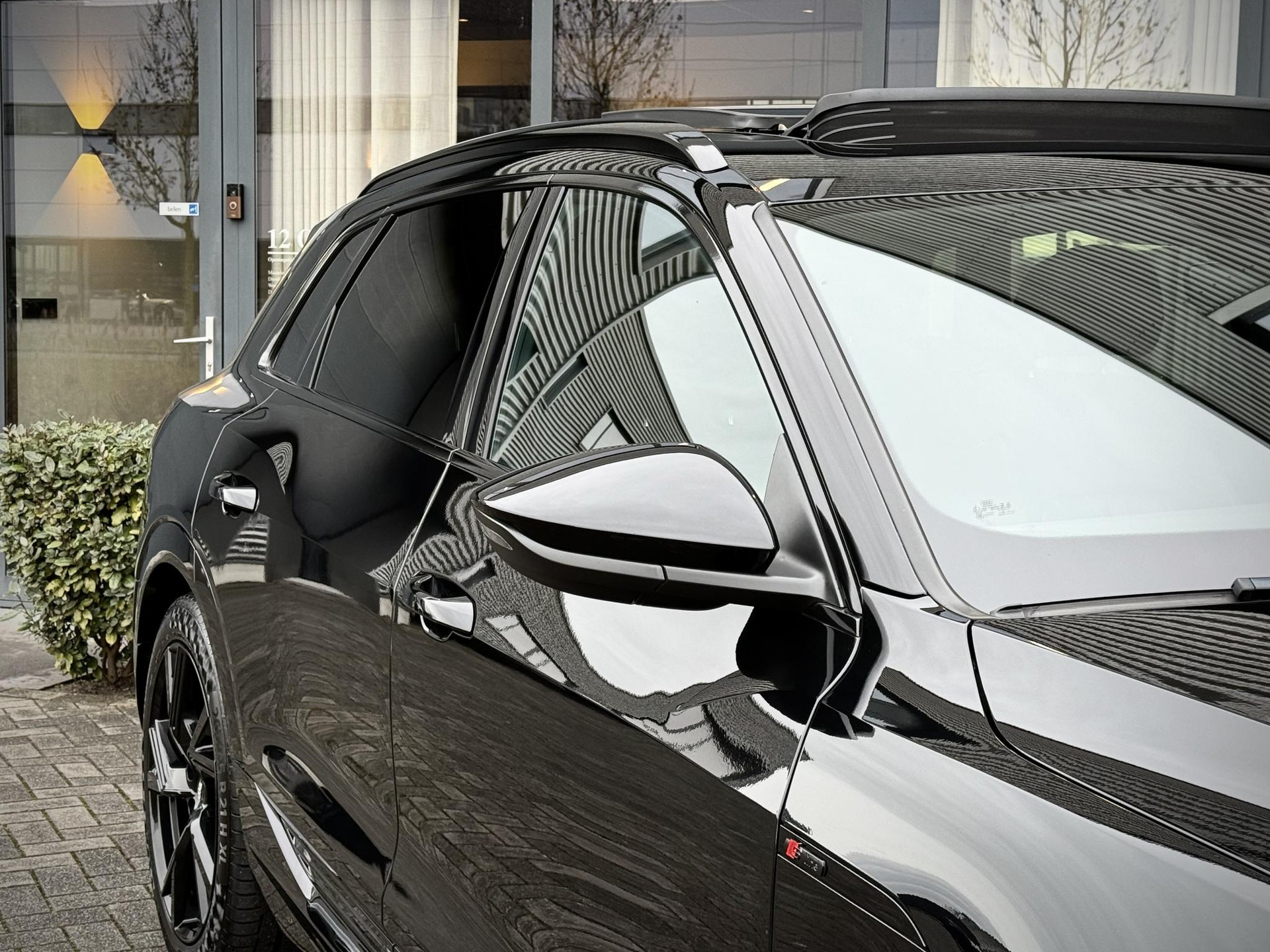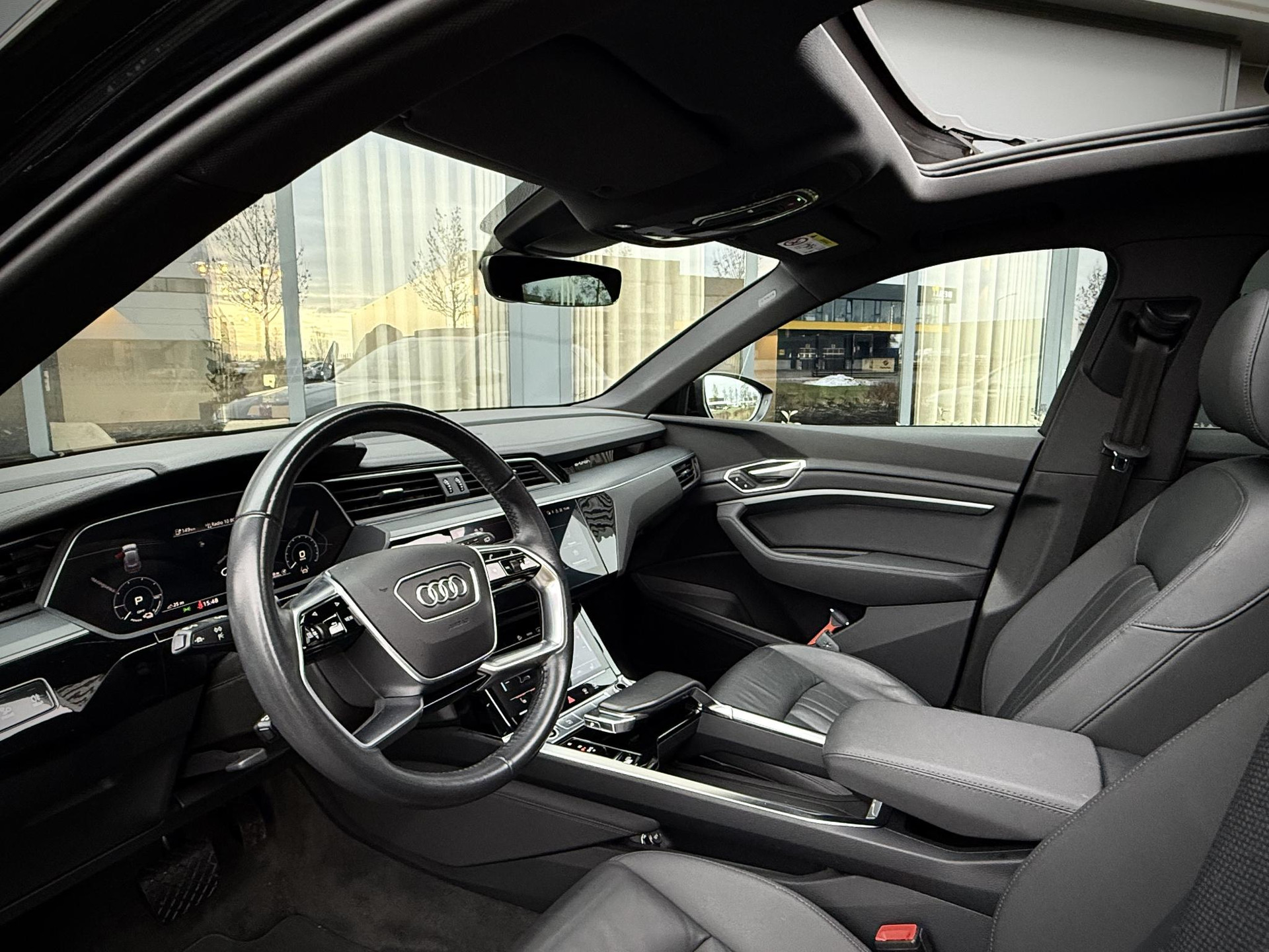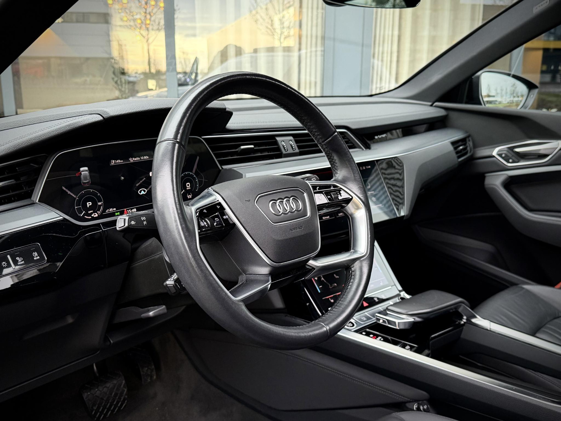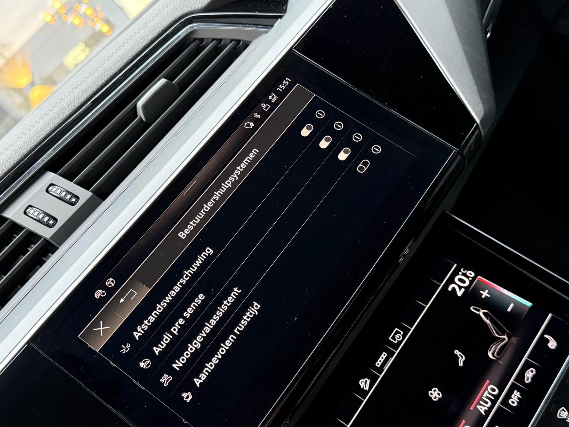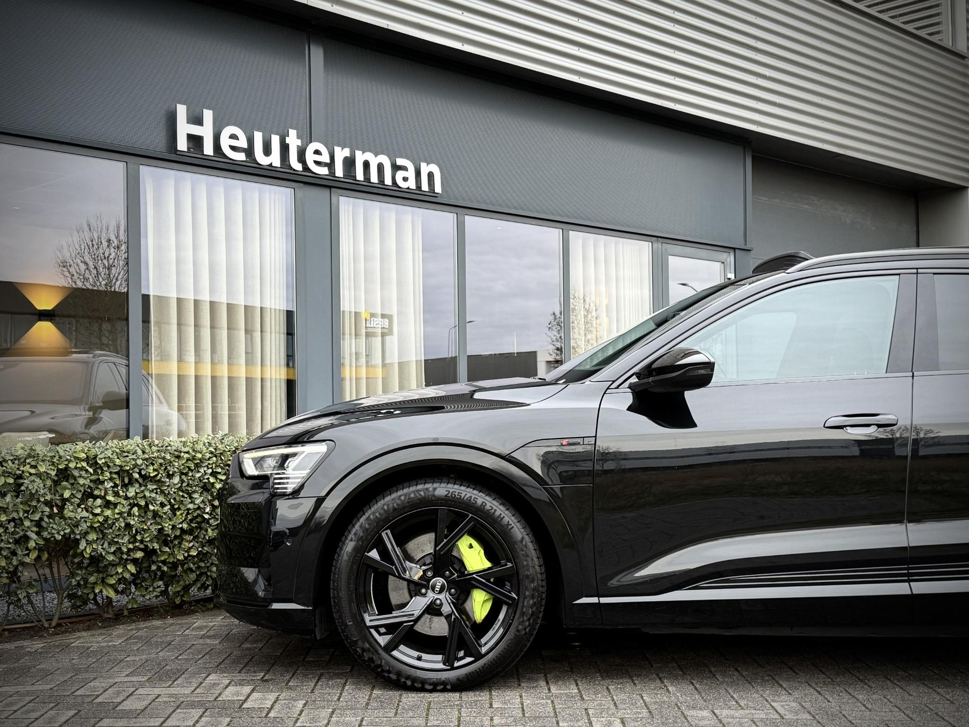 Van eerste eigenaar afkomstige, volledig Audi Dealer onderhouden en in zeer nette staat verkerende Audi E-Tron Quattro Black Edition. Voorzien van zwart optiek exterieur, 21 inch hoogglans zwarte performance velgen, parkercamera, luchtvering (hoogte instelbaar), Quattro vierwielaandrijving, ACC cruise control met afstandsradar, elec. achterklep, privacy glas, lane assist, volledig lederen bekleding, elec. verstelbare stoelen met memory functie, Apple CarPlay, panoramadak, LED verlichting voor en achter, Porsche geel/ groene remklauwen, 30% wegenbelasting korting, Audi Accu garantie t/m 12/2028 of 160.000km, prijs is rijklaar inclusief BTW en 1 jaar algehele garantie.