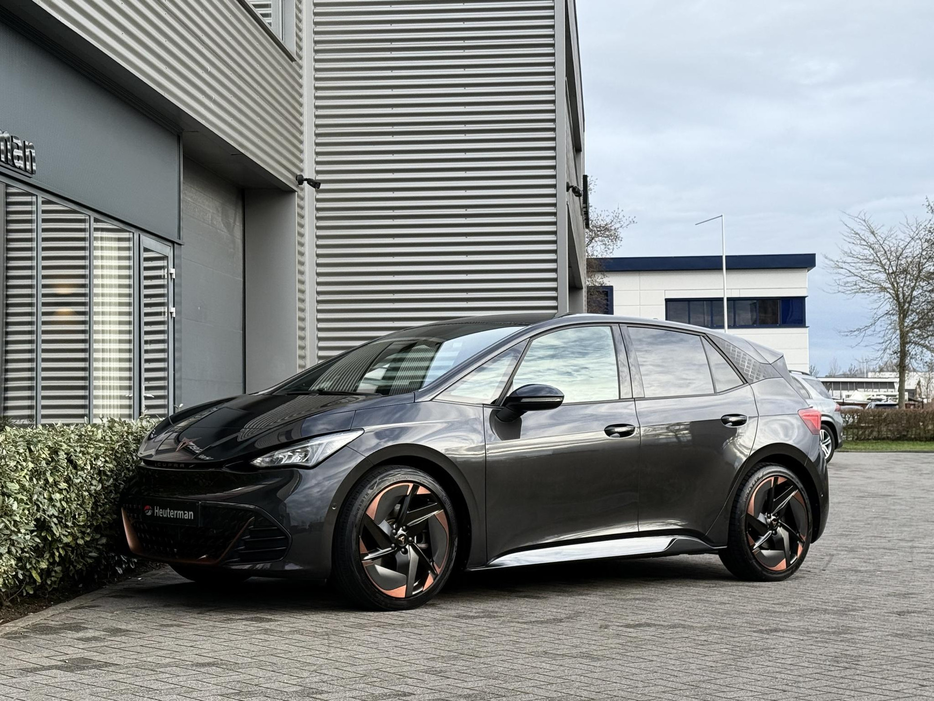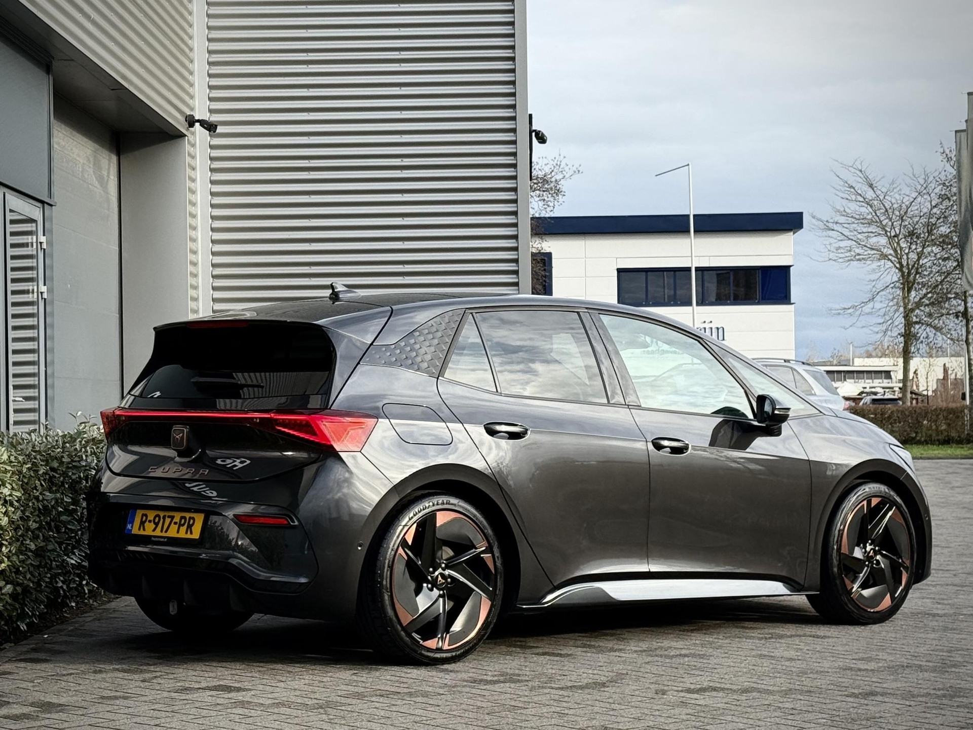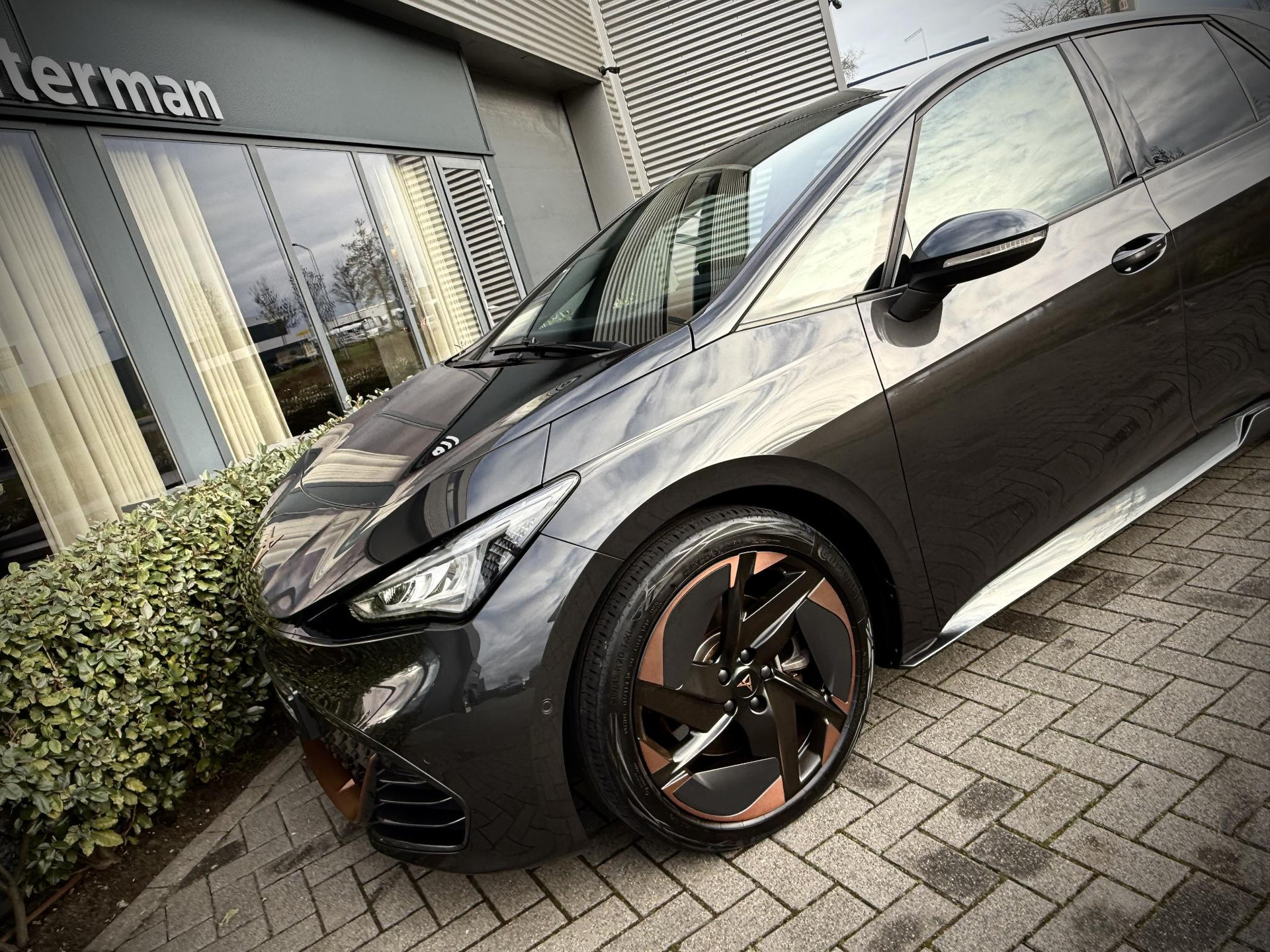 Van eerste eigenaar afkomstige, in zeer nette staat verkerende, en zeer rijk uitgeruste Cupra Born in Copper Edition. Voorzien van panoramadak, stoel massage, dode hoek assistent, afneembare trekaak, stoelverwarming, parkeer camera met automatisch inparkeer functie, stoelverwarming, privacy glas, draadloze telefoonlader etc. Dealer onderhouden, prijs is rijklaar incl 1 jaar algehele garantie. Cupra accu garantie t/m 11/2030 of 160.000 km.