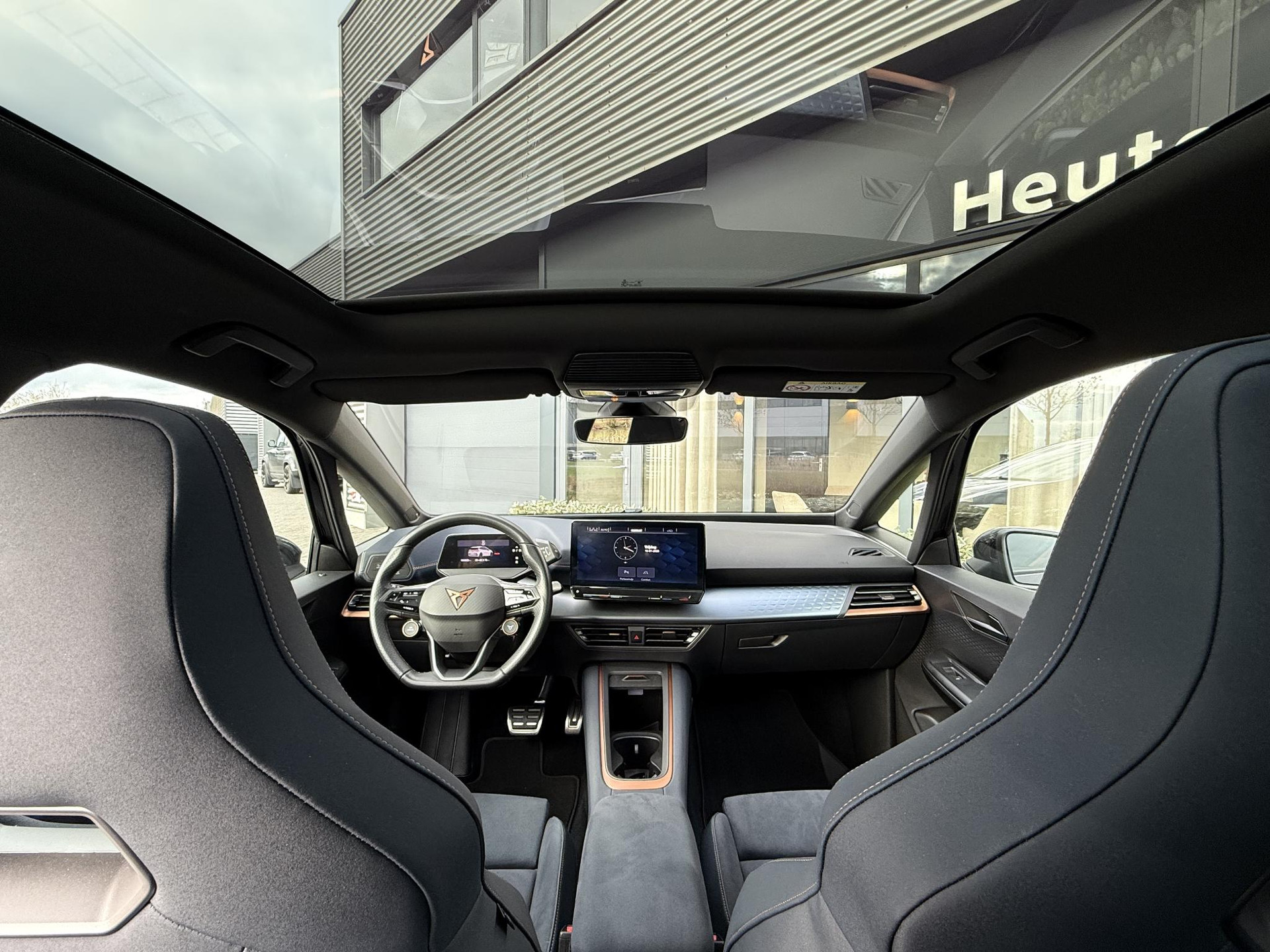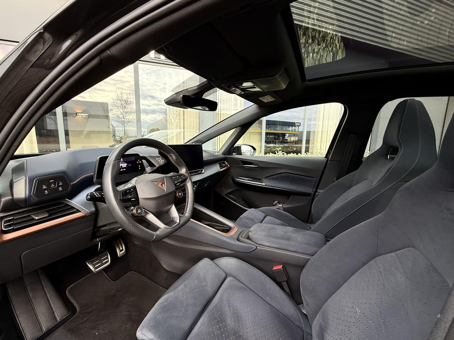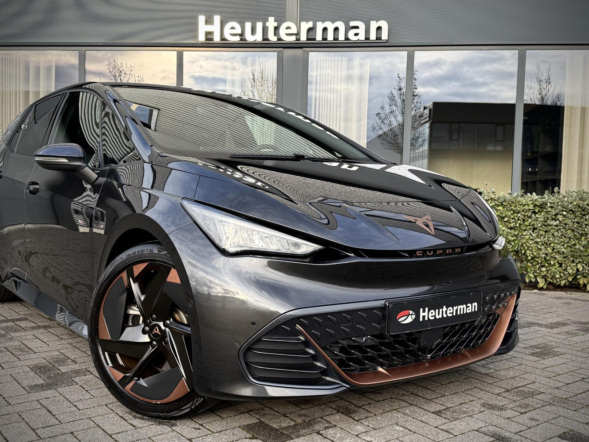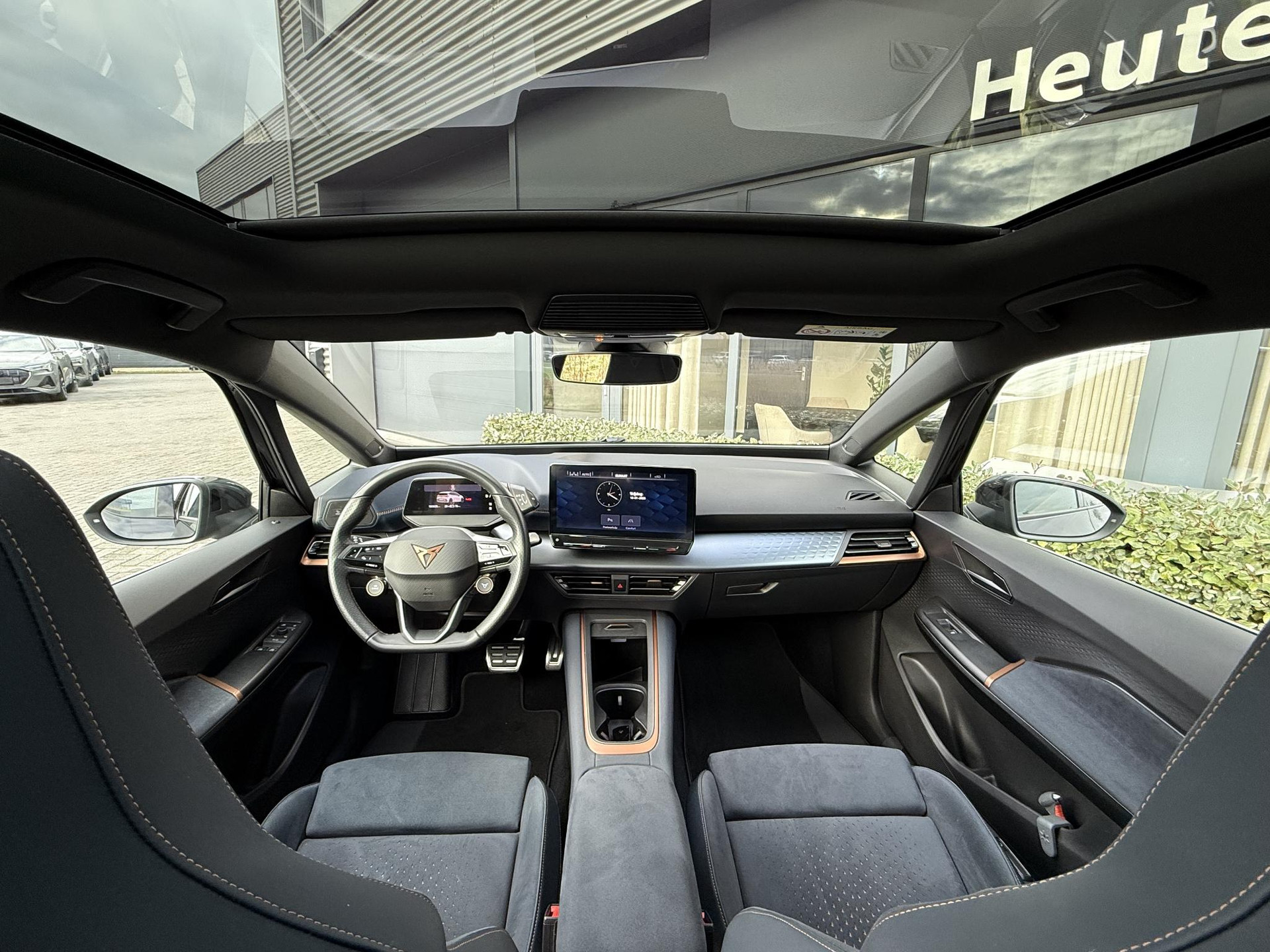 Van eerste eigenaar afkomstige, in zeer nette staat verkerende, en zeer rijk uitgeruste Cupra Born in Copper Edition. Voorzien van panoramadak, stoel massage, dode hoek assistent, afneembare trekaak, stoelverwarming, parkeer camera met automatisch inparkeer functie, stoelverwarming, privacy glas, draadloze telefoonlader etc. Dealer onderhouden, prijs is rijklaar incl 1 jaar algehele garantie. Cupra accu garantie t/m 11/2030 of 160.000 km.