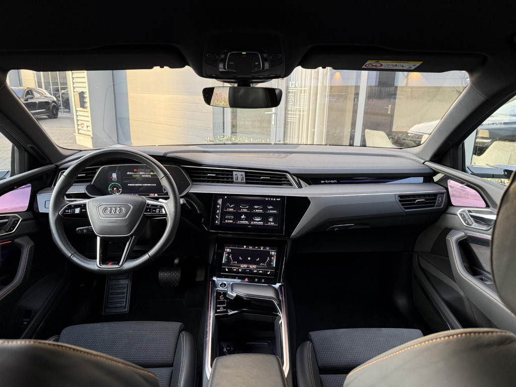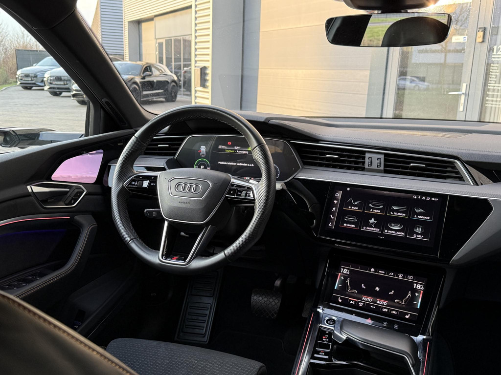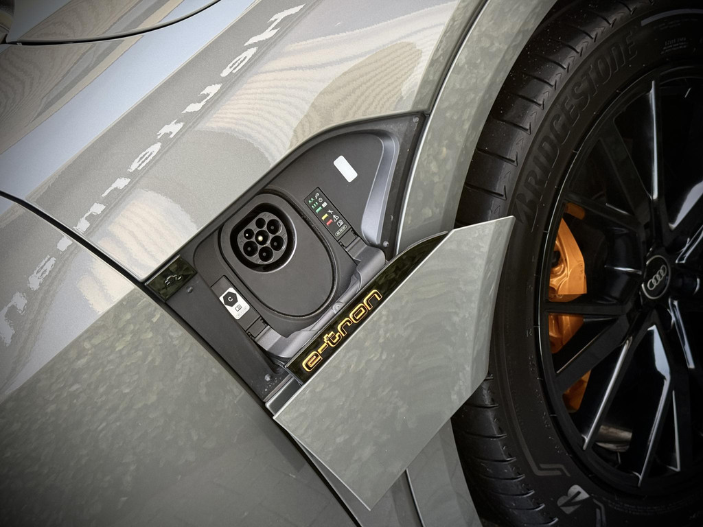 Alleen deze week van *** € 46.950 voor € 44.950 *** In absolute nieuwstaat verkerende Audi E-Tron 55 Quatttro Sportback. Van eerste eigenaar, dealer onderhouden, schade vrij en rechtstreeks bij Audi Duitsland afkomstig. Unieke Black Edition uitvoering in het Chronos grijs. Voorzien van S Line interieur en S line exterieur pakket, hoogglans zwart optiek exterieur pakket, hoogglans zwarte 21 Audi Sport velgen, E-Tron geel/ oranje remklauwen/ gordels en sticksels, elec. Achterklep, matrix LED, head up Display, dubbele laadpoort rechts en links met snellaad functie, 360gr camera met topview functie, camera spiegels met dodehoek functie, sfeerverlichting (naar kleur instelbaar), ACC radar cruise control, key less entry en go, Bang & Olufsen premium Audio installatie, 2 x Laadkabel aanwezig, Quattro vierwielaandrijving (hoogte instelbaar), 30 % wegenbelasting korting, lage bijtelling voor ondernemer, prijs is rijklaar incl BTW en 1 jaar algehele garantie. Audi accu garantie t/m 9/2030 of 160.000 km SOH 96%