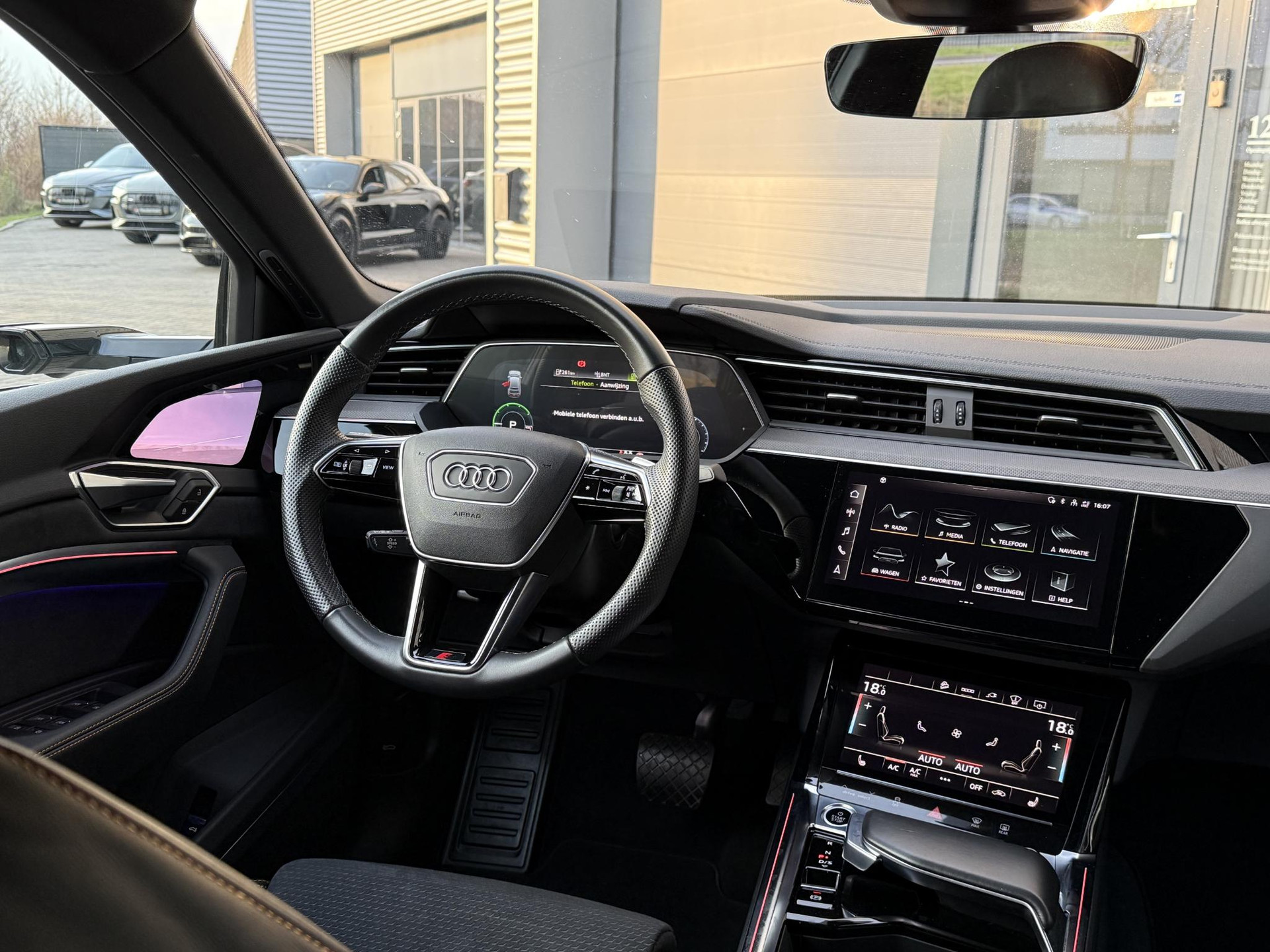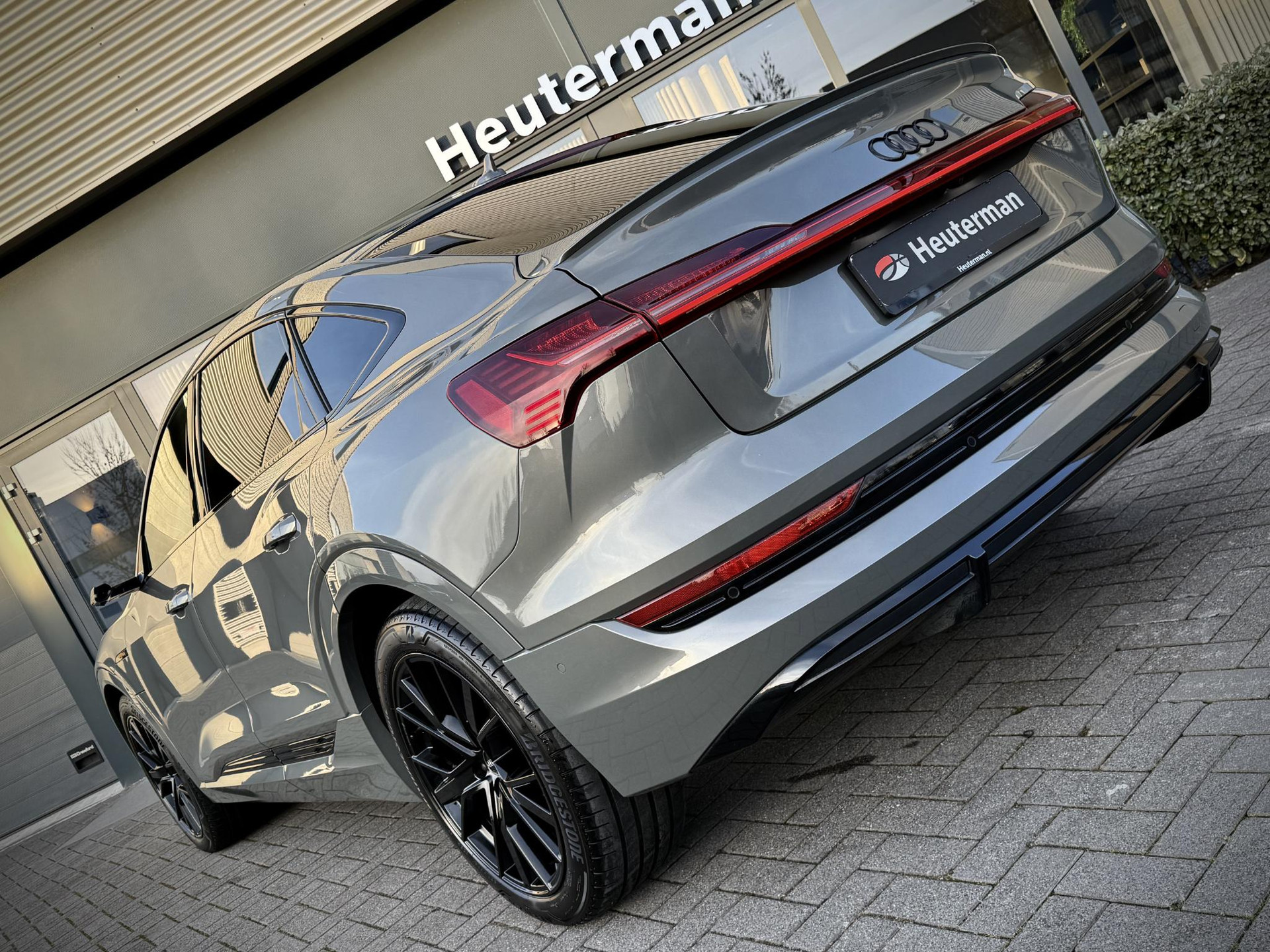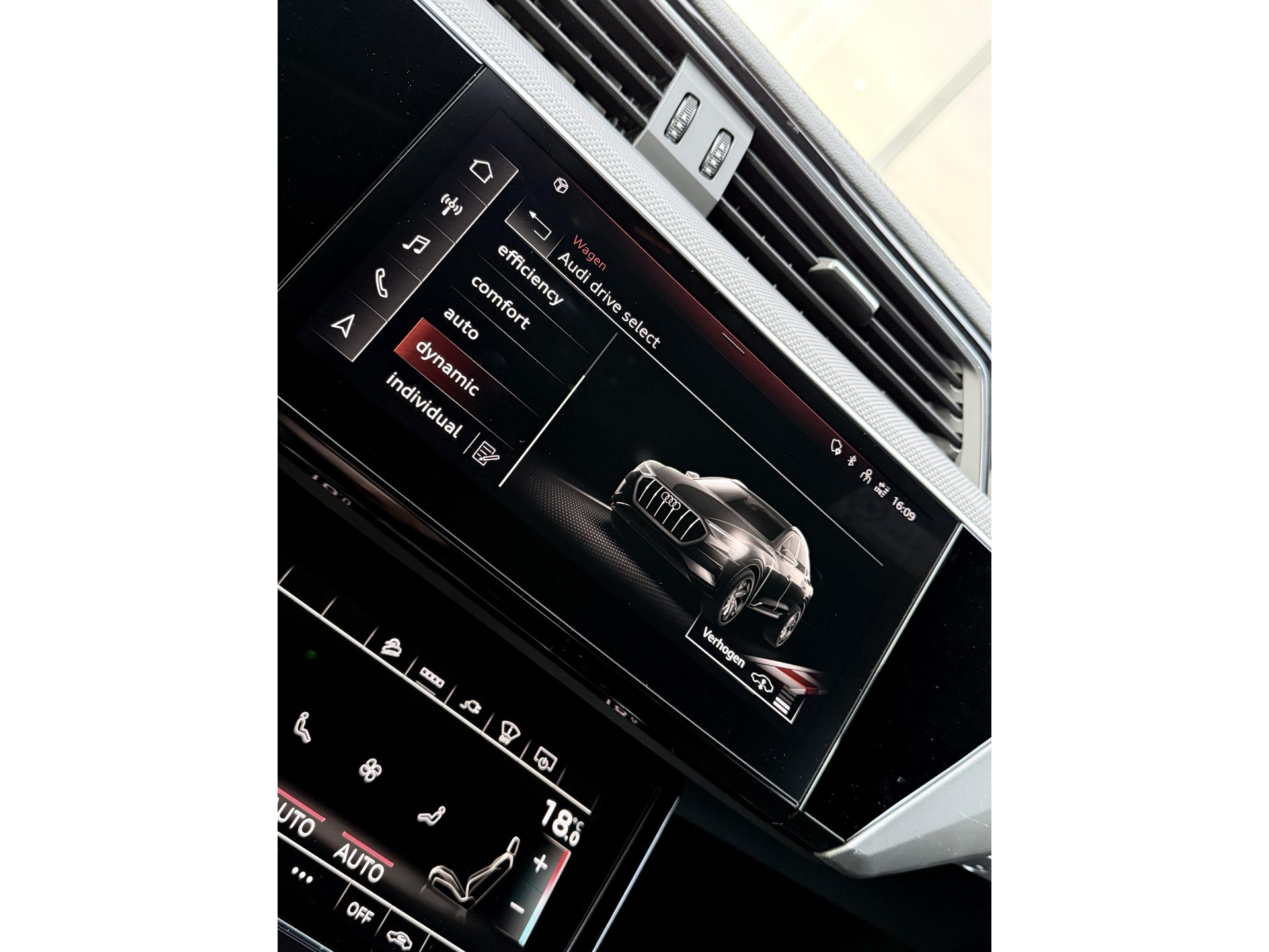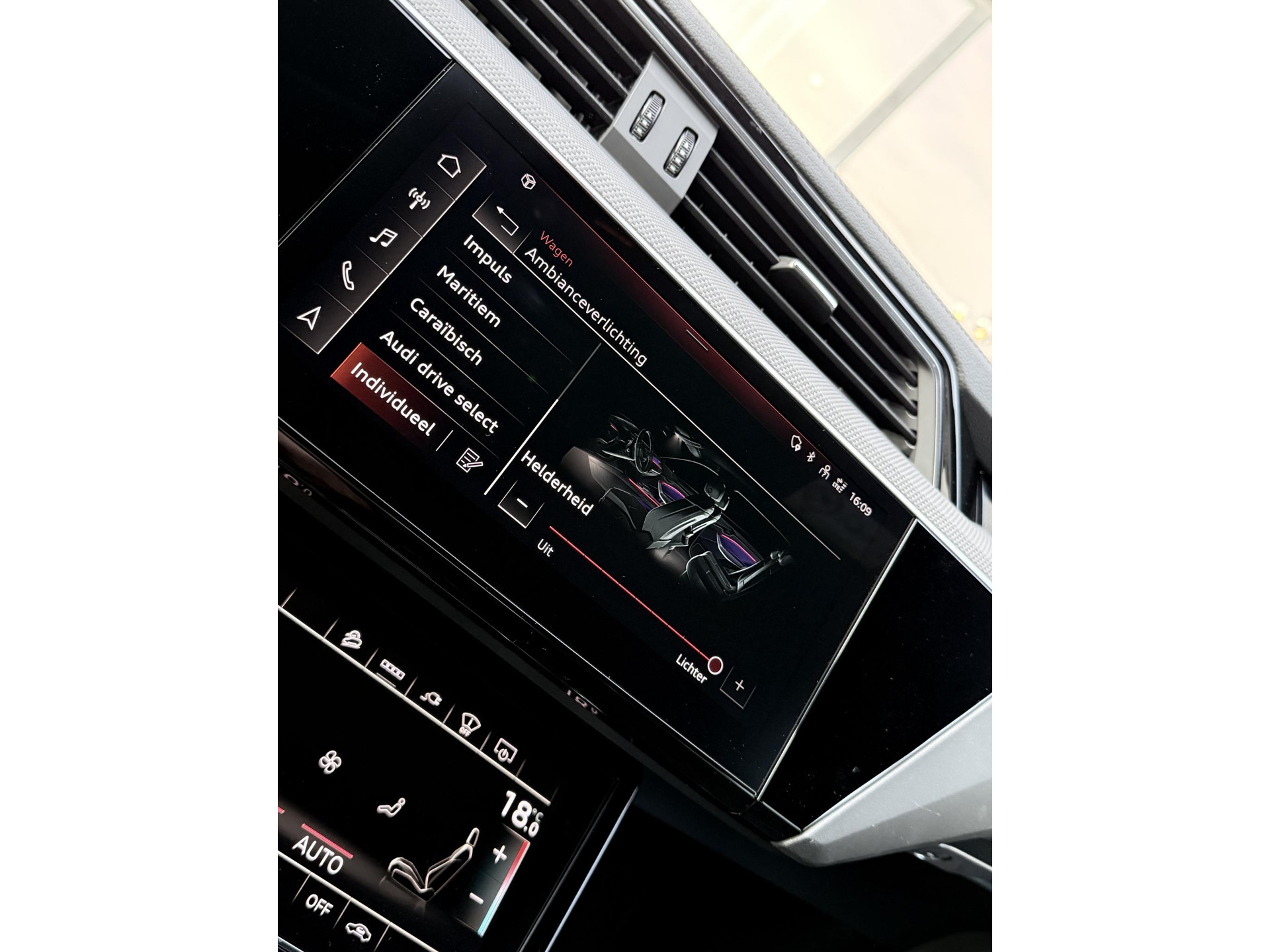 In absolute nieuwstaat verkerende Audi E-Tron 55 Quatttro Sportback. Van eerste eigenaar, dealer onderhouden, schade vrij en rechtstreeks bij Audi Duitsland afkomstig. Unieke Black Edition uitvoering in het Chronos grijs. Voorzien van S Line interieur en S line exterieur pakket, hoogglans zwart optiek exterieur pakket, hoogglans zwarte 21 Audi Sport velgen, E-Tron geel/ oranje remklauwen/ gordels en sticksels, elec. Achterklep, matrix LED, head up Display, dubbele laadpoort rechts en links met snellaad functie, 360gr camera met topview functie, camera spiegels met dodehoek functie, sfeerverlichting (naar kleur instelbaar), ACC radar cruise control, key less entry en go, Bang & Olufsen premium Audio installatie, 2 x Laadkabel aanwezig, Quattro vierwielaandrijving (hoogte instelbaar), 30 % wegenbelasting korting, lage bijtelling voor ondernemer, prijs is rijklaar incl BTW en 1 jaar algehele garantie. Audi accu garantie t/m 9/2030 of 160.000 km SOH 96%