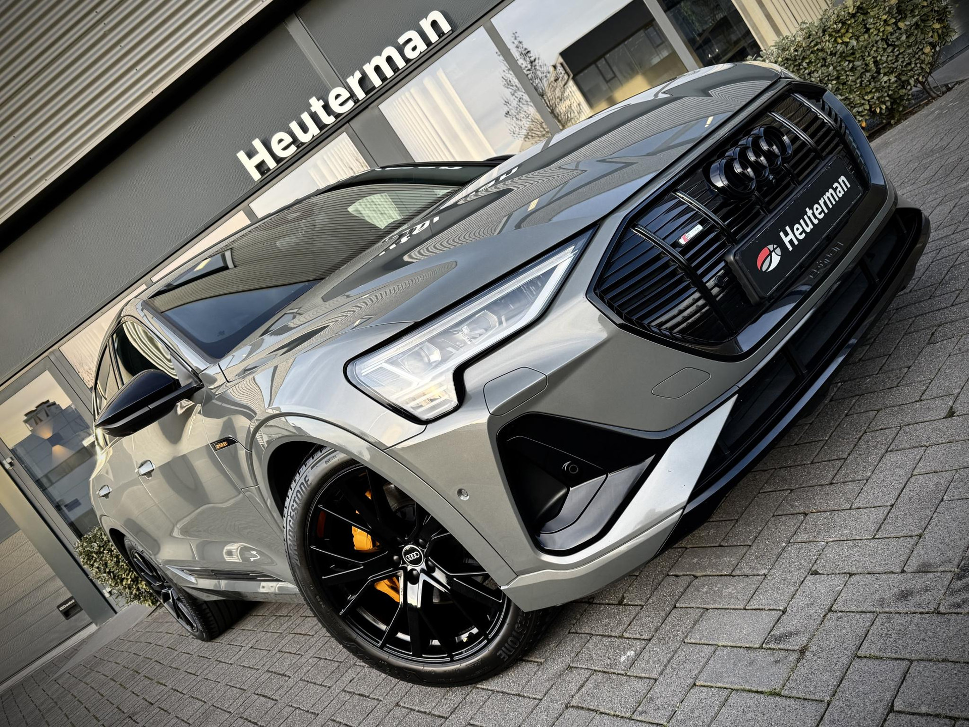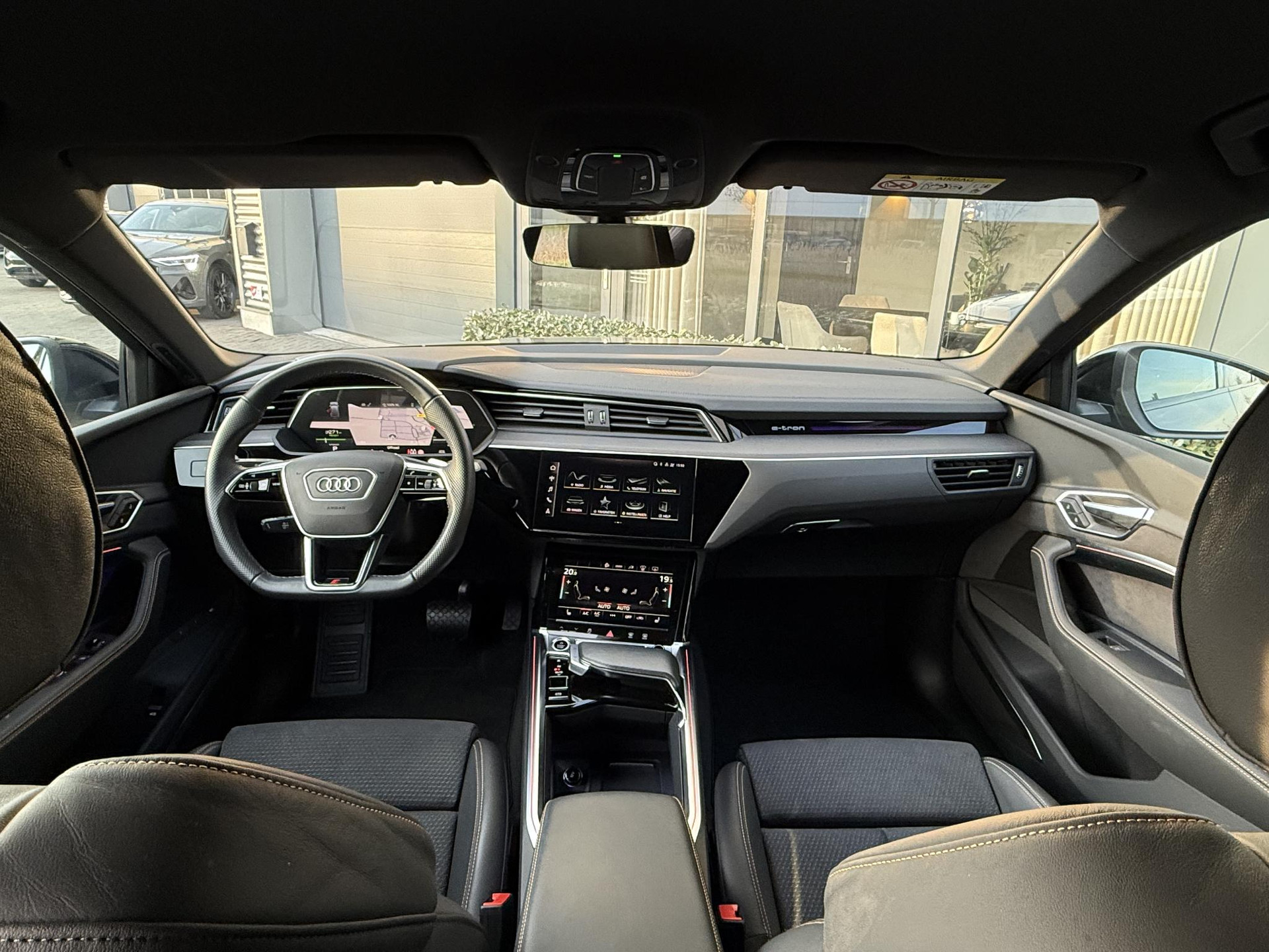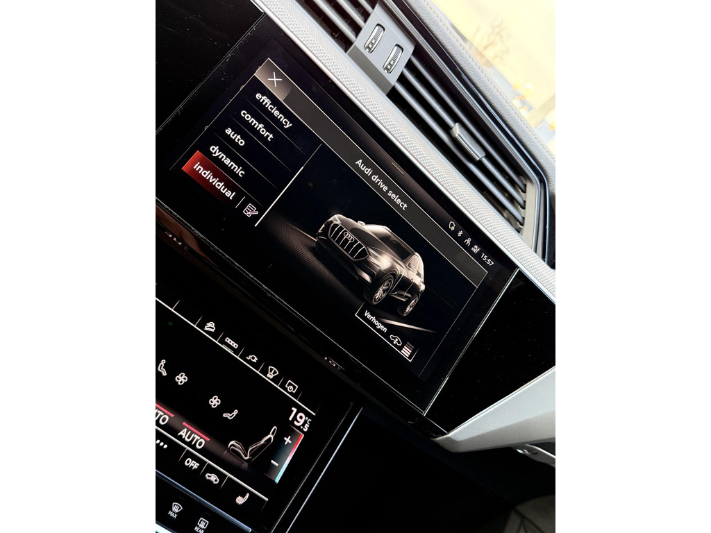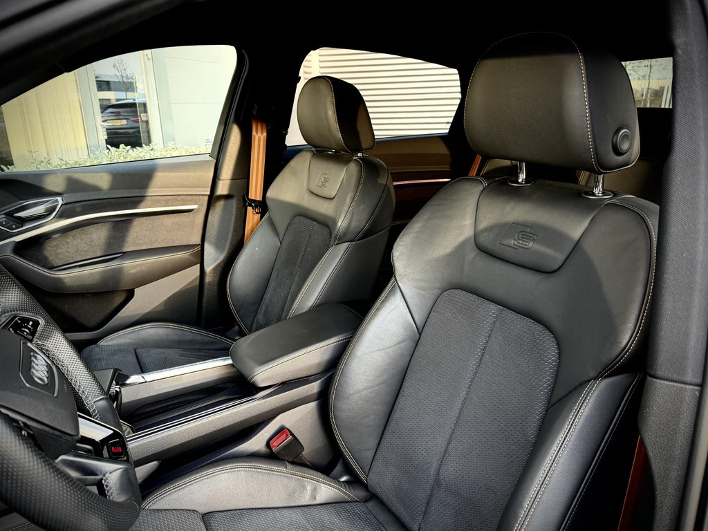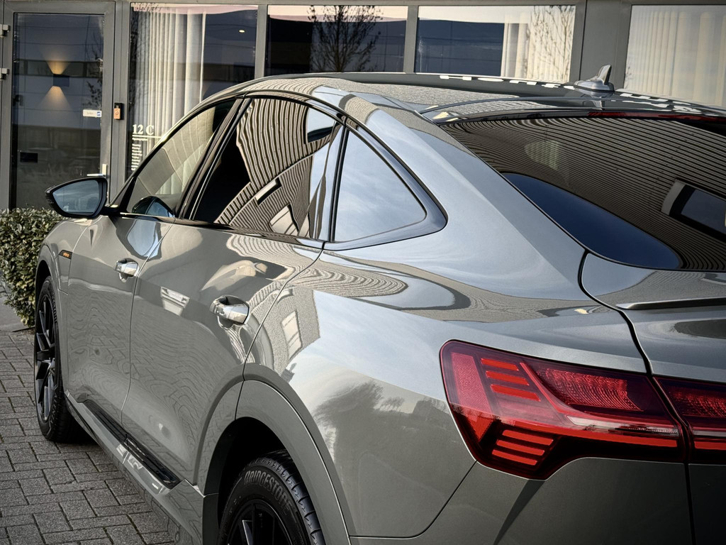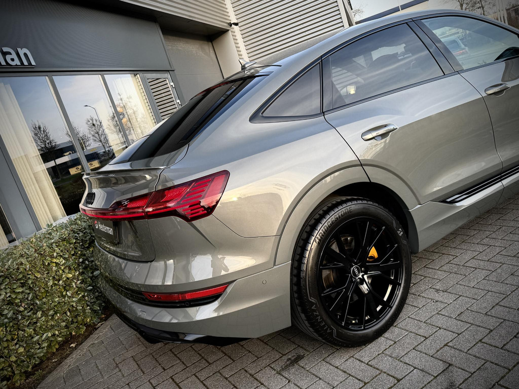 In absolute nieuwstaat verkerende Audi E-Tron 55 Quatttro Sportback. Van eerste eigenaar, dealer onderhouden, schade vrij en rechtstreeks bij Audi Duitsland afkomstig. Unieke Black Edition uitvoering in het Chronos grijs. Voorzien van S Line interieur en S line exterieur pakket, hoogglans zwart optiek exterieur pakket, hoogglans zwarte 21 Audi Sport velgen, E-Tron geel/ oranje remklauwen/ gordels en sticksels, vierzone climate control met display voor achter passagiers, elec. verstelbare stoelen met memory functie, elec. Achterklep, matrix LED, head up Display, dubbele laadpoort rechts en links met snellaad functie, 360gr camera met topview functie, sfeerverlichting (naar kleur instelbaar), cruise control, Bang & Olufsen premium Audio installatie, 2 x Laadkabel aanwezig, Quattro vierwielaandrijving (hoogte instelbaar), 30 % wegenbelasting korting, lage bijtelling voor ondernemer, prijs is rijklaar incl BTW en 1 jaar algehele garantie. Audi accu garantie t/m 2/2030 of 160.000 km SOH 97,4%