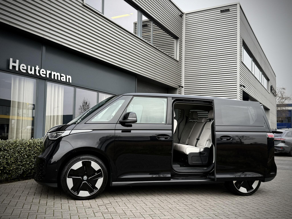 Origineel Nederlands (NAP) geleverde Volkswagen ID. Buzz in 1st Max uitvoering 77 kWh. Betreft een 5 zits uitvoering met aan weerszijden elektrisch bedienbare schuifdeuren. Verder is de bus compleet samengesteld; voorzien van o.a. elektr. verstelbare voorstoelen incl. memory functie en massage, IQ LED koplampen en achterlichten, parkeersensoren incl. 360 graden camera, adaptieve cruise control, elektr. wegklapbare trekhaak, sfeerverlichting etc. etc. Voor de zakelijke rijder; betreft een BTW auto. AVILOO Accu check uitgevoerd; OK en 96% SOH.
