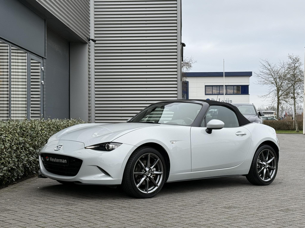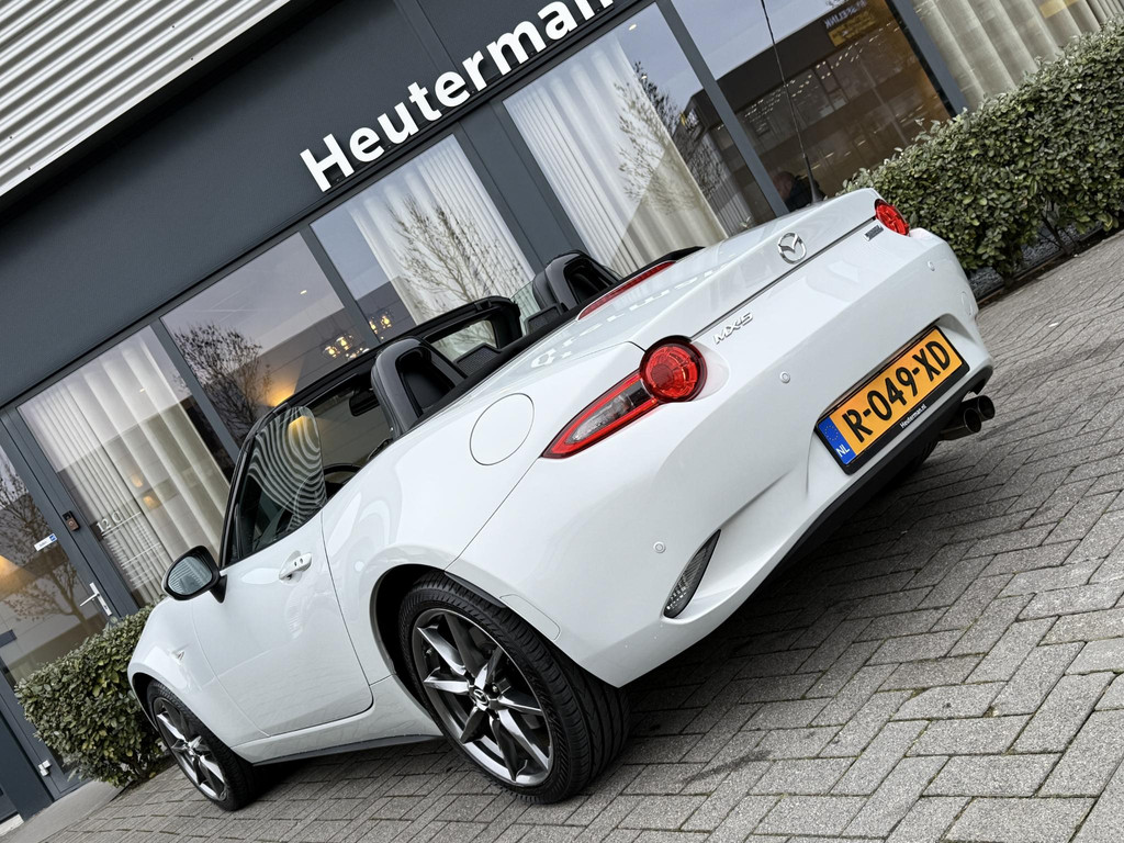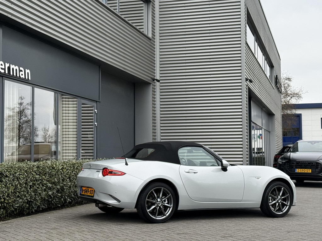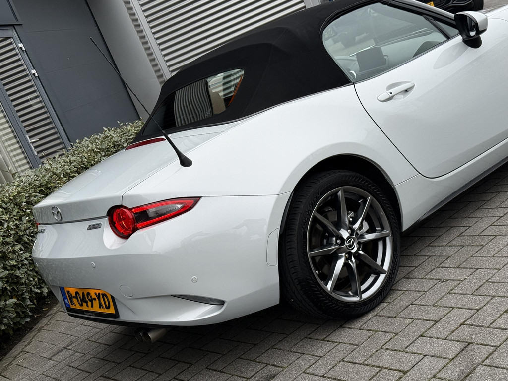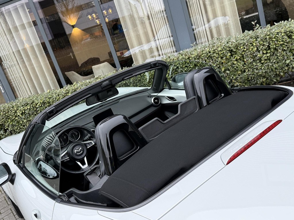 In absolute nieuwstaat verkerende Mazda MX-5 2.0 SkyActiv-G TS. Unieke kilometerstand van slechts 31.700 km. Niet in gerookt en gehele onderhoudshistorie aanwezig. Compleet samengesteld; voorzien van o.a. Bose audio installatie, navigatie, parkeersensoren achter, volledig lederen interieur, LED koplampen, lane assist etc. etc. Topstaat!