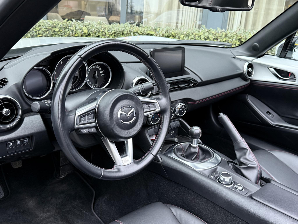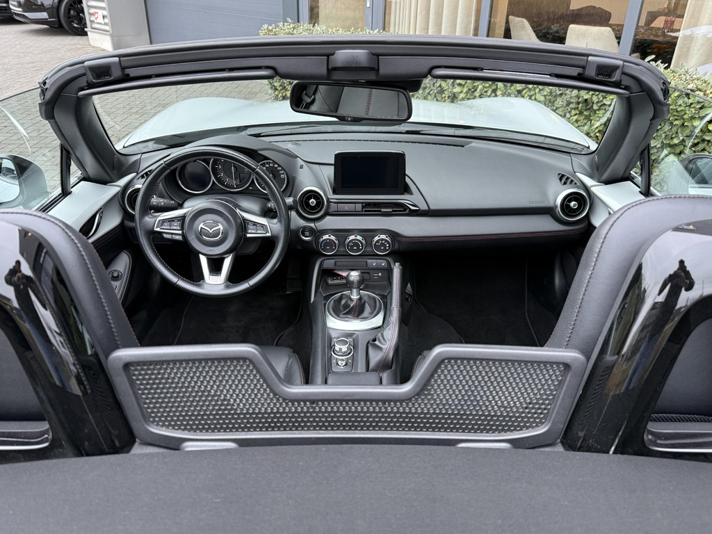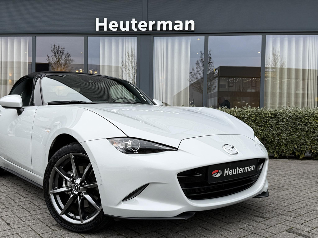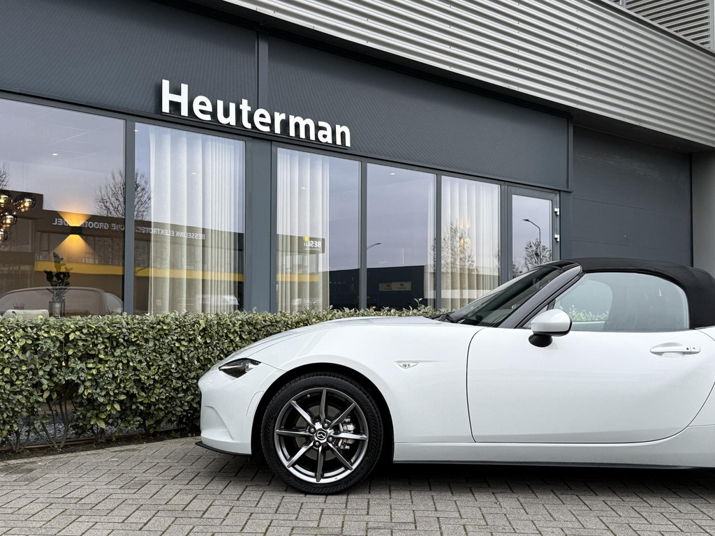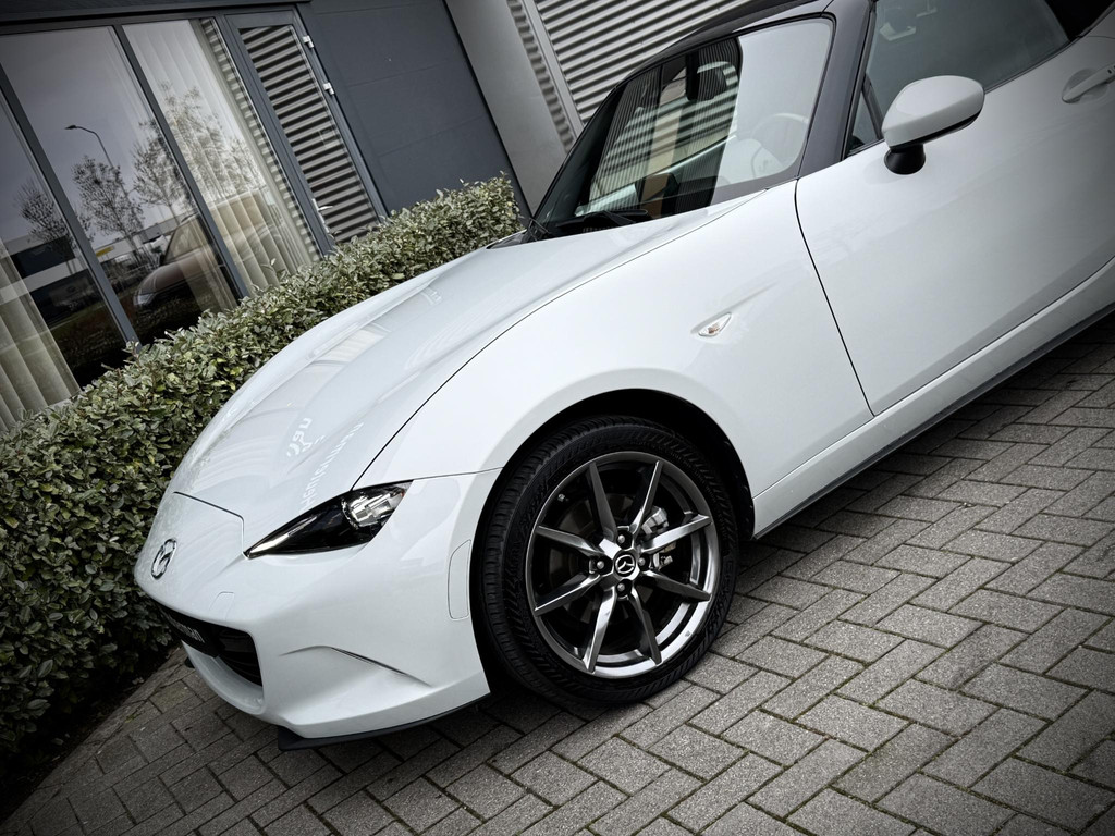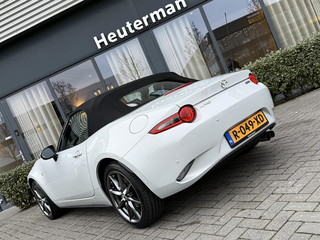 In absolute nieuwstaat verkerende Mazda MX-5 2.0 SkyActiv-G TS. Unieke kilometerstand van slechts 31.700 km. Niet in gerookt en gehele onderhoudshistorie aanwezig. Compleet samengesteld; voorzien van o.a. Bose audio installatie, navigatie, parkeersensoren achter, volledig lederen interieur, LED koplampen, lane assist etc. etc. Topstaat!