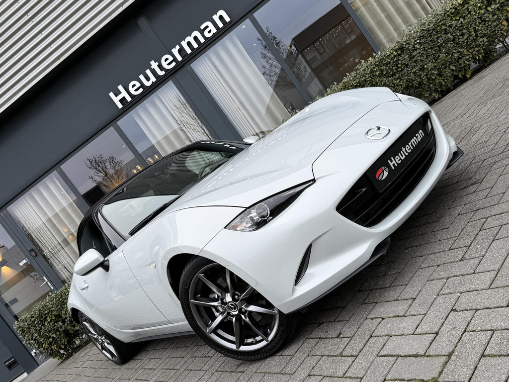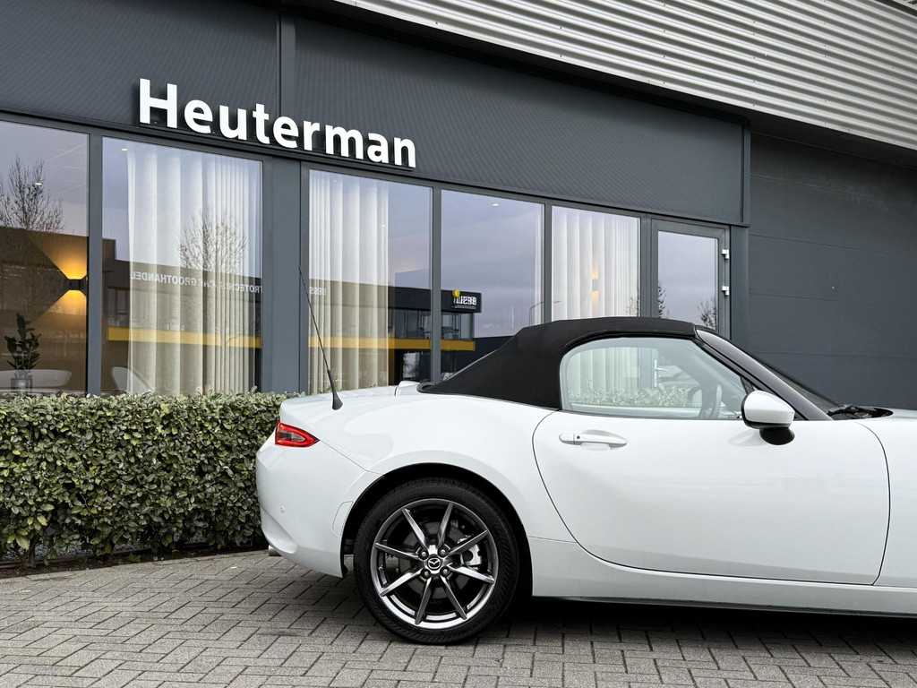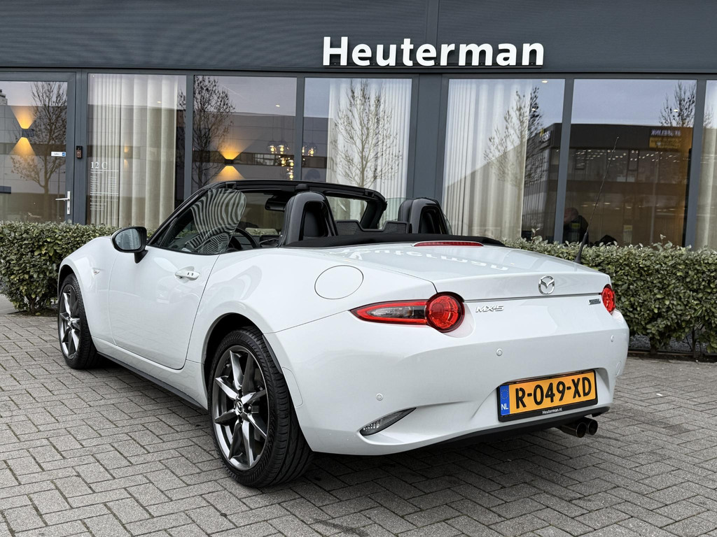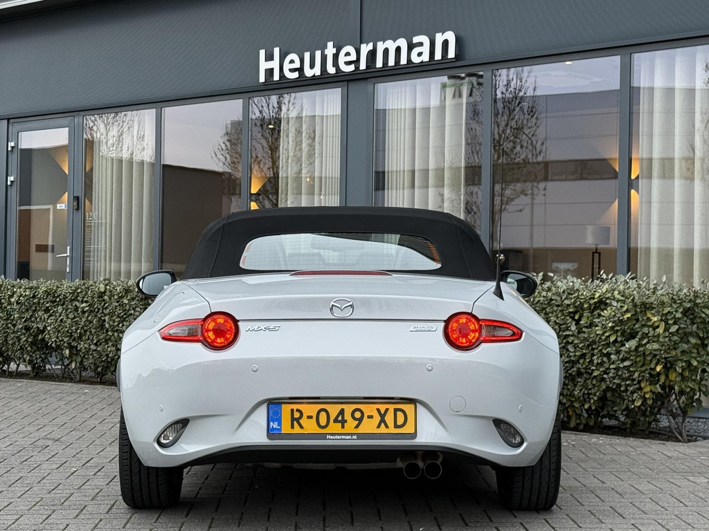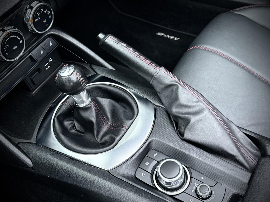 In absolute nieuwstaat verkerende Mazda MX-5 2.0 SkyActiv-G TS. Unieke kilometerstand van slechts 31.700 km. Niet in gerookt en gehele onderhoudshistorie aanwezig. Compleet samengesteld; voorzien van o.a. Bose audio installatie, navigatie, parkeersensoren achter, volledig lederen interieur, LED koplampen, lane assist etc. etc. Topstaat!