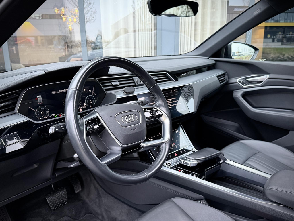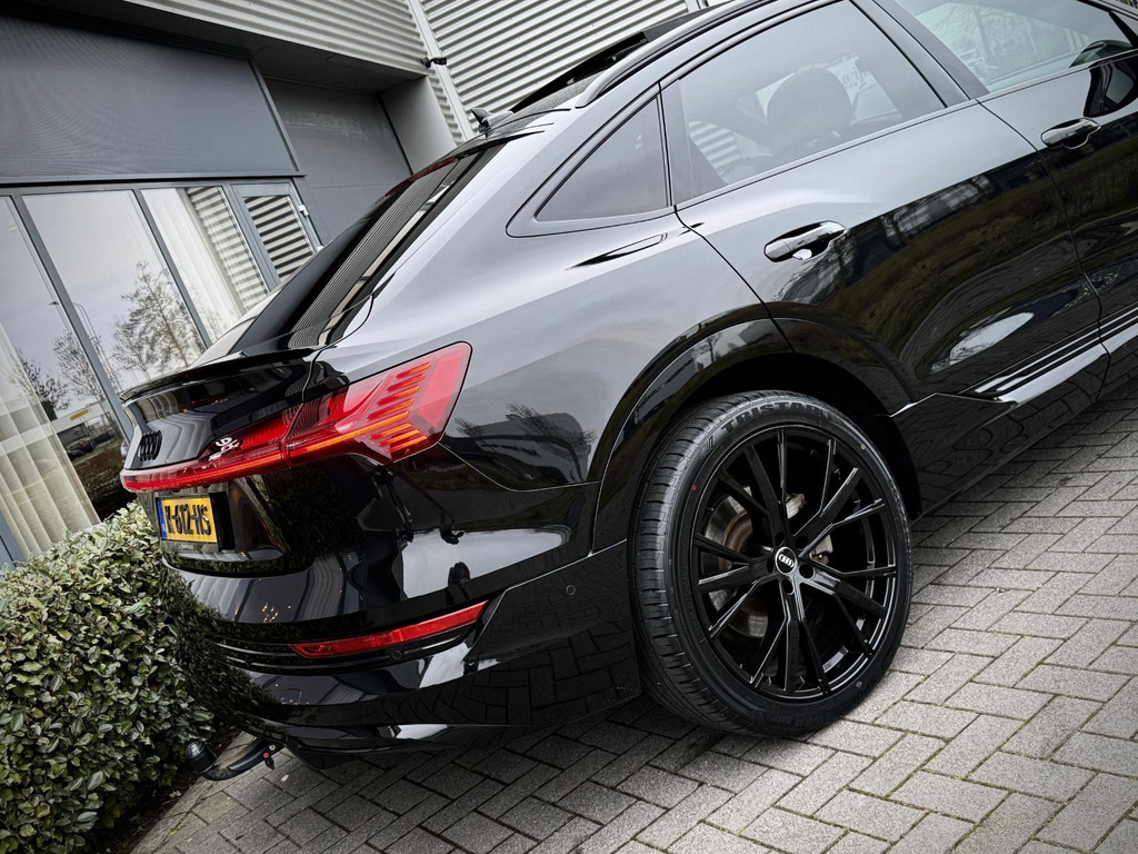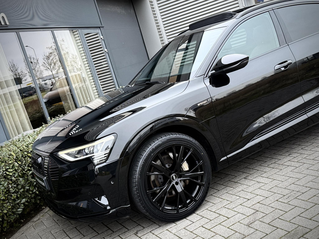 Origineel Nederlands geleverde, van eerste eigenaar afkomstige, dealer onderhouden en schade vrije Audi E-Tron 55 Quattro. Niet in gerookt en uitgevoerd in unieke Black Edition Uitvoering! Voorzien van S line interieur en S line exterieur, Black optiek exterieur pakket met hoogglans zwarte details en 22 inch hooglans zwarte S line velgen, privacy glas af fabriek, sfeerverlichting (naar kleur instelbaar), Quattro vierwielaandrijving, Luchtvering (hoogte instelbaar), stoelverwarming, afneembare trekhaak, snellaad functie, elec. achterklep, Matrix LED Verlichting, zwarte hemelbekleding, 2 x laadkabel aanwezig, 2 x sleutel, historie aanwezig, Audi accu garantie t/m 12 - 2028, 30% wegenbelasting korting, prijs is rijklaar incl BTW en 1 jaar volledige garantie. TOPSTAAT!