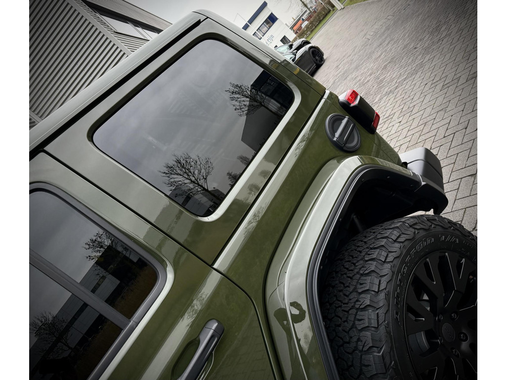 Alleen deze week, van € 63.950 voor € 61.950 In zeer nette staat verkerende, origineel Nederlands geleverde, dealer onderhouden en uniek samengestelde Jeep Wrangler plug in hybrid. Zwarte Brute velgen, cognac lederen bekleding, led verlichting, afneembare hard top met uitneembare dak panelen, premium audio installatie, afneembare trekhaak, Apple CarPlay, navigatie, stoelverwarming voor, stuurwiel verwarming, privacy glas achter, 2 x laadkabel, topstaat! Unieke kilometerstand van slechts 30d km!