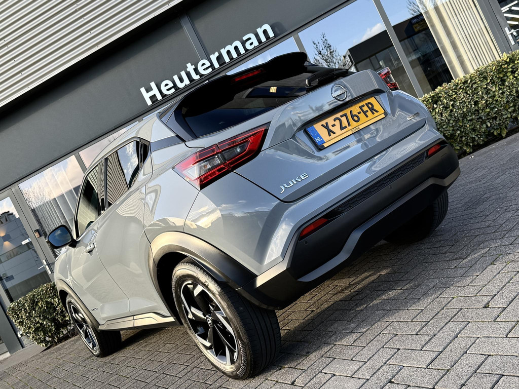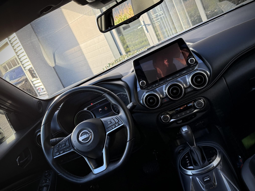 Van eerste eigenaar afkomstige, origneel NL geleverde en in nieuwstaat verkerende Nissan Juke 1.6 Hybrid. Voorzien van parkeercamera, climate control, lane assist, elec. inklapbare spiegels, privacy glas achter, hoogglans zwart/ gepolijste lichtmetalen velgen, navigatie multimedia, sportstoelen, zwarte hemelbeklding, etc. TOPSTAAT! Auto is nog voorzien van fabrieksgarantie.