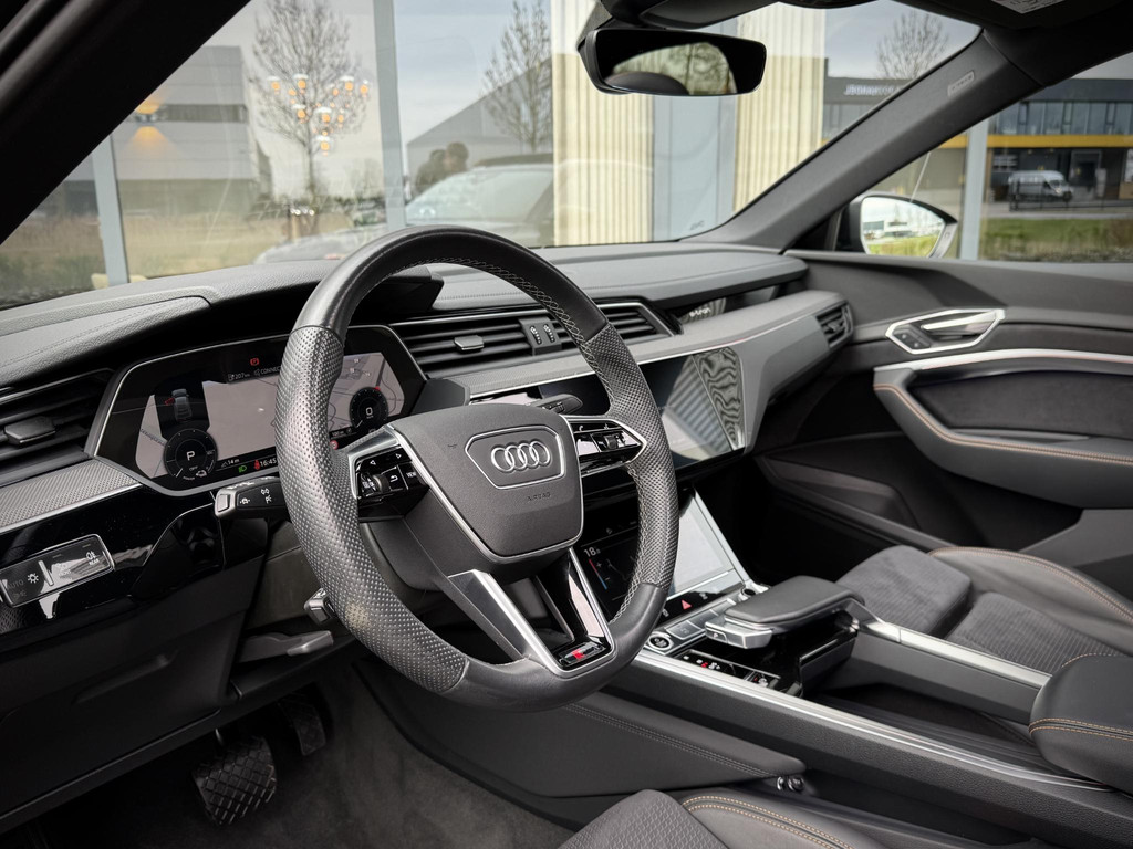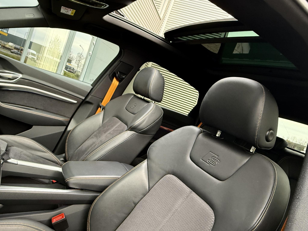 In absolute nieuwstaat verkerende, van eerste eigenaar afkomstige, dealer onderhouden en schade vrije Audi E-Tron 55 Sportback S line Black Edition. Rechtstreeks afkomstig van Audi Duitsland. Voorzien van S line interieur, S line exterieur pakket, elec. verstelbare stoelen met memory functie, Parkeer camera, Black optiek exterieur pakket, hoogglans zwarte originele S line velgen 21 inch, E-Tron oranje/ gele remklauwen incl gordels en sticksels, panoramadak, snellaadfunctie, Sfeerverlichting (naar kleur instelbaar), Quattro vierwielaandrijving, Luchtvering (naar hoogte instelbaar), 3 spaaks S line stuurwiel, stoelverwarming, elec.achterklep, 2 x laadkabel aanwezig inclusief thuislader, topstaat! 30% wegenbelasting korting, lage bijteling voor ondernemer, prijs is inclusief BTW, Audi Accu garantie t/m 11-2030, SOH 99,3%!!, Al onze auto's zijn rijklaar en direct leverbaar inc. 1 jaar garantie.
