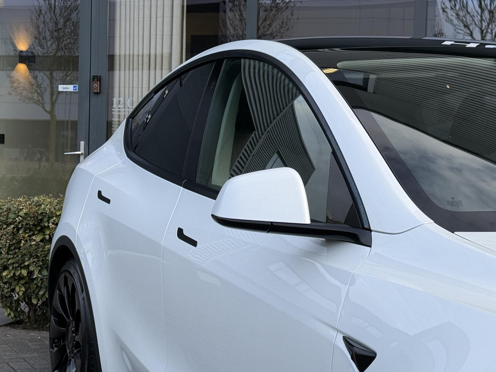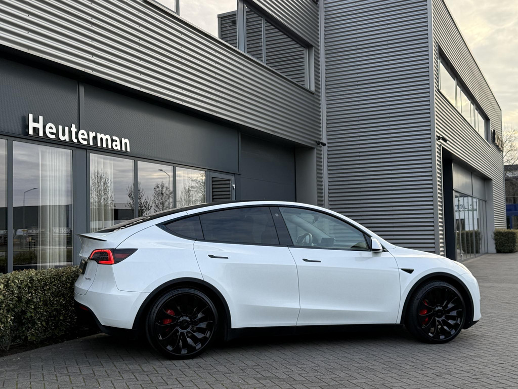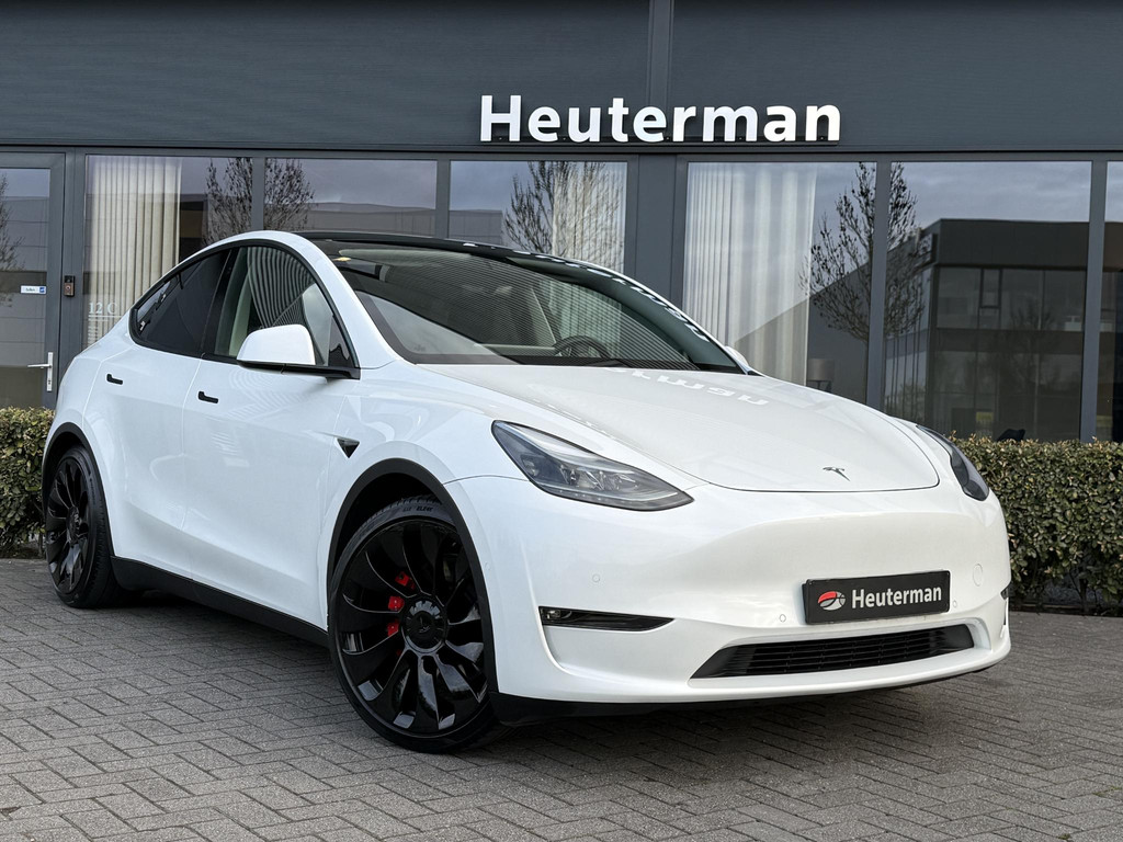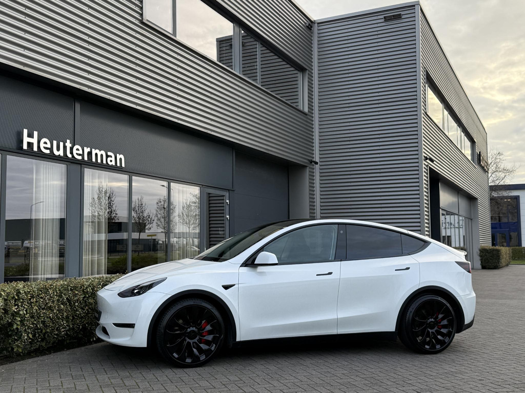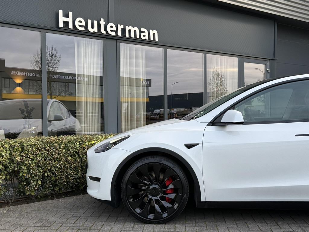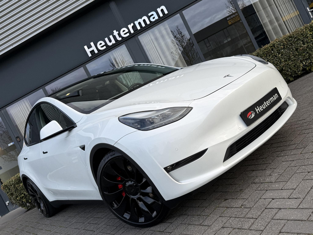 Nieuw binnen, alleen deze week van EUR 35.950,- voor EUR 34.950,- In zeer nette staat verkerende en van eerste eigenaar afkomstige Tesla Model Y Performance All Wheel Drive. Voorzien van 21 inch originele Tesla Turbine velgen, rode remklauwen, carbon achterspoier, privacy glas, elec. achterklep, wit metallic met zwart lederen interieur, stoelverwarming voor en achter, stuurwiel verwarming, achteruitrijcamera, draadloze telefoonladers, autopilot, 2 x laadkabel aanwezig, 30% wegenbelasting korting, lage bijtelling voor ondernemer, prijs is rijklaar incl BTW. Voorzien van Tesla Garantie op accu, motor en aandrijflijn t/m 12 2030.