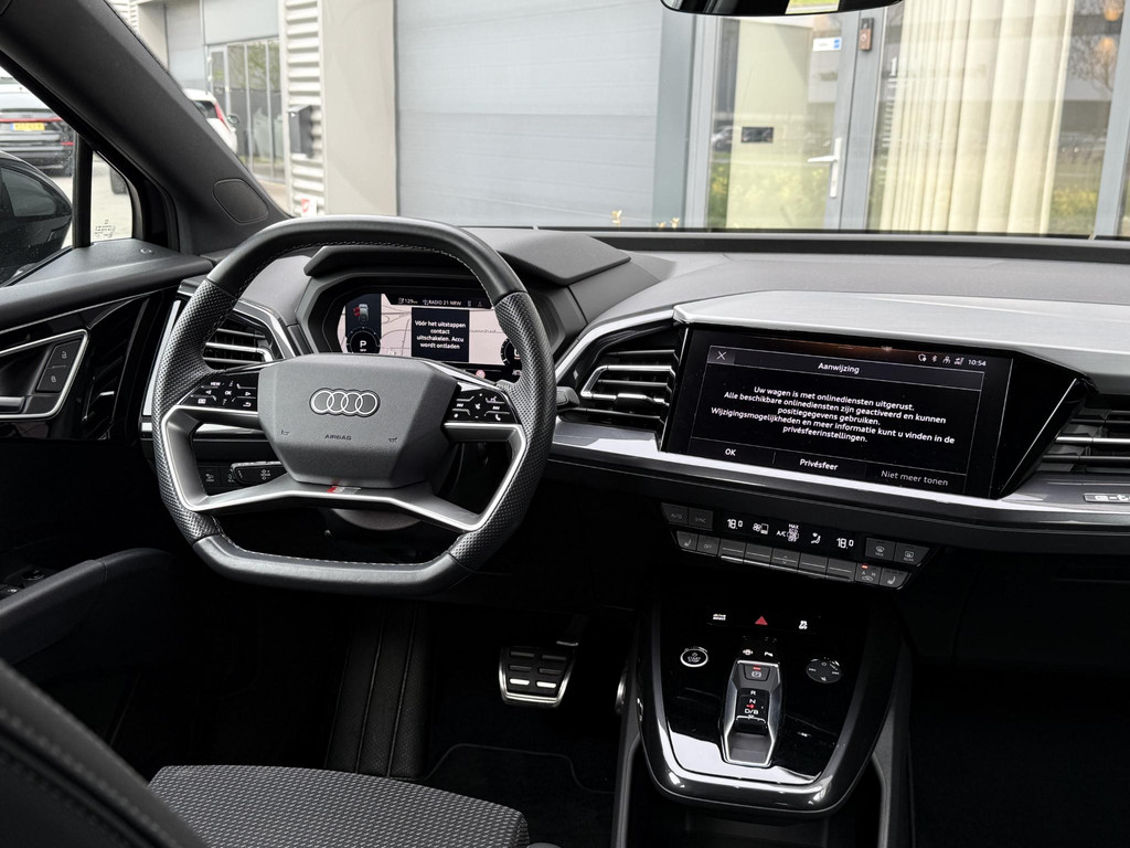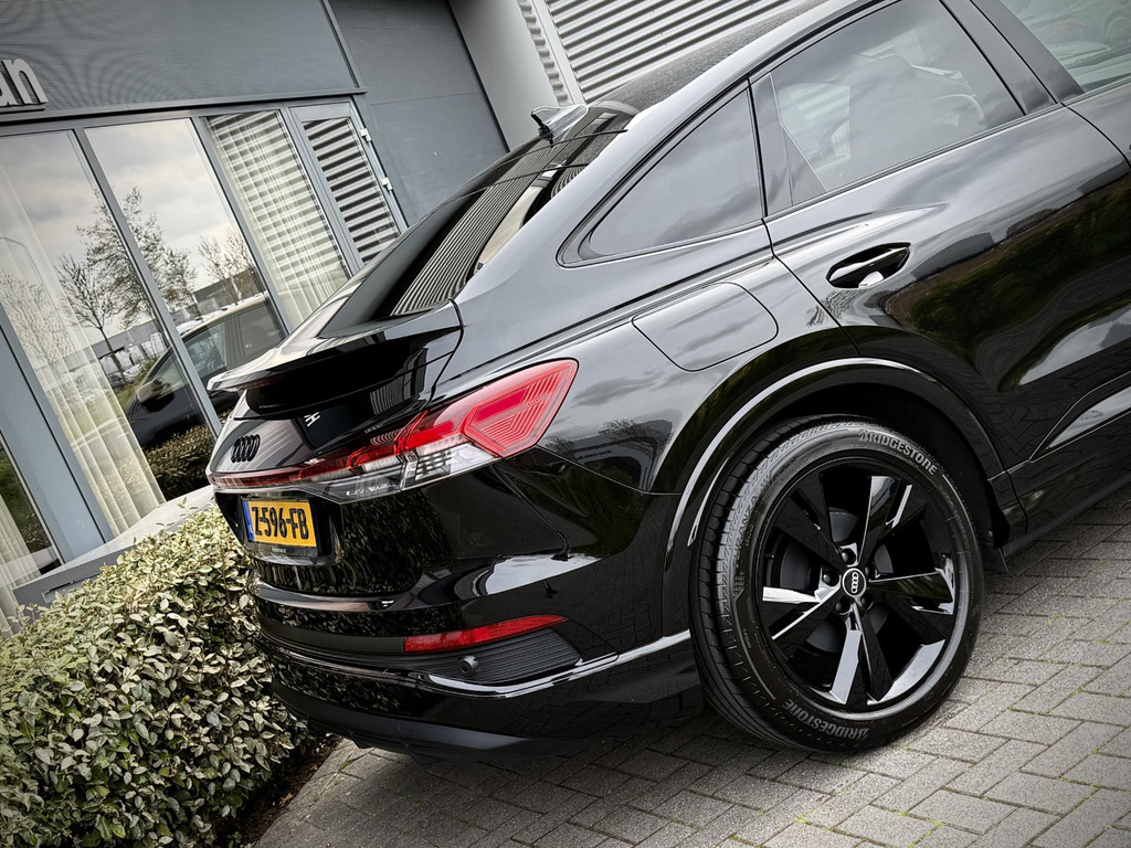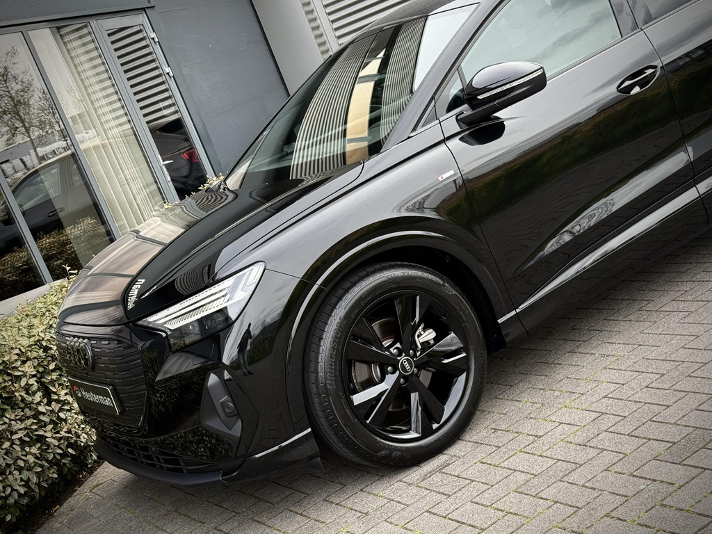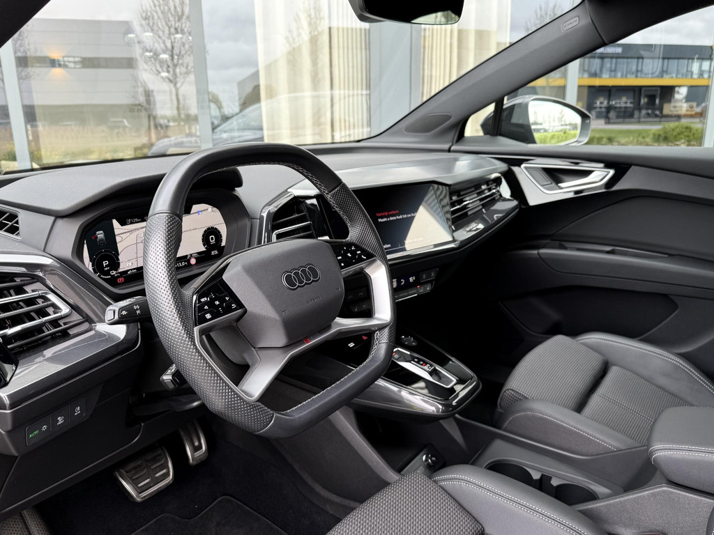 In absolute nieuwstaat verkerende Audi Q4 Sportback, S-Line uitvoering met zwart optiek pakket. Auto is verder voorzien van o.a. LED koplampen en - achterlichten, parkeersensoren voor + achter, elektr. bedienbare achterklep, 3 zone climate control met bedieningspaneel voor achter passagiers, stoelverwarming, stuurwielverwarming, MMI multifunctioneel touchscreen, S line exterieur pakket, S line interieur pakket, privacy glas achter, hoogglans zwarte S line velgen, hoogglans zwarte Audi logo’s, etc. etc. Auto heeft een uniek lage km. stand; slechts 10.868! Audi accu garantie tot 08-2023 of 160.000 km. Wij hanteren geen afleverkosten; prijs is rijklaar inclusief 1 jaar algehele Audi garantie. SOH 92,4%!!!