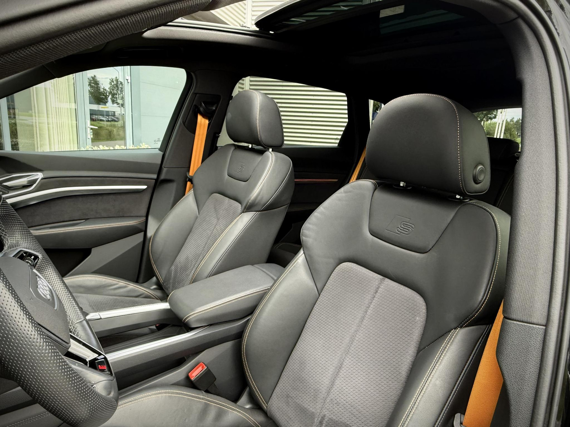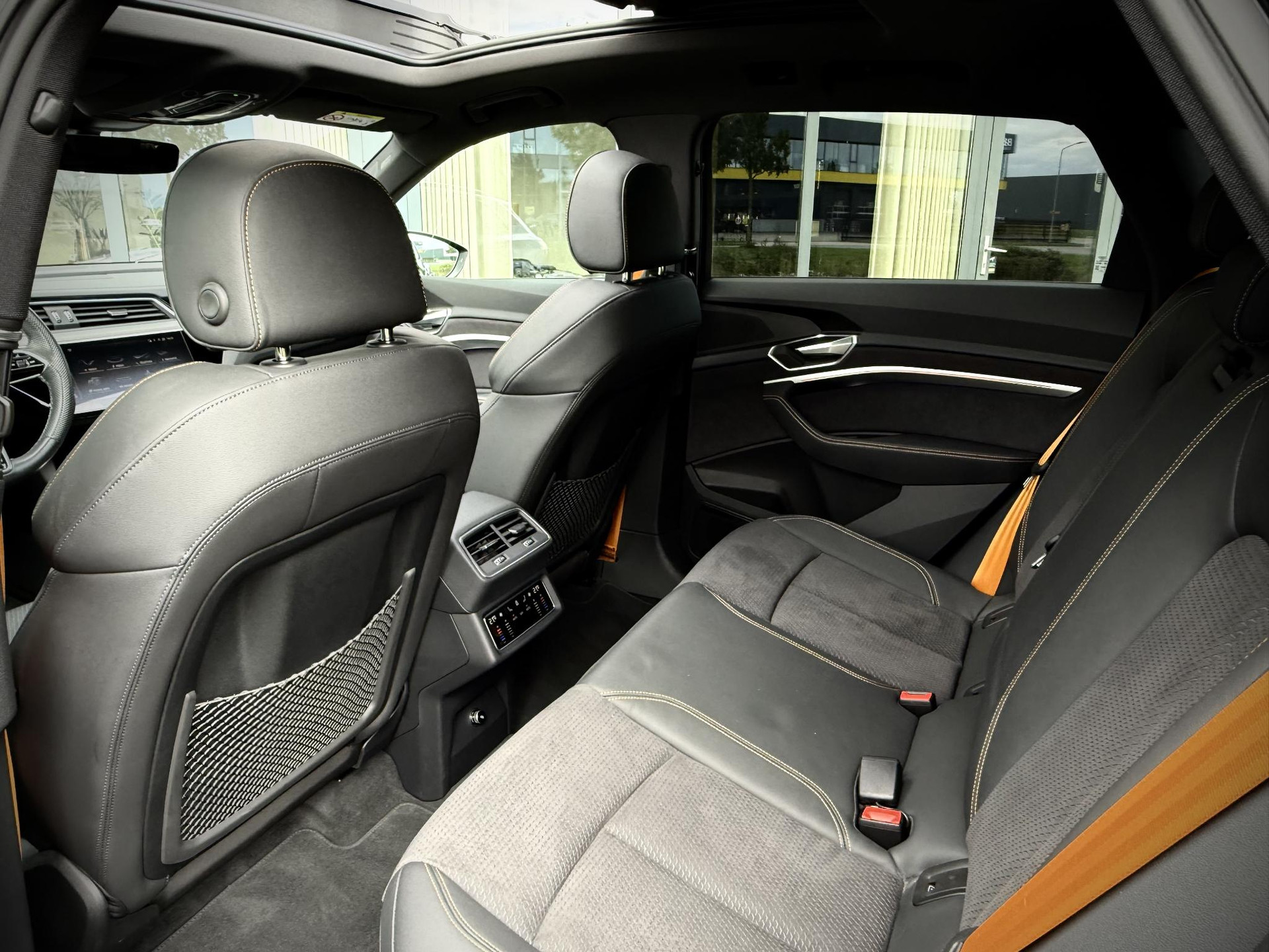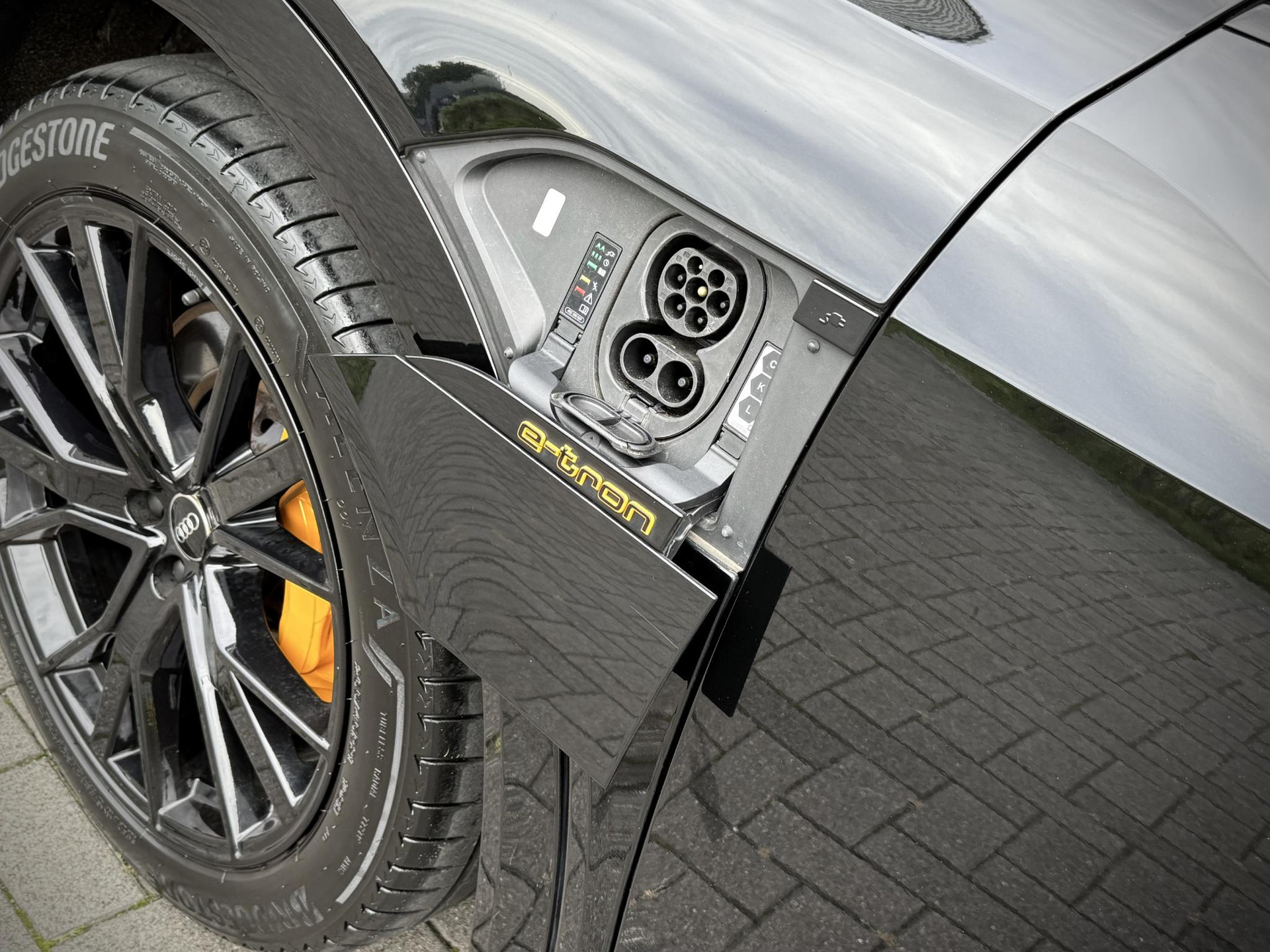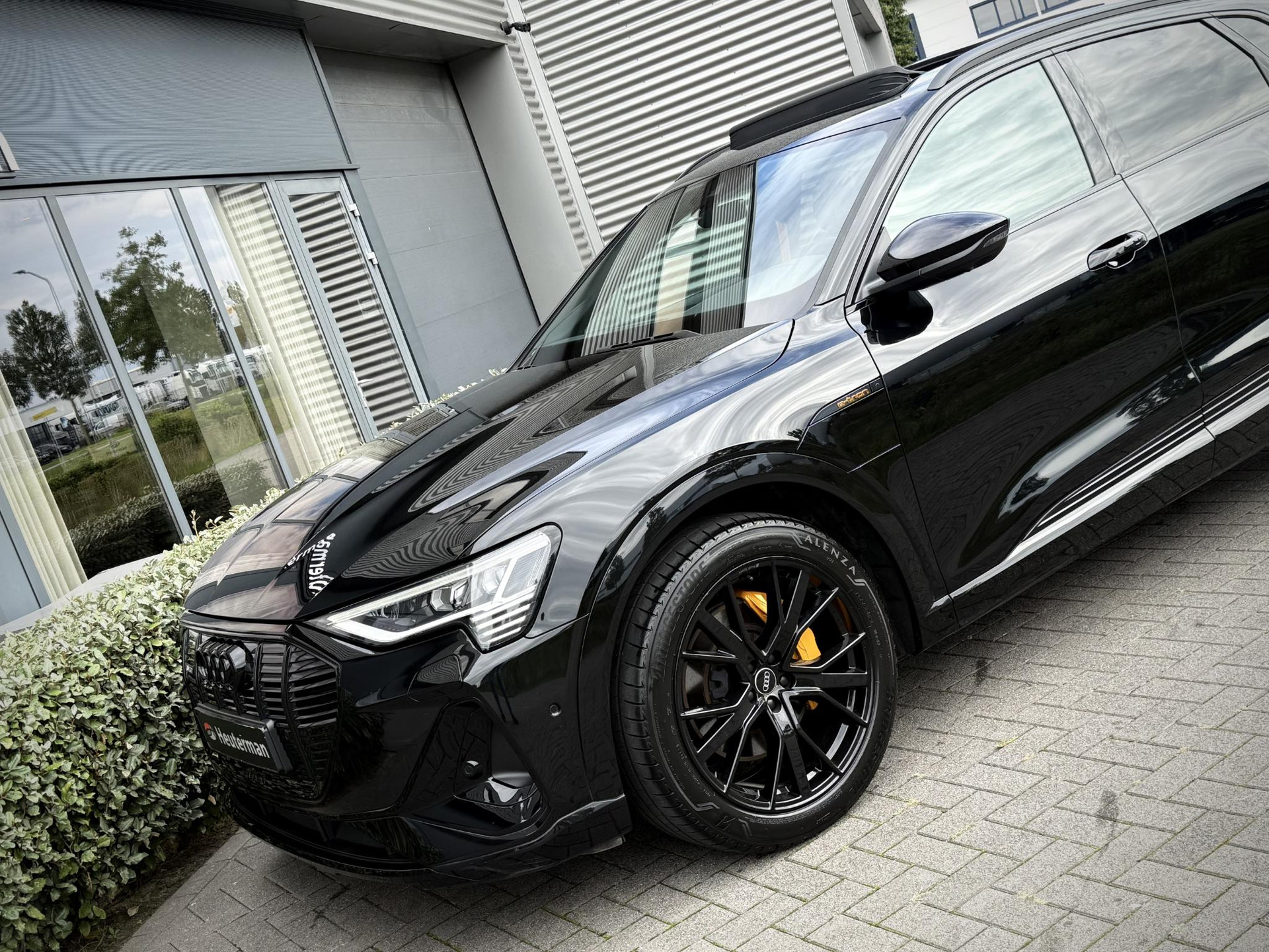 Alleen deze week *** van EUR 44.950,- voor EUR 41.950,- *** In nieuwstaat verkerende en van eerste eigenaar afkomstig, dealer onderhouden en schadevrije Audi E-Tron 50 Quattro in unieke Black Edition uitvoering. Deze uitvoering is voorzien van S line interieur, S line exterieur pakket, hoogglans zwart exterieur pakket, E-Tron Geel/ Oranje remklauwen/ gordels en sticksel naden, panoramadak, 21 inch hoogglans zwarte en originele S line velgen, privacy glas origineel af fabriek, LED verlichting voor en achter, Quattro vierwiel aandrijving, ACC radar cruise control, Luchtvering (hoogte instelbaar), Sfeerverlichting (kleur instelbaar), elec. verstelbare stoelen met geheugen, 2 x laadpoort rechts en links met snellaadfunctie, elec. achterklep, key less entry & go, Premium Audio/ Bang & Olufsen, 3 spaaks S line stuurwiel, 4 zone airco met climate control voor en achter incl. display voor achterbank, dode hoek systeem, uitstaphulp, 360 graden camera met topview functie parkeer camera voor, achter en zijkant, stoelverwarming, etc. TOPSTAAT met slechts 32.154 km, 75% wegenbelasting korting, lage bijtelling voor ondernemer, prijs is rijklaar incl BTW en 1 jaar algehele garantie. Audi Accu garantie t/m 7-2030!