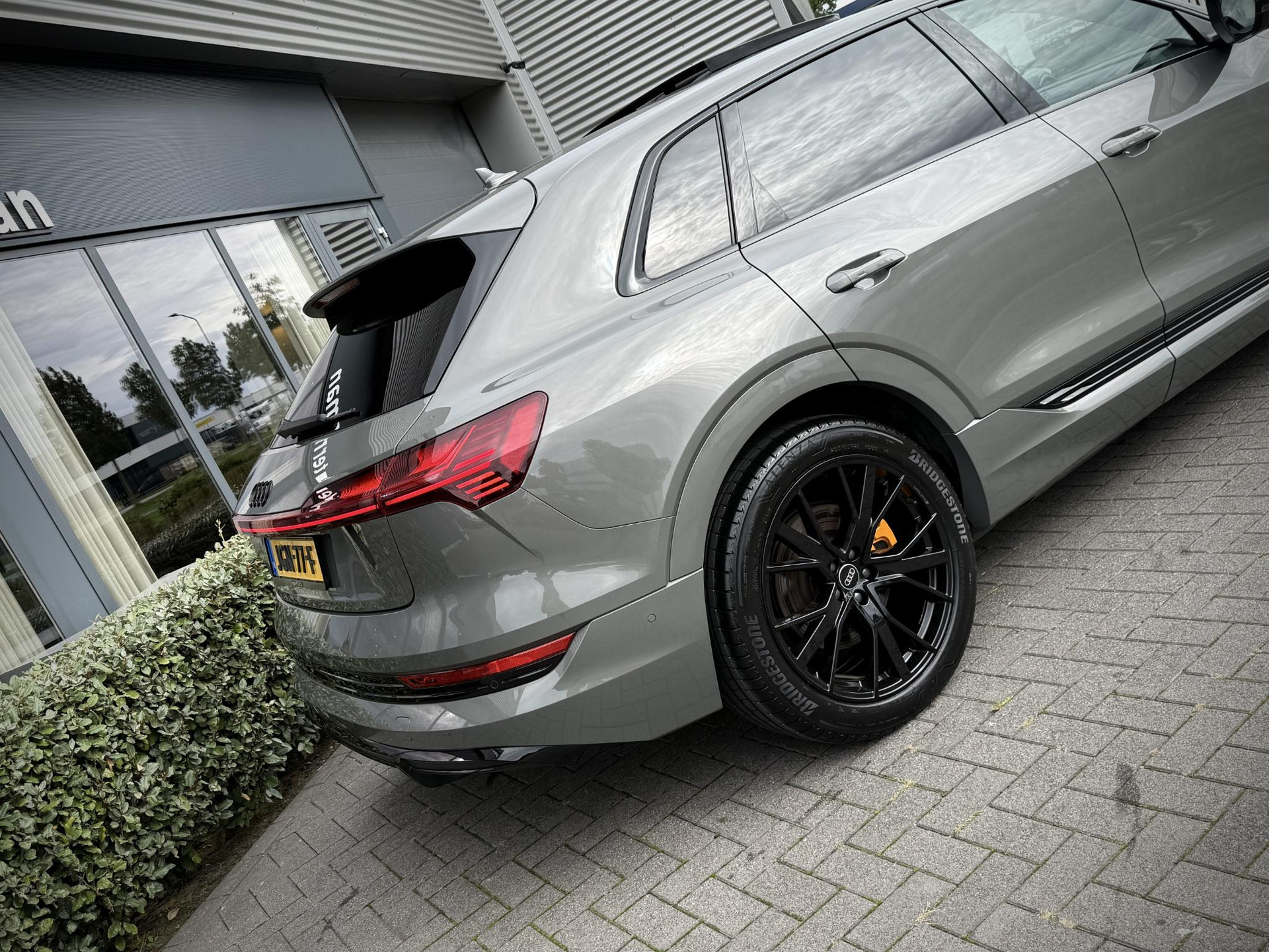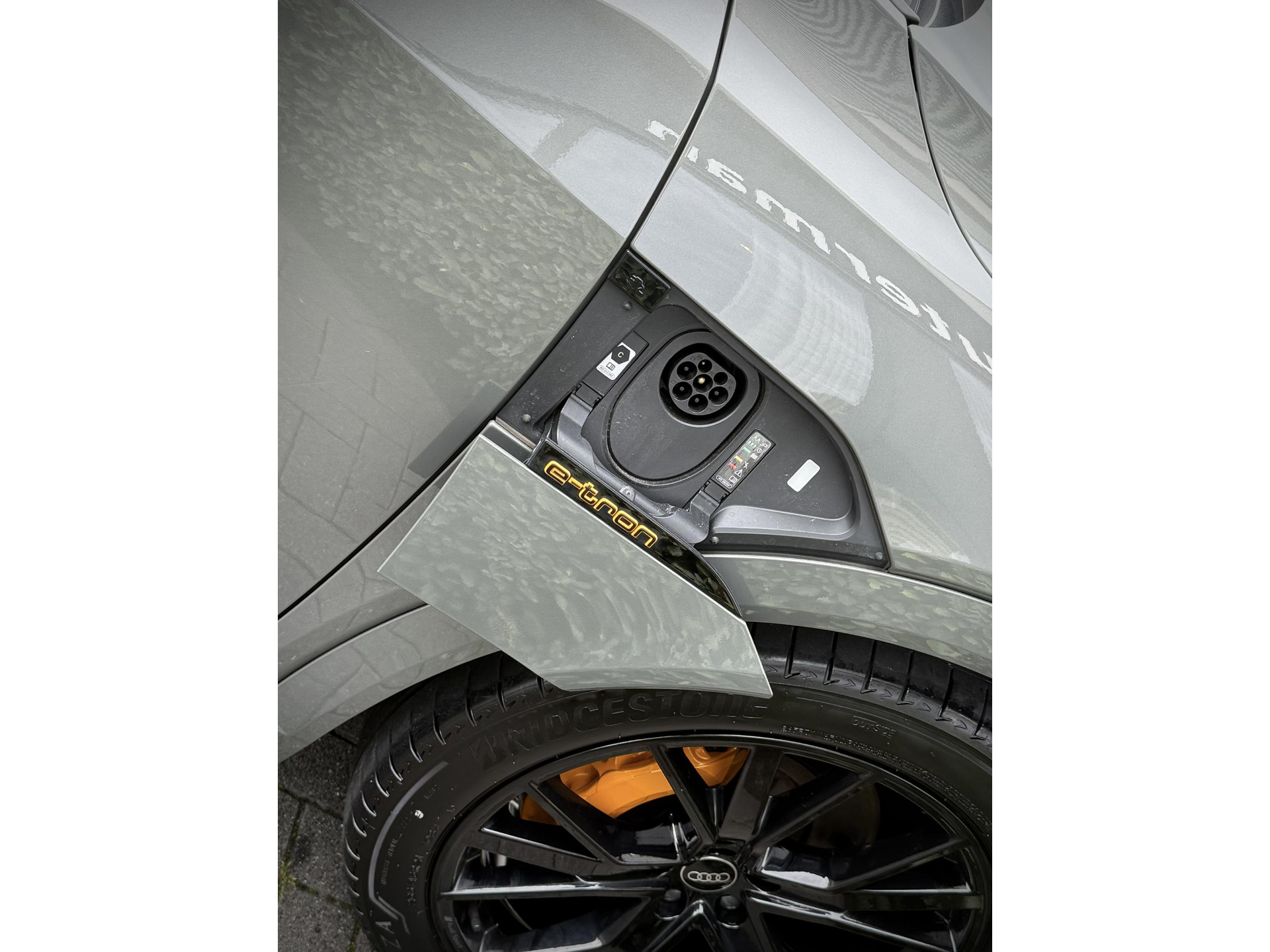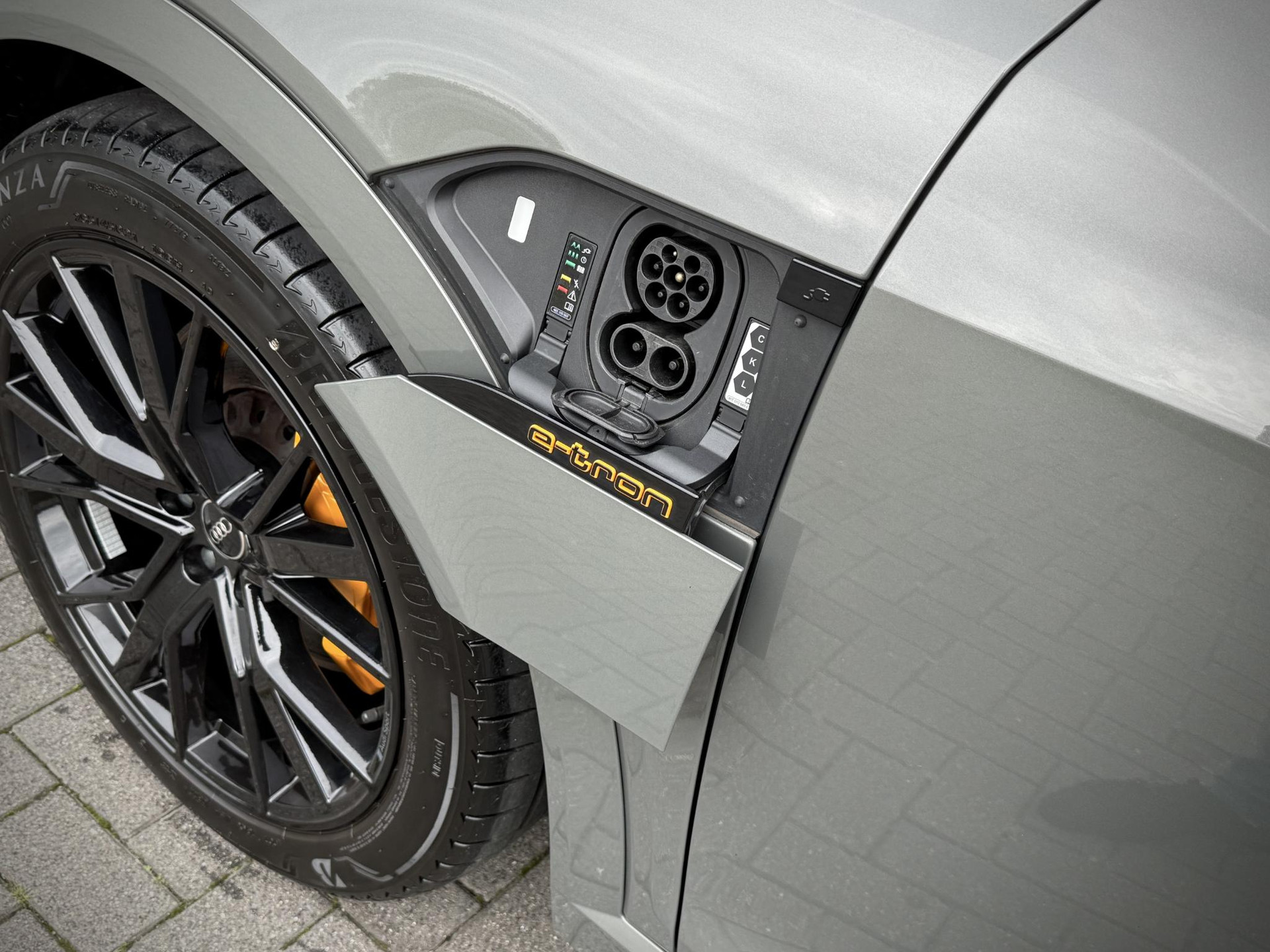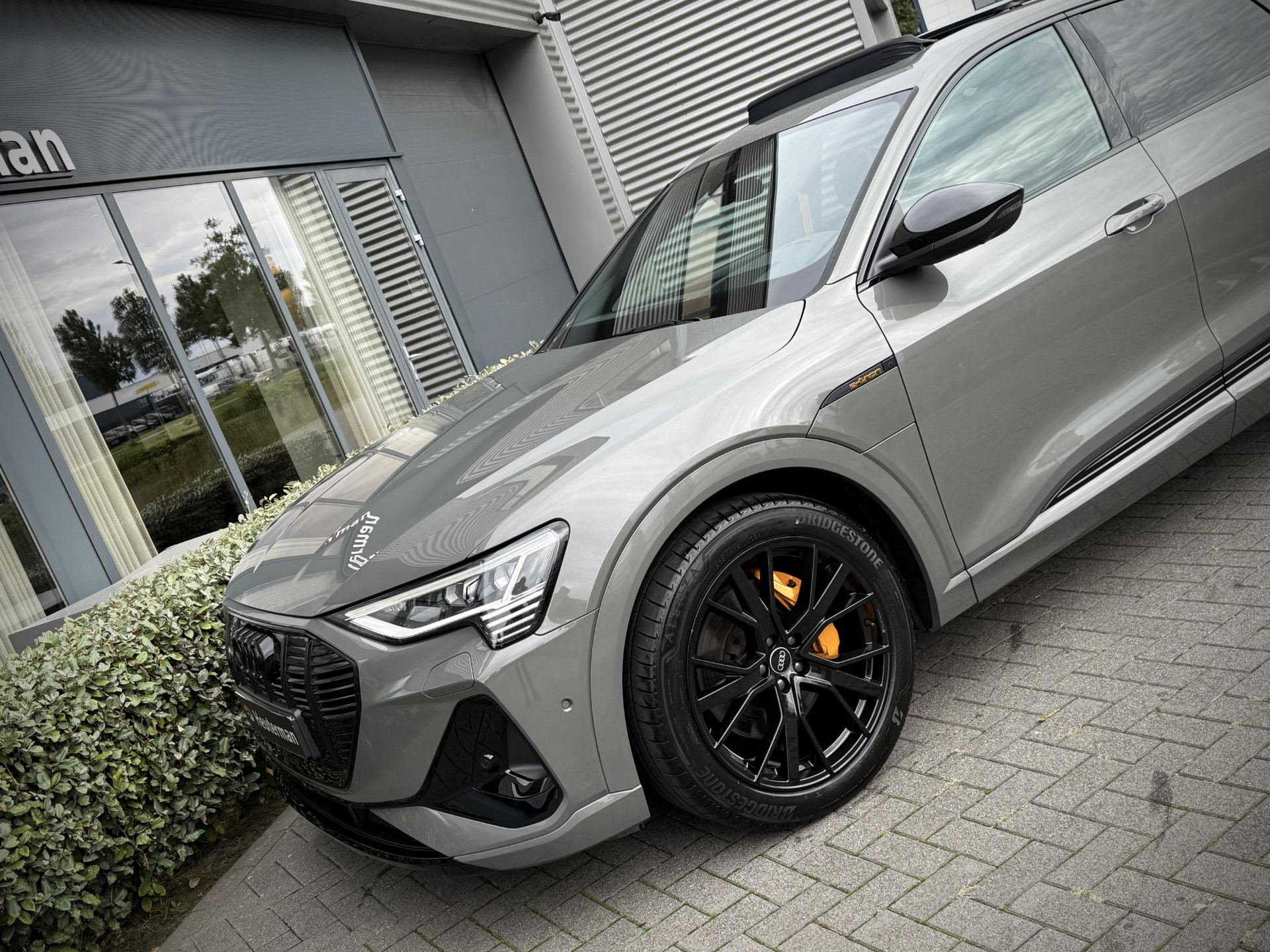 Alleen deze week *** van EUR 43.950 voor EUR 40.950,- *** In nieuwstaat verkerende en van eerste eigenaar afkomstig, dealer onderhouden en schadevrije Audi E-Tron 50 Quattro in unieke Black Edition uitvoering. Unieke kleur Chronos grijs. Deze uitvoering is voorzien van S line interieur, S line exterieur pakket, volledig soft lederen S-Line interieur, hoogglans zwart exterieur pakket, E-Tron Geel/ Oranje remklauwen/ gordels en sticksel naden, panoramadak, softclose portier sluiting, 21 inch hoogglans zwarte en originele S line velgen, privacy glas origineel af fabriek, LED verlichting voor en achter, originele afneembare trekhaak, Head Up display, Quattro vierwiel aandrijving, ACC radar cruise control, Luchtvering (hoogte instelbaar), Sfeerverlichting (kleur instelbaar), elec. verstelbare stoelen met geheugen, 2 x laadpoort rechts en links met snellaadfunctie, elec. achterklep, key less entry & go, Premium Audio/ Bang & Olufsen, 3 spaaks S line stuurwiel, dode hoek systeem, uitstaphulp, 360 graden camera met topview functie parkeer camera voor, achter en zijkant, stoelverwarming, etc. TOPSTAAT 75% wegenbelasting korting, lage bijtelling voor ondernemer, prijs is rijklaar incl BTW en 1 jaar algehele garantie. Audi Accu garantie t/m 3-2030!