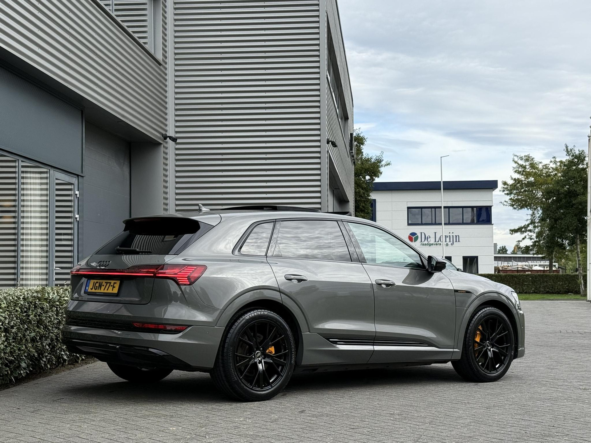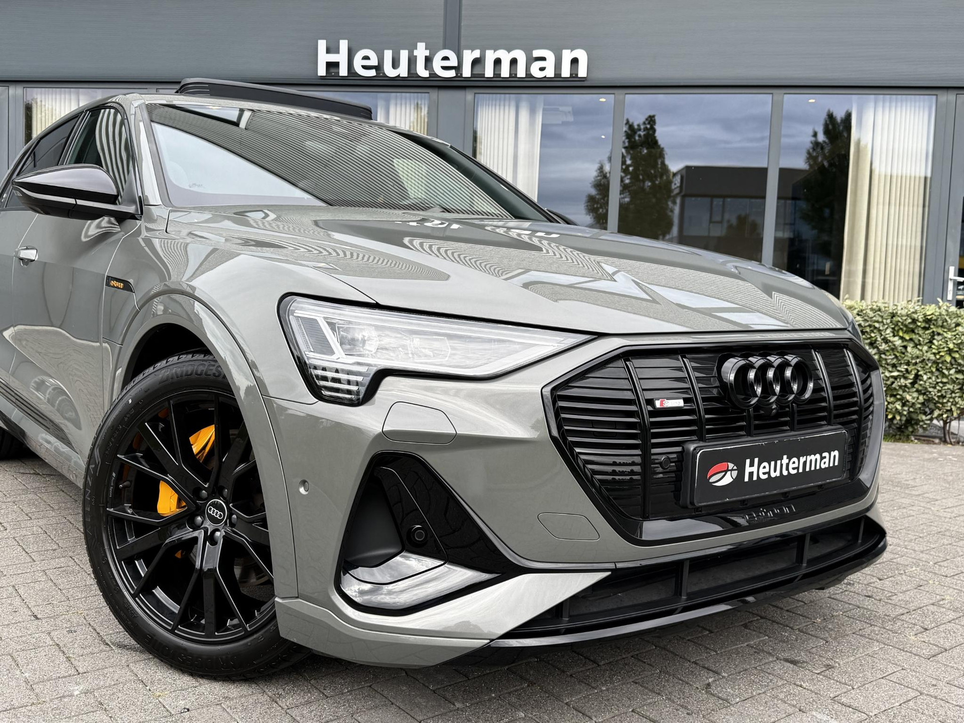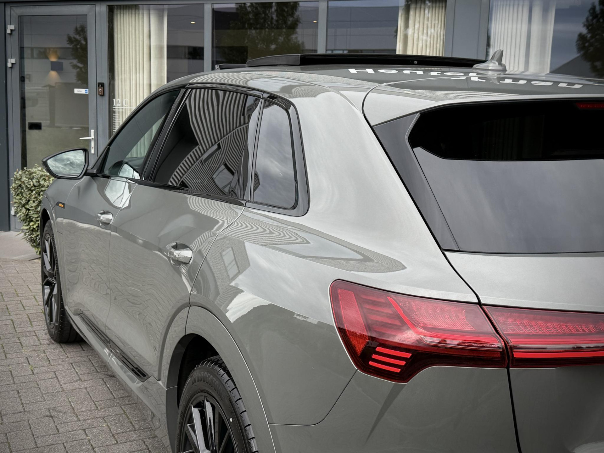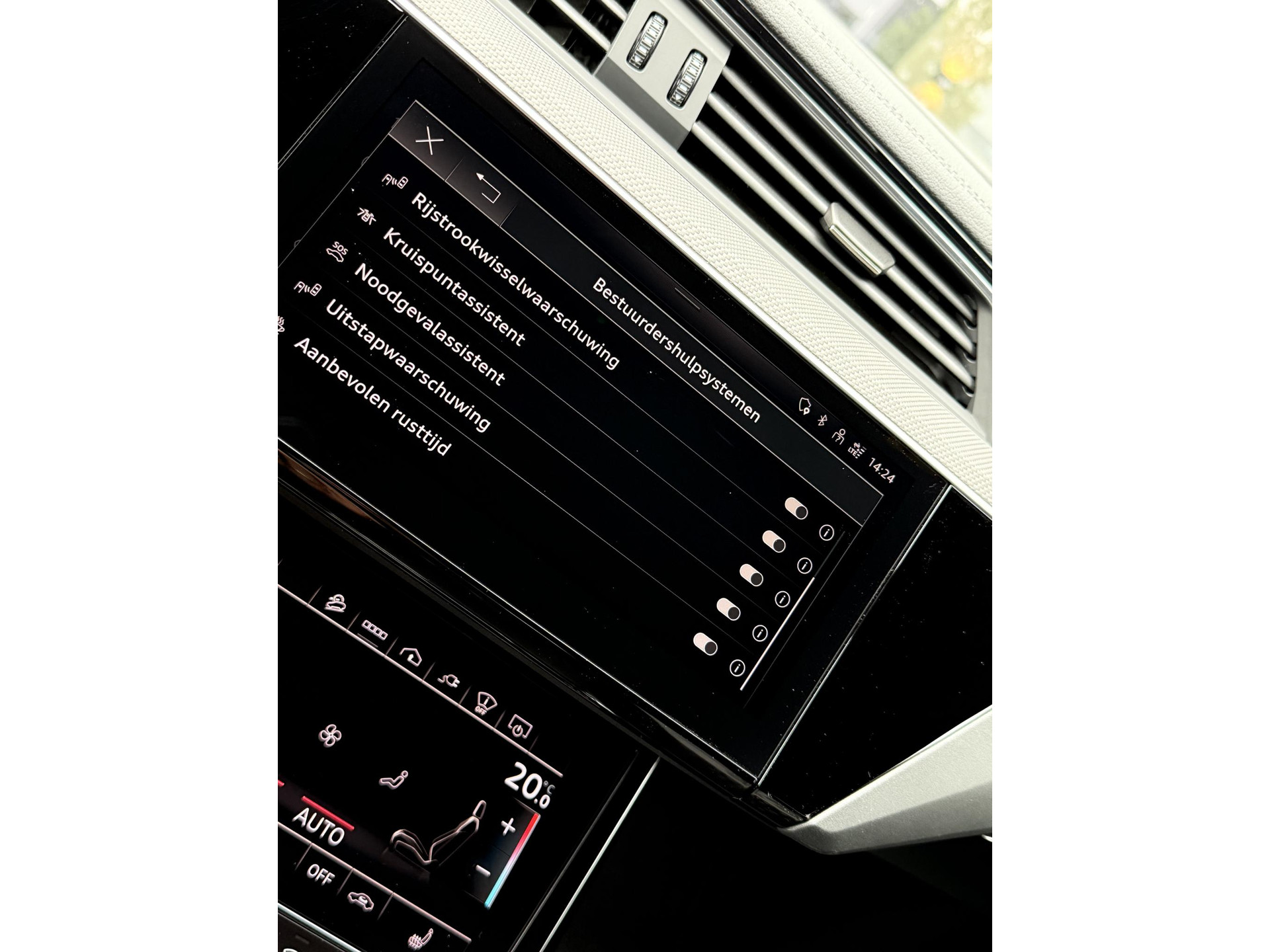 Alleen deze week *** van EUR 43.950 voor EUR 40.950,- *** In nieuwstaat verkerende en van eerste eigenaar afkomstig, dealer onderhouden en schadevrije Audi E-Tron 50 Quattro in unieke Black Edition uitvoering. Unieke kleur Chronos grijs. Deze uitvoering is voorzien van S line interieur, S line exterieur pakket, volledig soft lederen S-Line interieur, hoogglans zwart exterieur pakket, E-Tron Geel/ Oranje remklauwen/ gordels en sticksel naden, panoramadak, softclose portier sluiting, 21 inch hoogglans zwarte en originele S line velgen, privacy glas origineel af fabriek, LED verlichting voor en achter, originele afneembare trekhaak, Head Up display, Quattro vierwiel aandrijving, ACC radar cruise control, Luchtvering (hoogte instelbaar), Sfeerverlichting (kleur instelbaar), elec. verstelbare stoelen met geheugen, 2 x laadpoort rechts en links met snellaadfunctie, elec. achterklep, key less entry & go, Premium Audio/ Bang & Olufsen, 3 spaaks S line stuurwiel, dode hoek systeem, uitstaphulp, 360 graden camera met topview functie parkeer camera voor, achter en zijkant, stoelverwarming, etc. TOPSTAAT 75% wegenbelasting korting, lage bijtelling voor ondernemer, prijs is rijklaar incl BTW en 1 jaar algehele garantie. Audi Accu garantie t/m 3-2030!