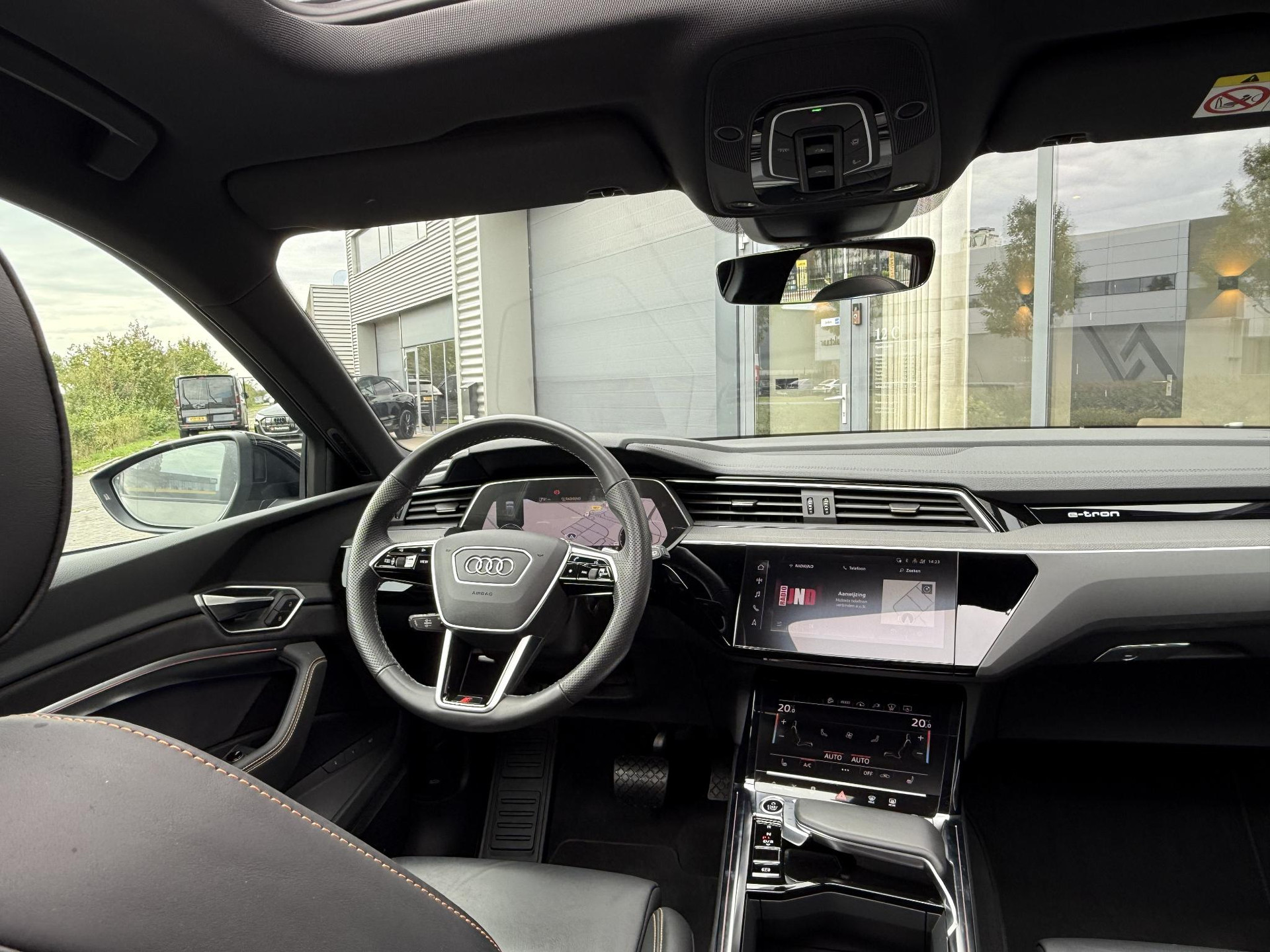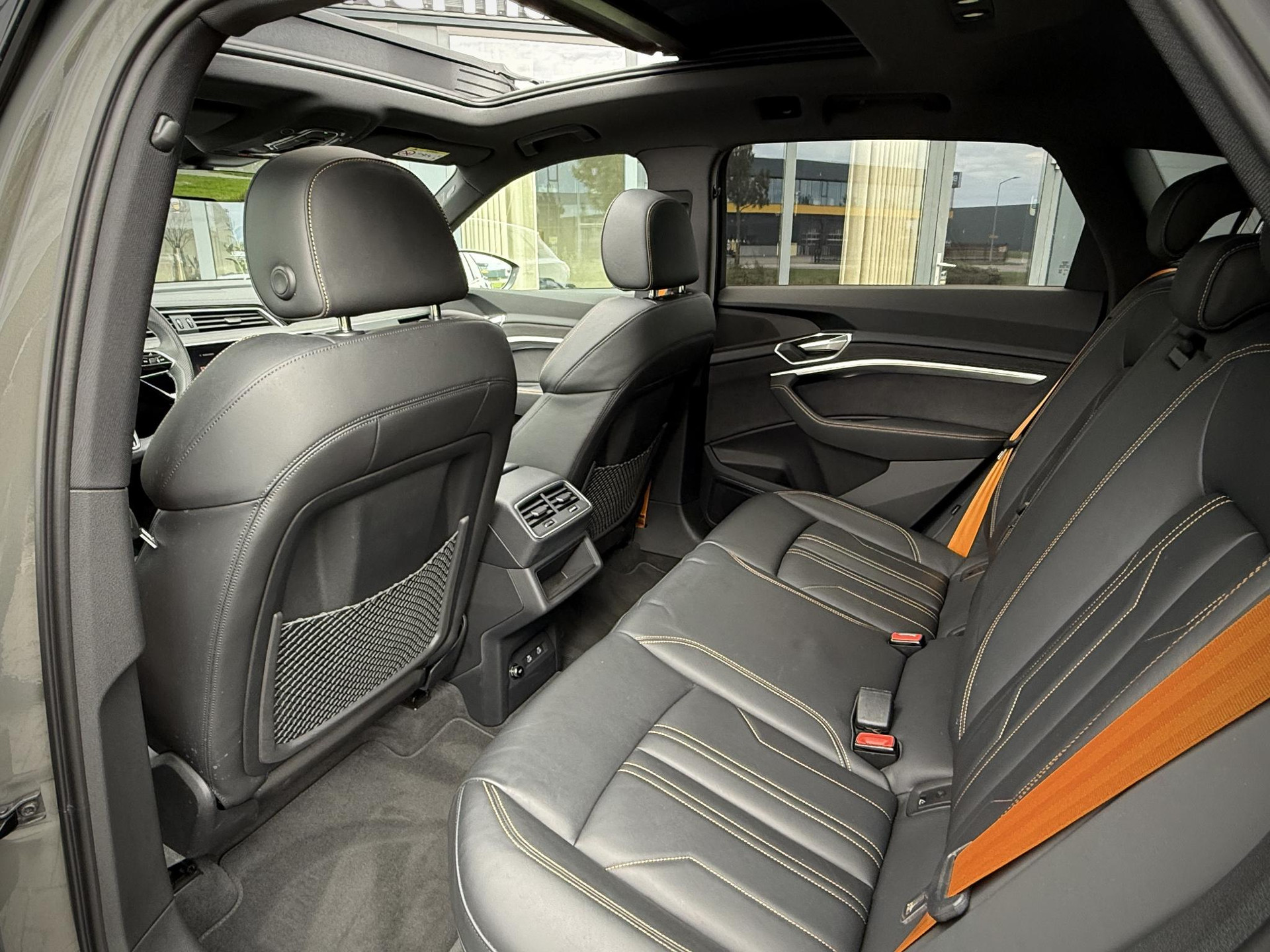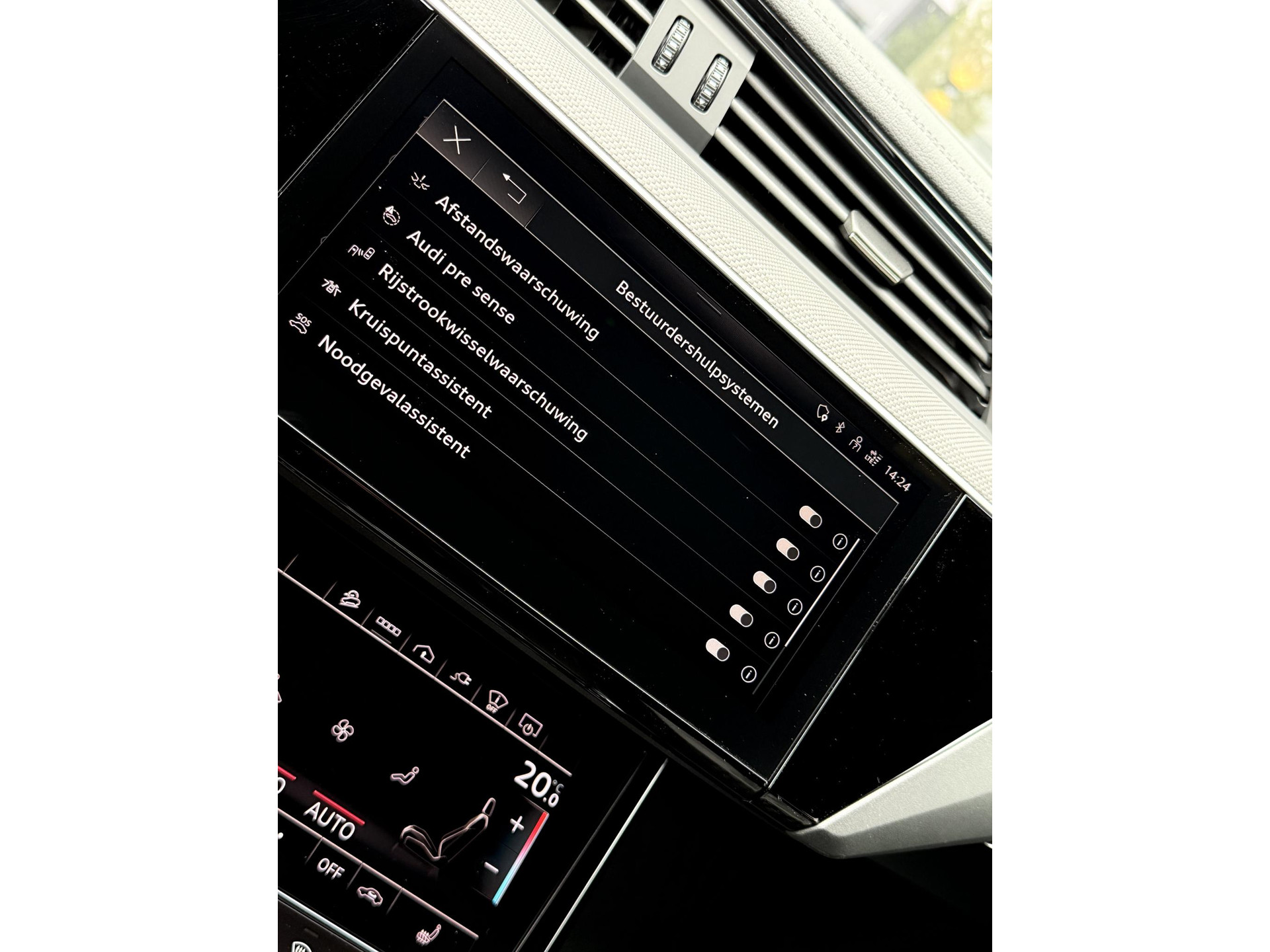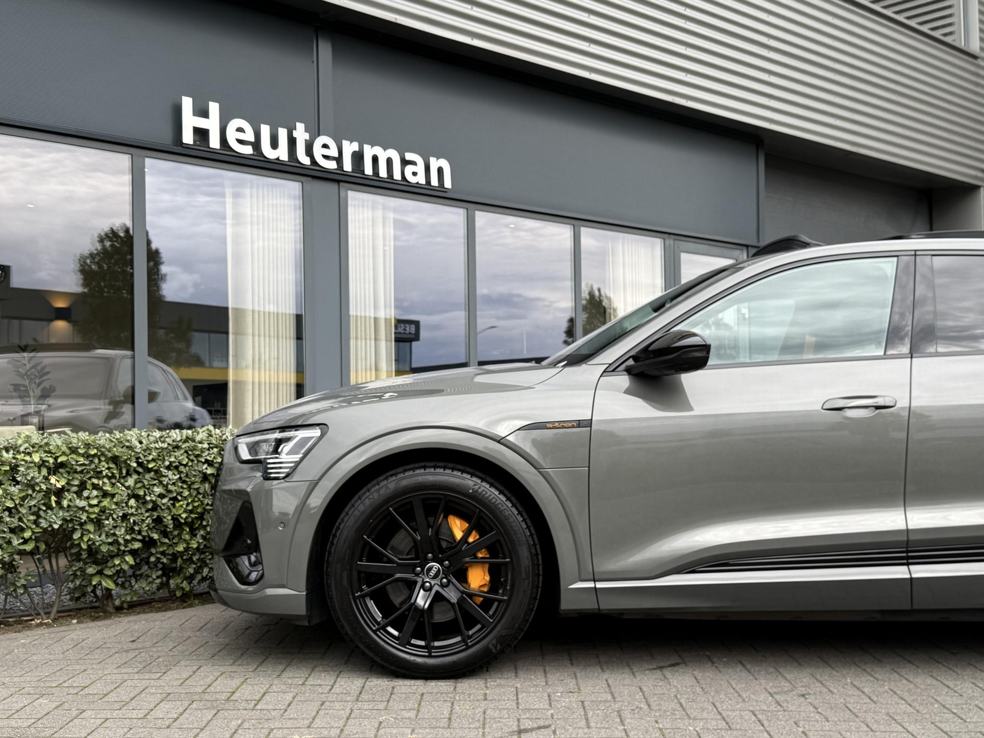 Alleen deze week *** van EUR 43.950 voor EUR 40.950,- *** In nieuwstaat verkerende en van eerste eigenaar afkomstig, dealer onderhouden en schadevrije Audi E-Tron 50 Quattro in unieke Black Edition uitvoering. Unieke kleur Chronos grijs. Deze uitvoering is voorzien van S line interieur, S line exterieur pakket, volledig soft lederen S-Line interieur, hoogglans zwart exterieur pakket, E-Tron Geel/ Oranje remklauwen/ gordels en sticksel naden, panoramadak, softclose portier sluiting, 21 inch hoogglans zwarte en originele S line velgen, privacy glas origineel af fabriek, LED verlichting voor en achter, originele afneembare trekhaak, Head Up display, Quattro vierwiel aandrijving, ACC radar cruise control, Luchtvering (hoogte instelbaar), Sfeerverlichting (kleur instelbaar), elec. verstelbare stoelen met geheugen, 2 x laadpoort rechts en links met snellaadfunctie, elec. achterklep, key less entry & go, Premium Audio/ Bang & Olufsen, 3 spaaks S line stuurwiel, dode hoek systeem, uitstaphulp, 360 graden camera met topview functie parkeer camera voor, achter en zijkant, stoelverwarming, etc. TOPSTAAT 75% wegenbelasting korting, lage bijtelling voor ondernemer, prijs is rijklaar incl BTW en 1 jaar algehele garantie. Audi Accu garantie t/m 3-2030!