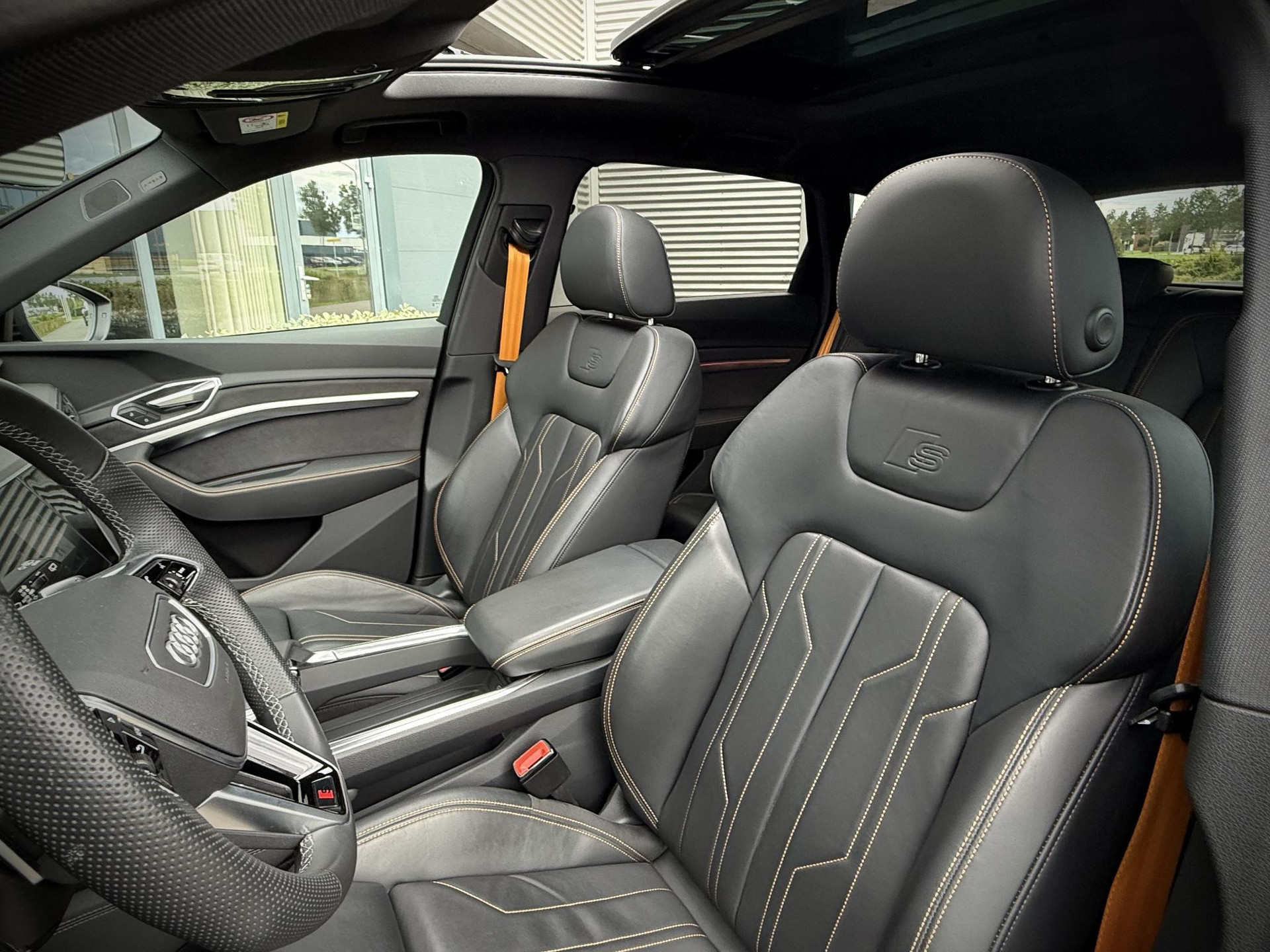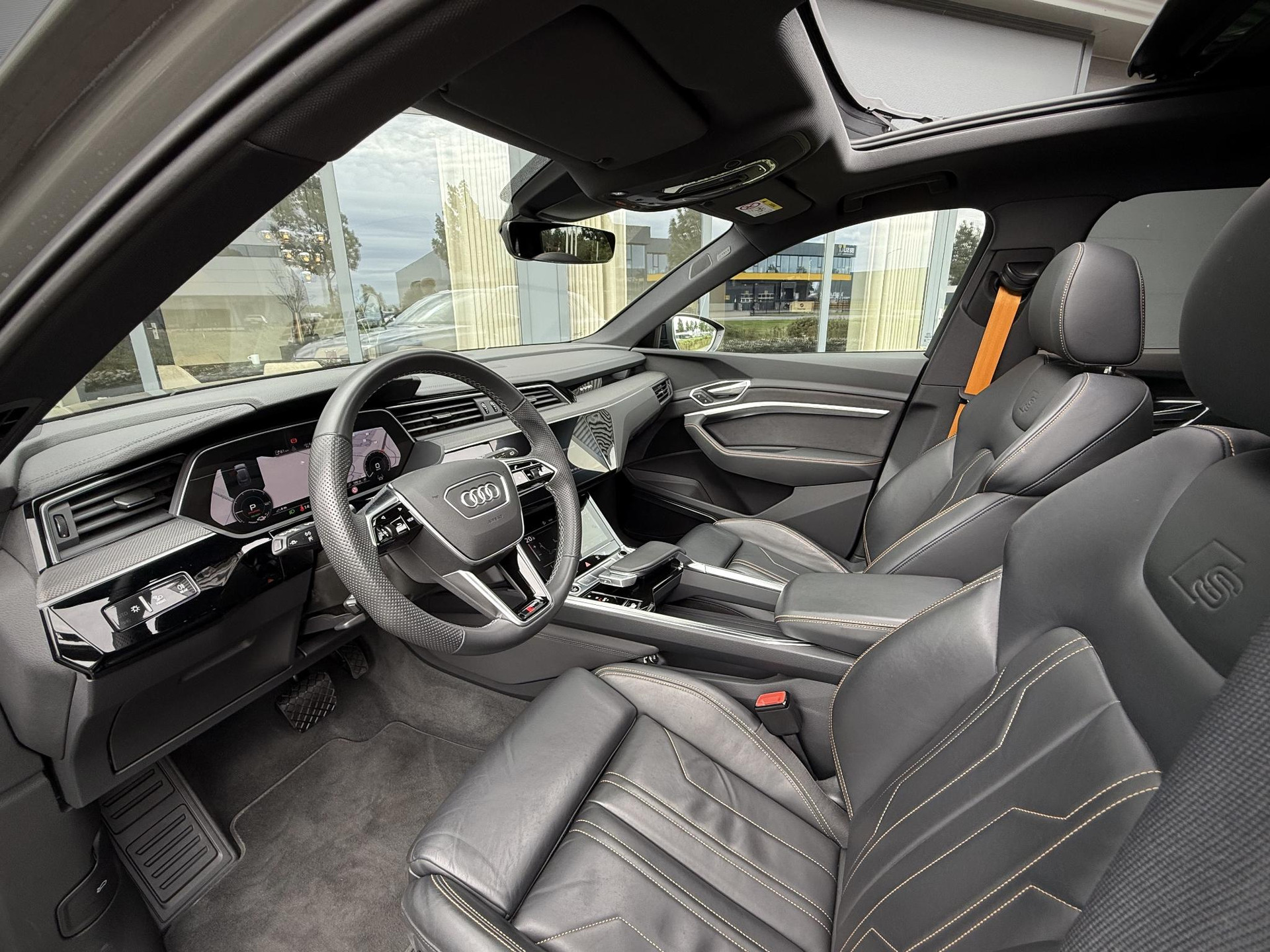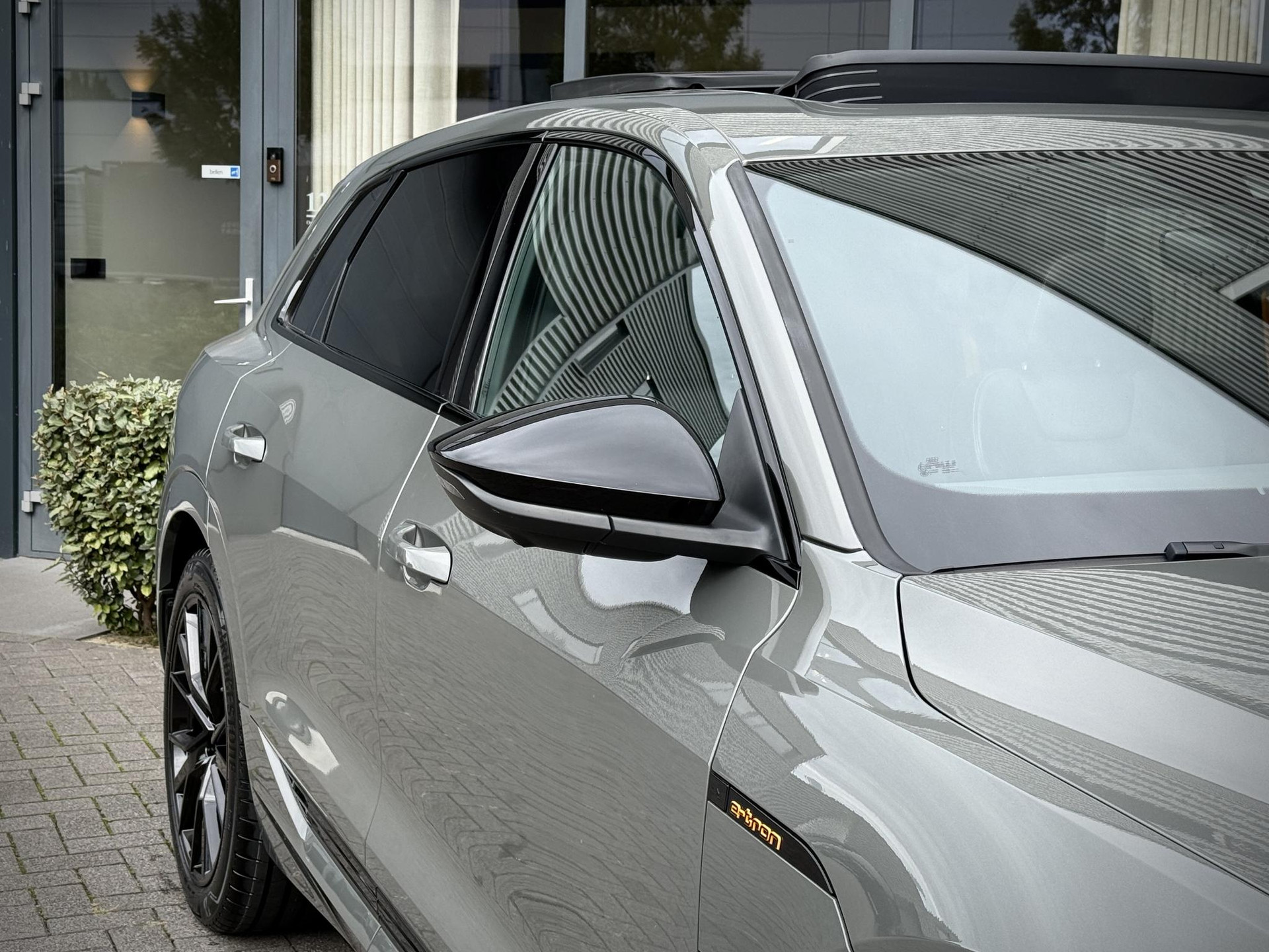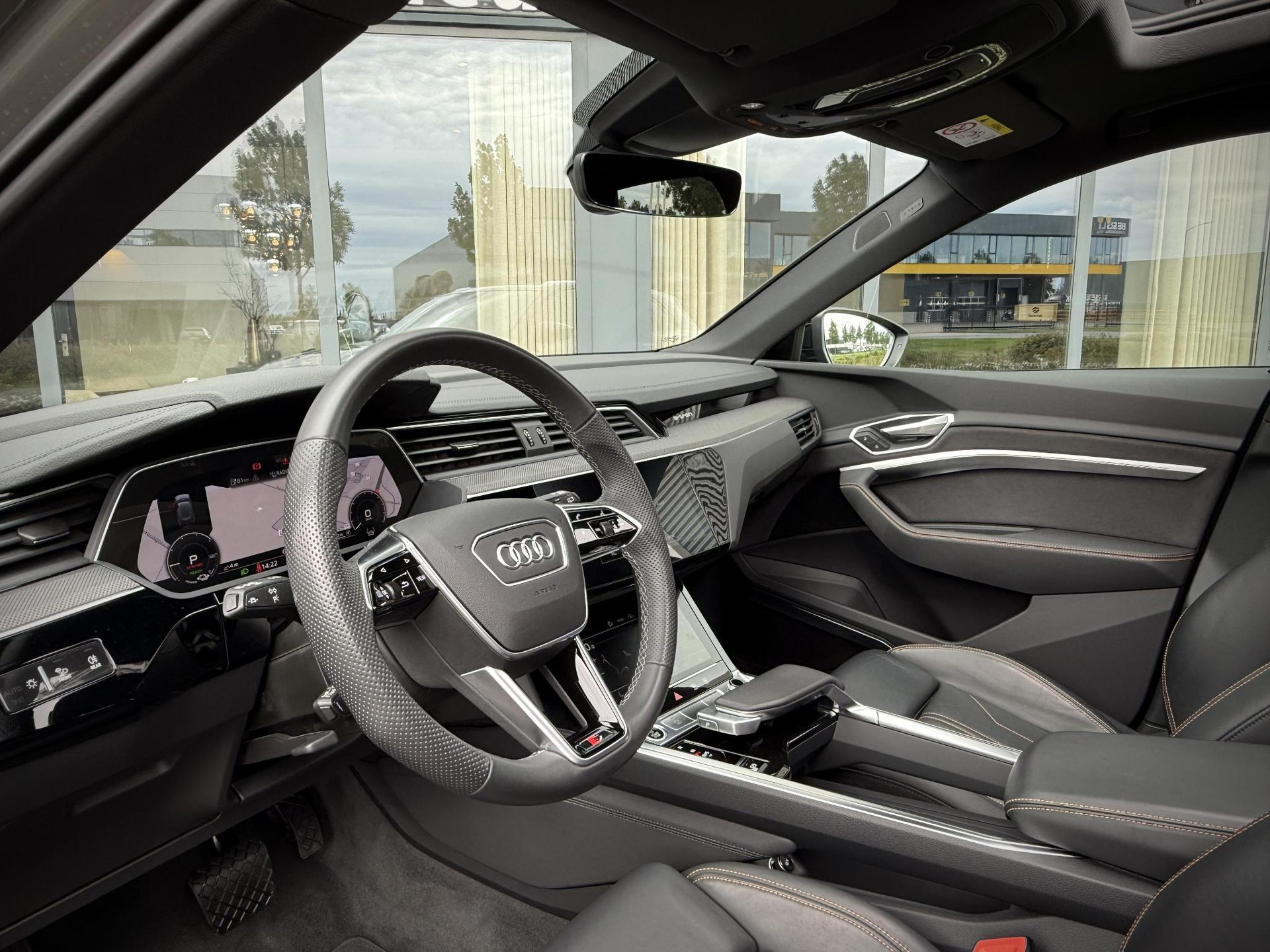 Alleen deze week *** van EUR 43.950 voor EUR 40.950,- *** In nieuwstaat verkerende en van eerste eigenaar afkomstig, dealer onderhouden en schadevrije Audi E-Tron 50 Quattro in unieke Black Edition uitvoering. Unieke kleur Chronos grijs. Deze uitvoering is voorzien van S line interieur, S line exterieur pakket, volledig soft lederen S-Line interieur, hoogglans zwart exterieur pakket, E-Tron Geel/ Oranje remklauwen/ gordels en sticksel naden, panoramadak, softclose portier sluiting, 21 inch hoogglans zwarte en originele S line velgen, privacy glas origineel af fabriek, LED verlichting voor en achter, originele afneembare trekhaak, Head Up display, Quattro vierwiel aandrijving, ACC radar cruise control, Luchtvering (hoogte instelbaar), Sfeerverlichting (kleur instelbaar), elec. verstelbare stoelen met geheugen, 2 x laadpoort rechts en links met snellaadfunctie, elec. achterklep, key less entry & go, Premium Audio/ Bang & Olufsen, 3 spaaks S line stuurwiel, dode hoek systeem, uitstaphulp, 360 graden camera met topview functie parkeer camera voor, achter en zijkant, stoelverwarming, etc. TOPSTAAT 75% wegenbelasting korting, lage bijtelling voor ondernemer, prijs is rijklaar incl BTW en 1 jaar algehele garantie. Audi Accu garantie t/m 3-2030!