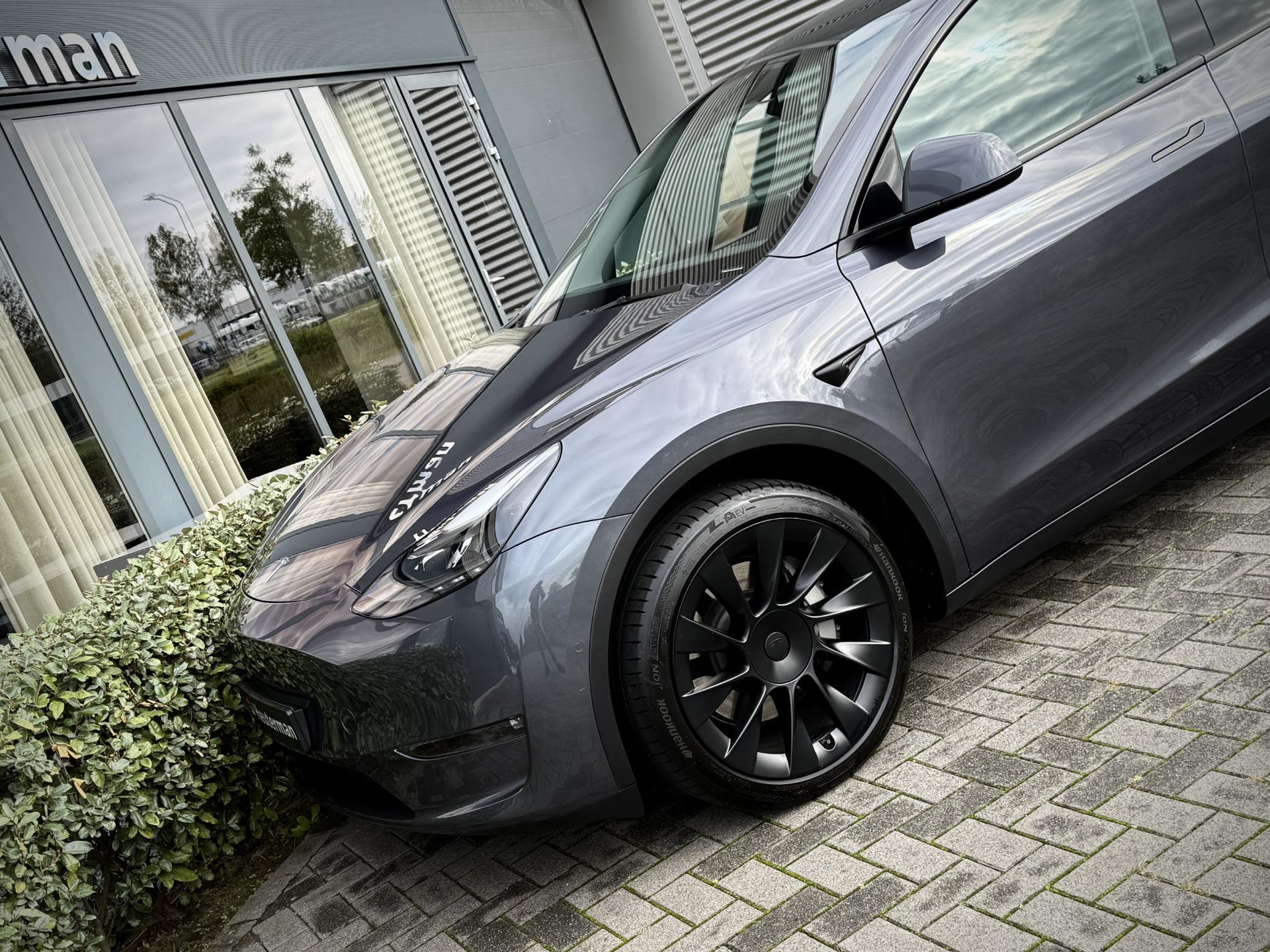 In nieuwstaat verkerende en rechtstreeks van eerste eigenaar afkomstig Tesla Model Y Long Range All Wheel Drive. Schade vrij niet in gerookt en voorzien van panoramadak, elec. verstelbare stoelen met geheugen functie, elec. achterklep, 20 inch induction velgen, zwart optiek exterieur, privacy glas achter, autopilot met zelf rijden functie, lane assist, radar cruise control, achteruitrijcamera en camera zijkant voor dode hoek, easy entry, sleutelloos starten middels Tesla app, dashcam, etc. ruim 500 km range, SOH 96%, 75% wegenbelasting korting, lage bijtelling voor ondernemer, prijs is rijklaar incl BTW, auto nog voorzien van Tesla garantie op accu en aandrijflijn en 1 jaar algehele garantie vanuit ons.