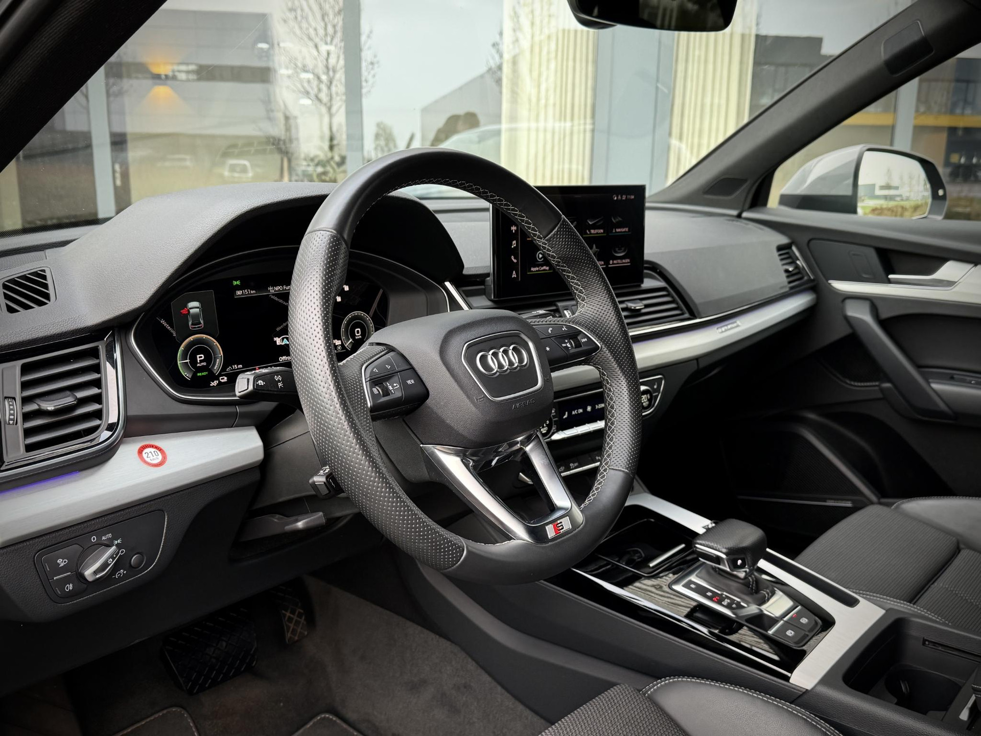 In nieuwstaat verkerende, van eerste eigenaar afkomstige, schadevrij en dealer onderhouden Audi Q5 Plug in Hybride. Voorzien van Quattro vierwielaandrijving, S line interieur, S line exterieur pakket, zwart optiek exterieur pakket met hoogglans zwarte details, OLED matrix LED verlichting, sfeerverlichting (kleur instelbaar), privacy glas af fabriek, elec. achterklep, stoel- en achterbank verwarming, 4 zone climate control, groot beeld MMI, Apple Car Play, draadloze telefoonlader, S line stuurwiel met schakelflippers, virtual cockpit, etc. TOPSTAAT! Voorzien van nieuwe 22 inch hoogglans zwarte performance velgen met nieuwe banden. Prijs is inclusief BTW en rijklaar.