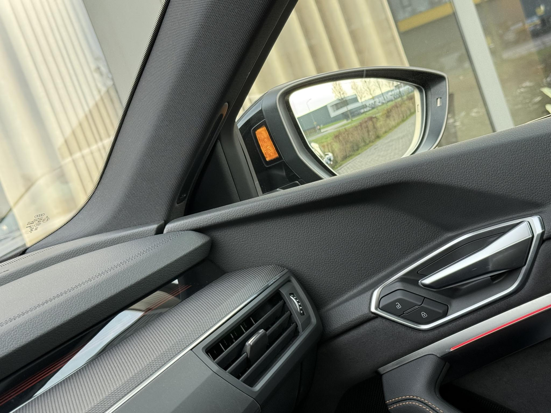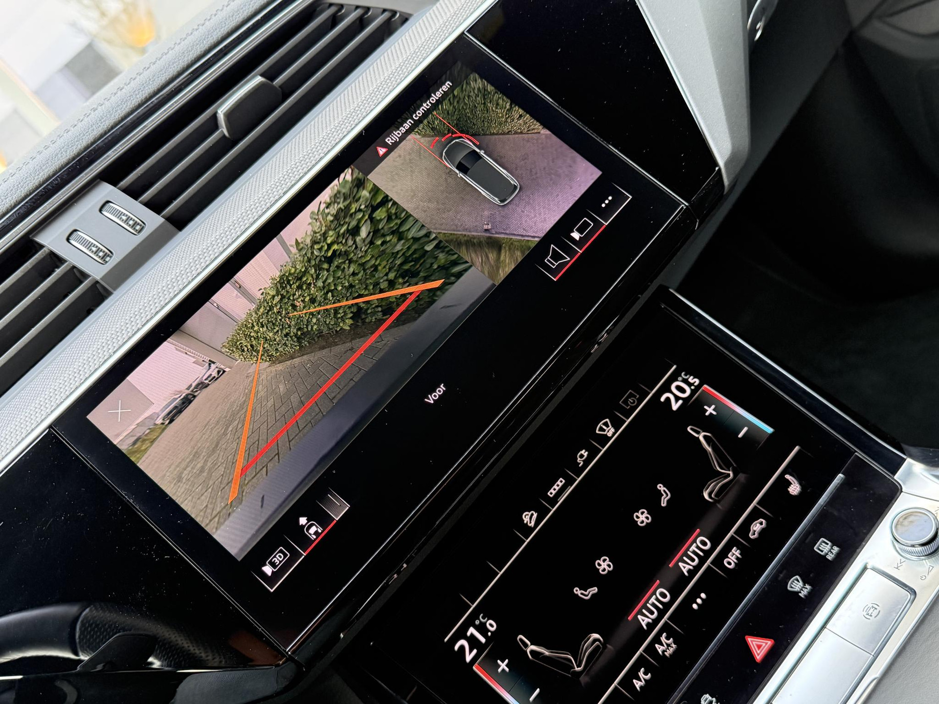 Alleen deze week *** van EUR 40.950,- voor EUR 39.950,- *** In zeer nette staat verkerende, van eerste eigenaar afkomstige Audi E-Tron Quattro. Rechtstreeks bij Audi Duitsland afkomstig, niet in gerookt en uitgevoerd in unieke Black Edition Uitvoering! Voorzien van S line interieur en S line exterieur, Black optiek exterieur pakket met hoogglans zwarte details en 21 inch hooglans zwarte S line velgen, E-Tron geel/ oranje remklauwen/ sitcksels en gordels, volledig lederen bekleding, head up display, dodehoek assistent, rondomzicht camera met 360gr en topview functie, stoel verwarming, stuurwiel verwarming, achterbank verwarming,key less entry en go, 2 x laadpoort rechts en links met snellaad functie, S line stoelen met comfort hoofdsteunen, privacy glas af fabriek, sfeerverlichting (naar kleur instelbaar), Quattro vierwielaandrijving, Luchtvering (hoogte instelbaar), stoelverwarming, snellaad functie, elec. achterklep, Matrix LED Verlichting, zwarte hemelbekleding, 2 x laadkabel aanwezig, 2 x sleutel, historie aanwezig, Audi accu garantie t/m 7 - 2030, 30% wegenbelasting korting, prijs is rijklaar incl BTW en 1 jaar volledige garantie. TOPSTAAT!