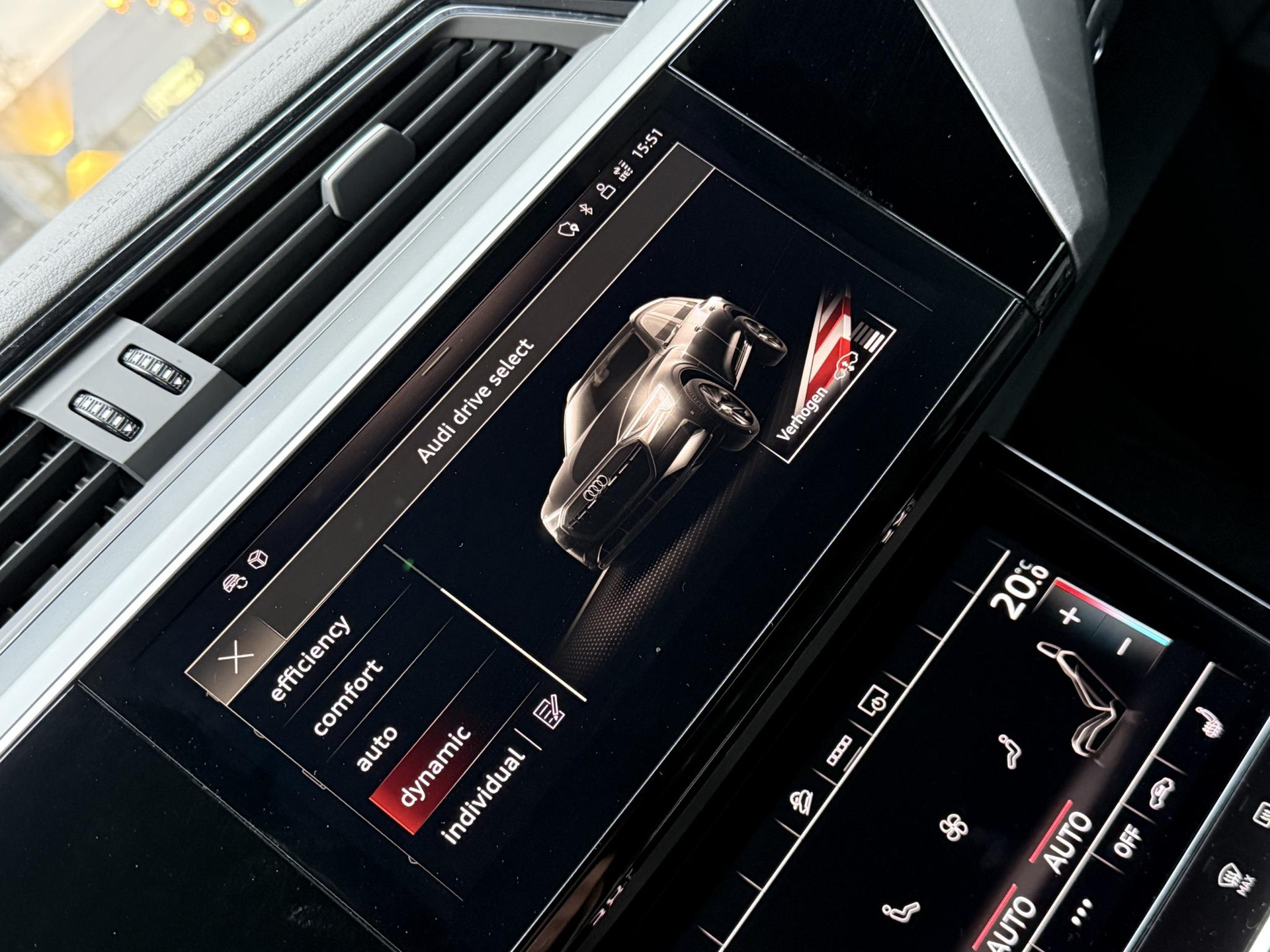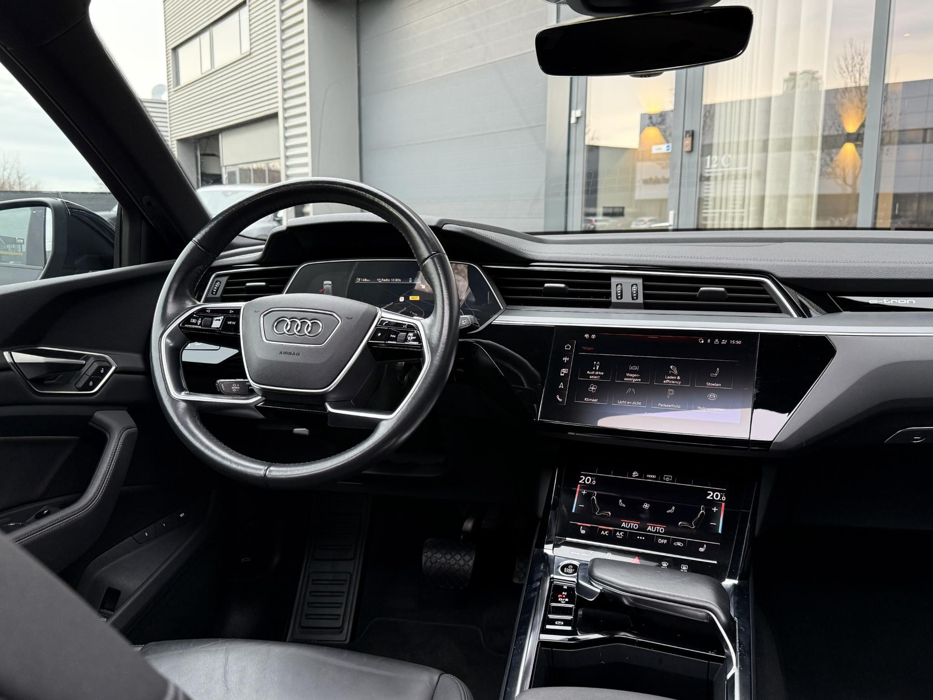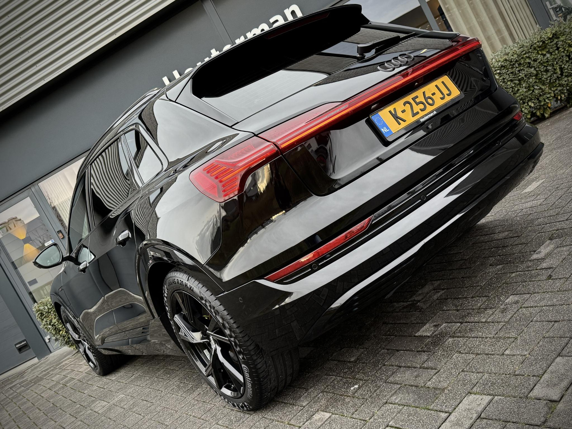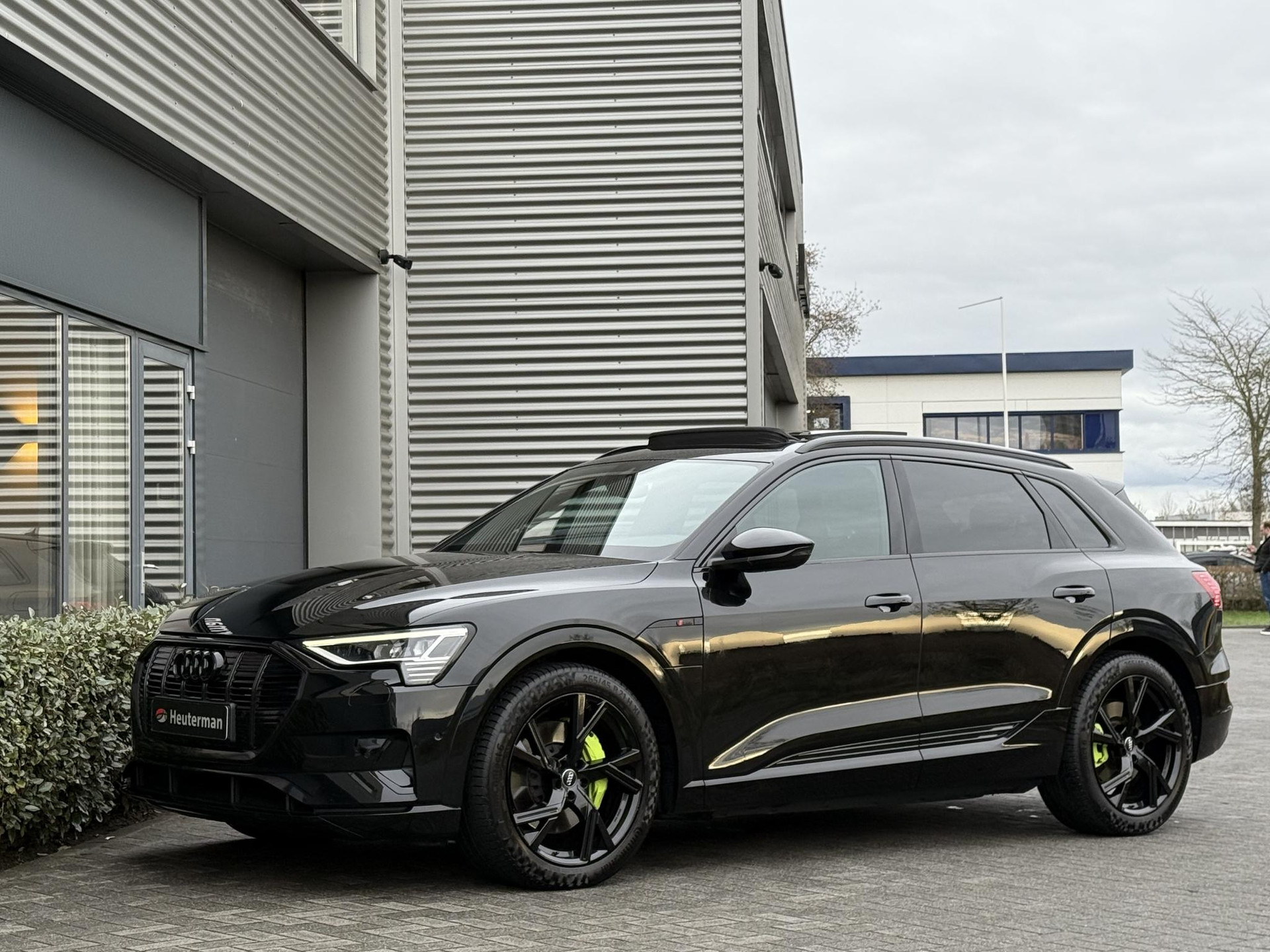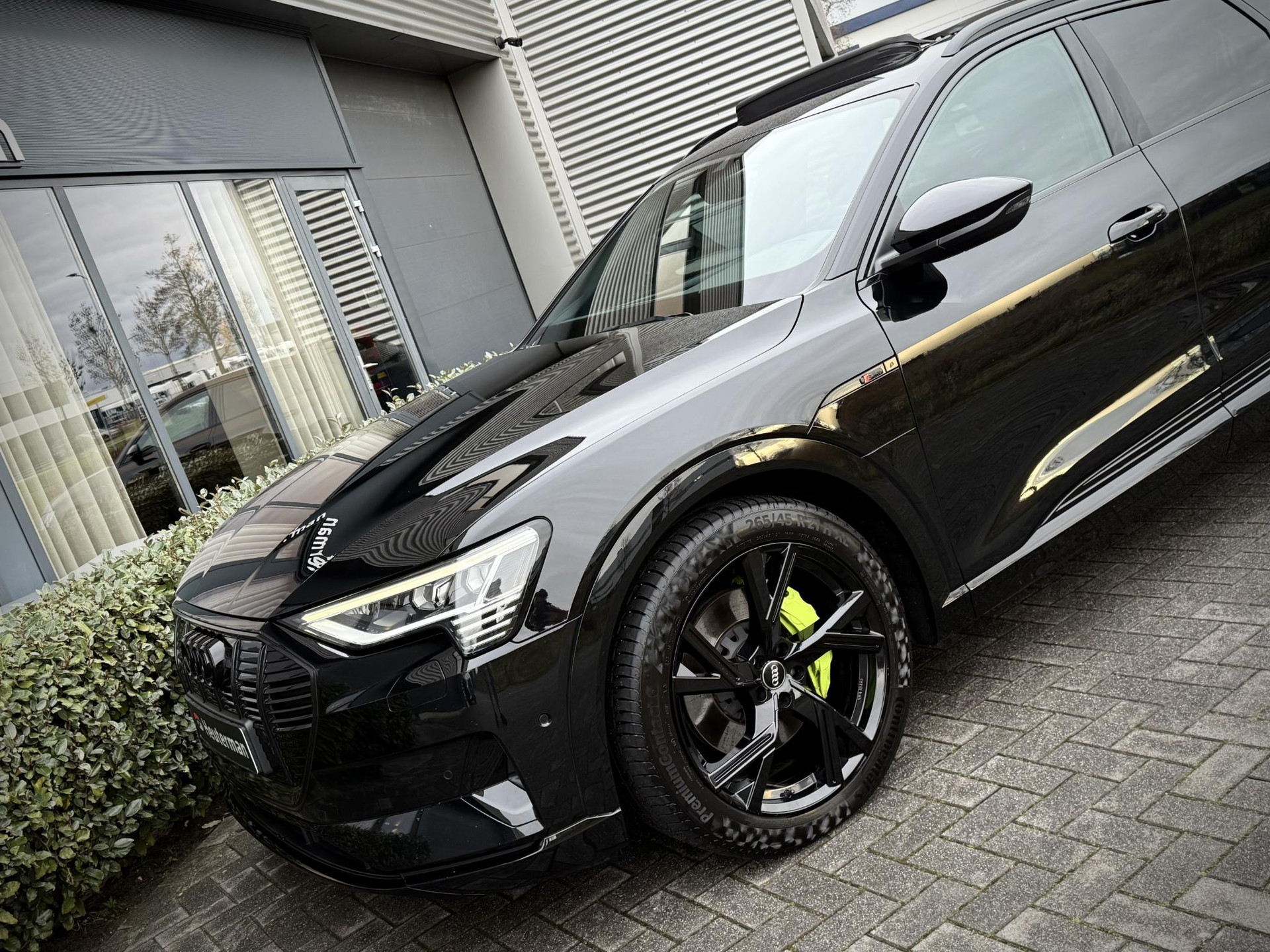 Van eerste eigenaar afkomstige, volledig Audi Dealer onderhouden en in zeer nette staat verkerende Audi E-Tron Quattro Black Edition. Voorzien van zwart optiek exterieur, 21 inch hoogglans zwarte performance velgen, parkercamera, luchtvering (hoogte instelbaar), Quattro vierwielaandrijving, ACC cruise control met afstandsradar, elec. achterklep, privacy glas, lane assist, volledig lederen bekleding, elec. verstelbare stoelen met memory functie, Apple CarPlay, panoramadak, LED verlichting voor en achter, Porsche geel/ groene remklauwen, 30% wegenbelasting korting, Audi Accu garantie t/m 12/2028 of 160.000km, prijs is rijklaar inclusief BTW en 1 jaar algehele garantie.