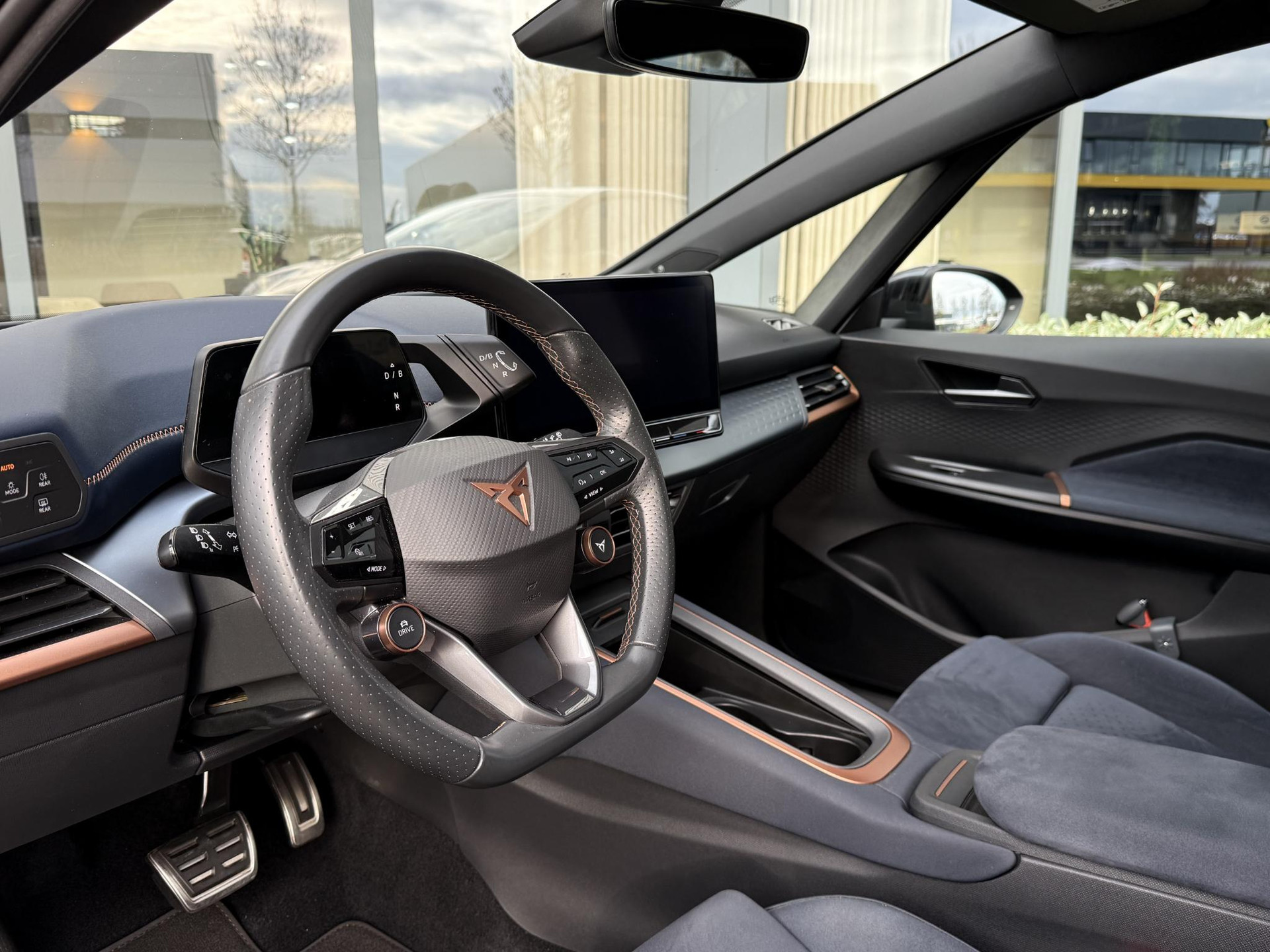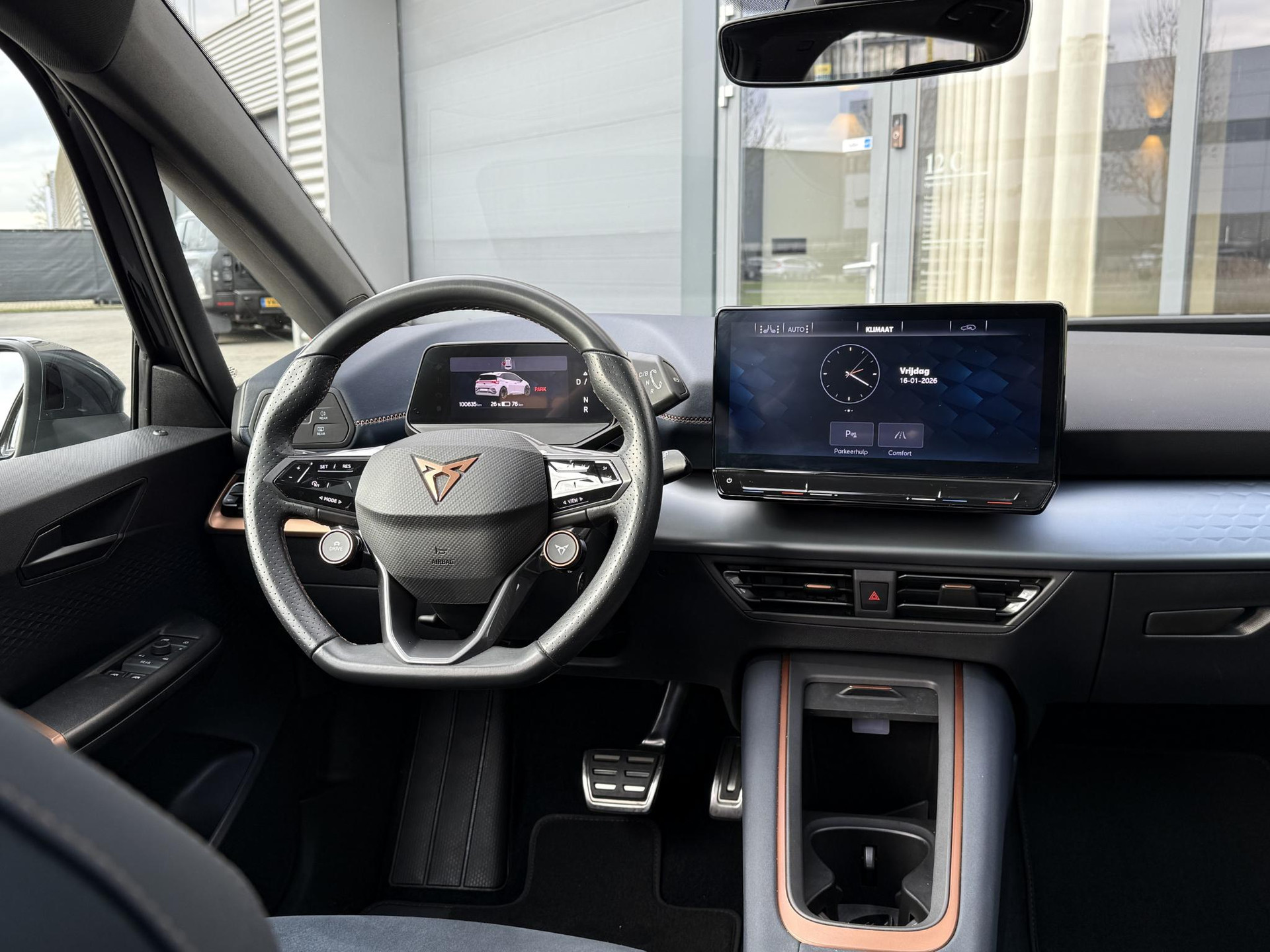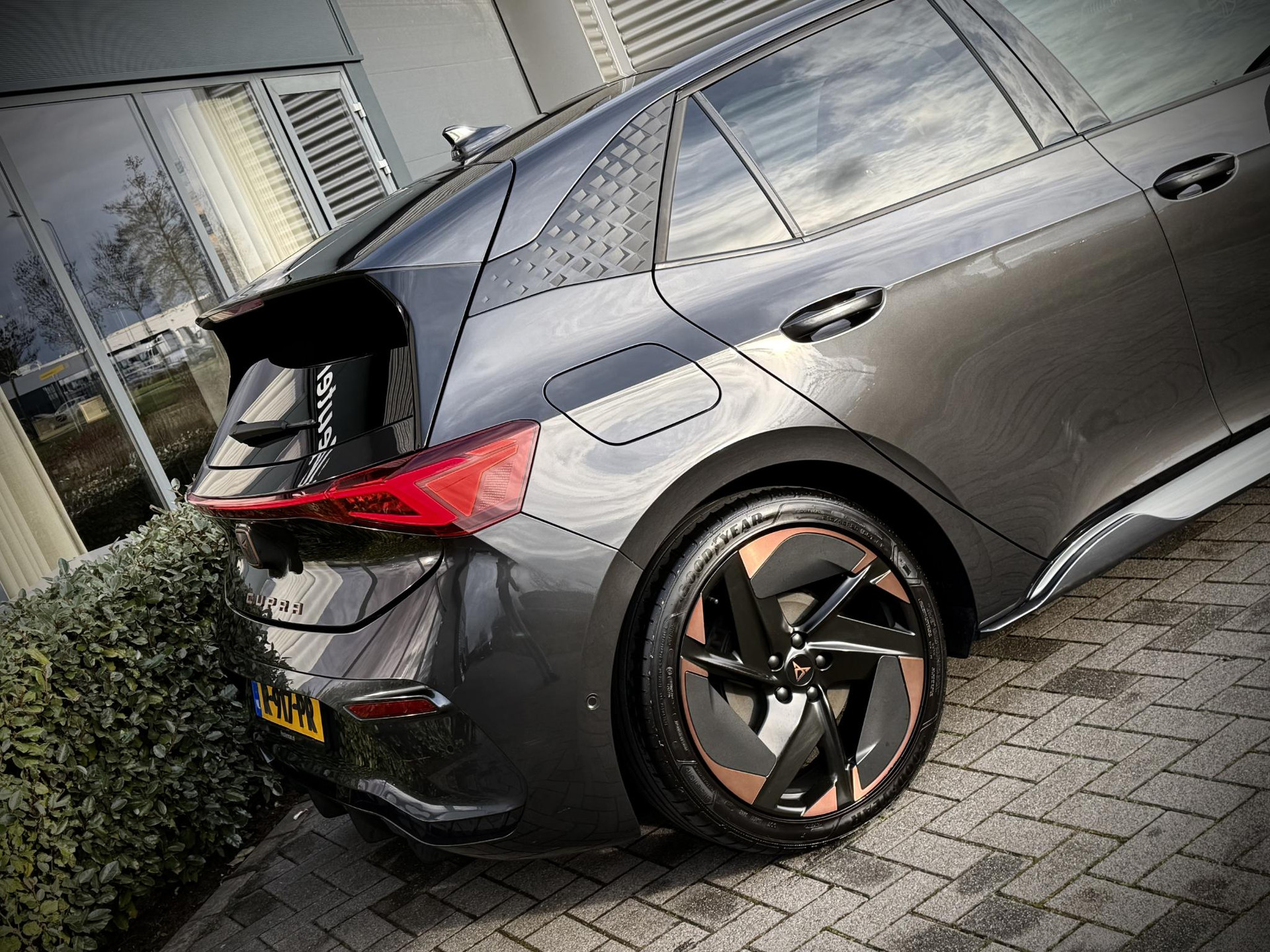 Van eerste eigenaar afkomstige, in zeer nette staat verkerende, en zeer rijk uitgeruste Cupra Born in Copper Edition. Voorzien van panoramadak, stoel massage, dode hoek assistent, afneembare trekaak, stoelverwarming, parkeer camera met automatisch inparkeer functie, stoelverwarming, privacy glas, draadloze telefoonlader etc. Dealer onderhouden, prijs is rijklaar incl 1 jaar algehele garantie. Cupra accu garantie t/m 11/2030 of 160.000 km.