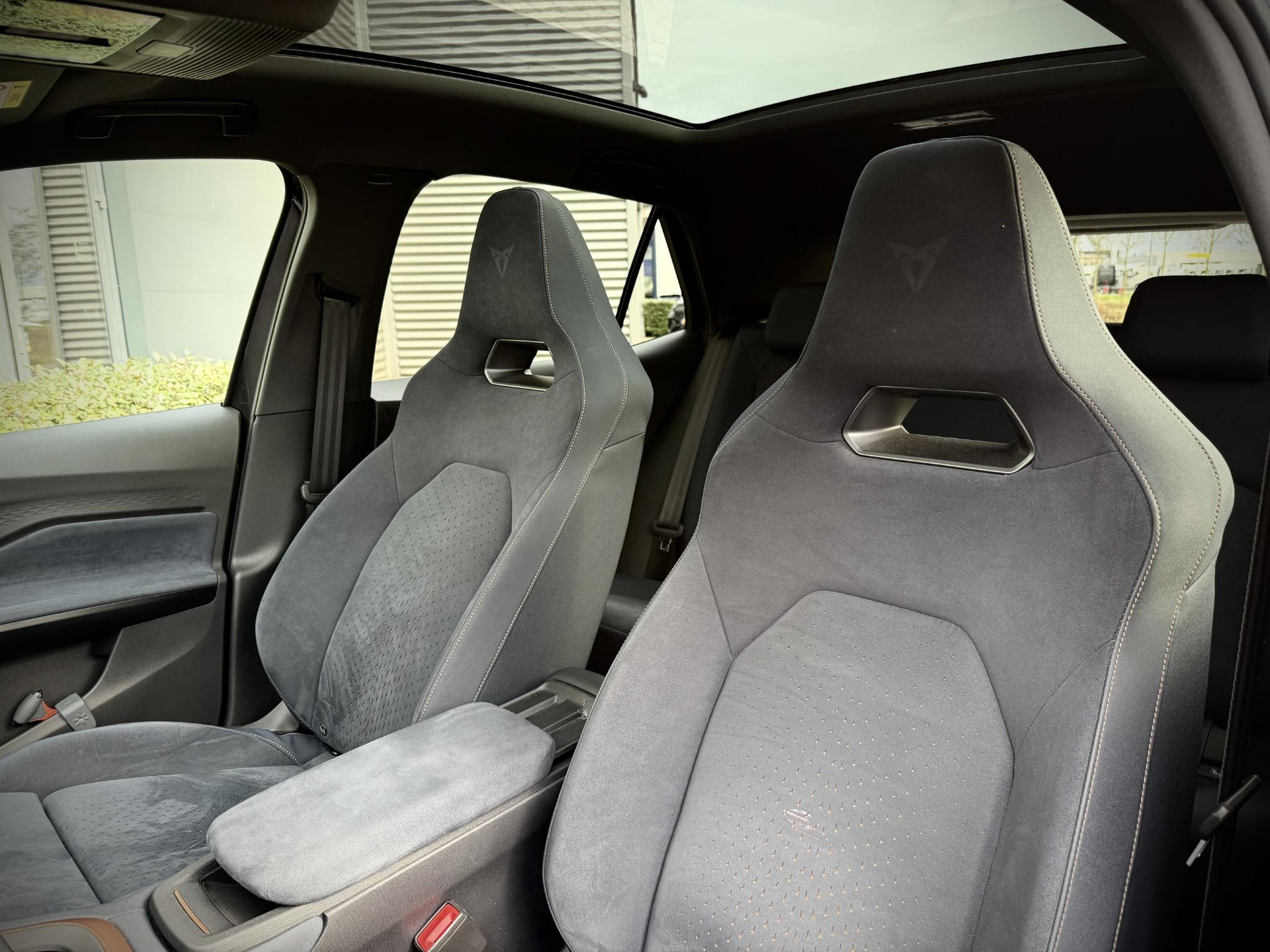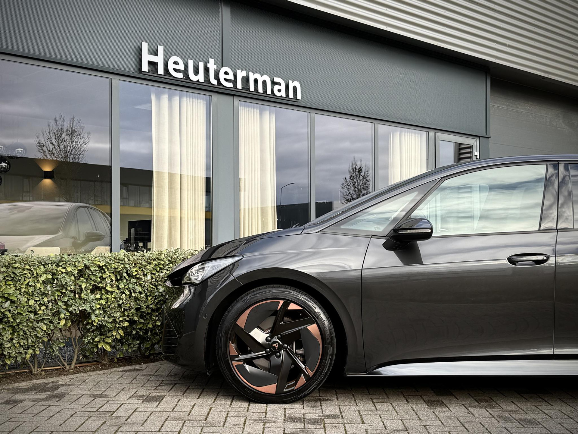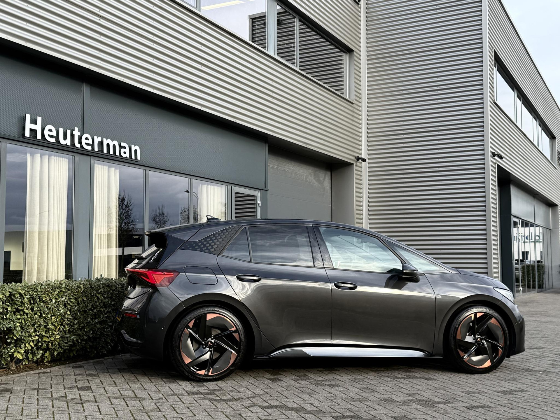 Van eerste eigenaar afkomstige, in zeer nette staat verkerende, en zeer rijk uitgeruste Cupra Born in Copper Edition. Voorzien van panoramadak, stoel massage, dode hoek assistent, afneembare trekaak, stoelverwarming, parkeer camera met automatisch inparkeer functie, stoelverwarming, privacy glas, draadloze telefoonlader etc. Dealer onderhouden, prijs is rijklaar incl 1 jaar algehele garantie. Cupra accu garantie t/m 11/2030 of 160.000 km.