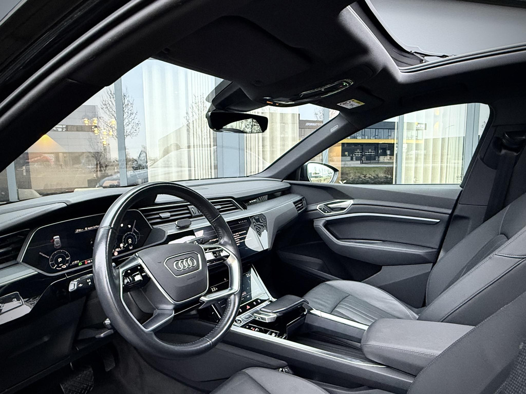 Origineel Nederlands geleverde, van eerste eigenaar afkomstige, dealer onderhouden en schade vrije Audi E-Tron 55 Quattro. Niet in gerookt en uitgevoerd in unieke Black Edition Uitvoering! Voorzien van S line interieur en S line exterieur, Black optiek exterieur pakket met hoogglans zwarte details en 22 inch hooglans zwarte S line velgen, privacy glas af fabriek, sfeerverlichting (naar kleur instelbaar), Quattro vierwielaandrijving, Luchtvering (hoogte instelbaar), stoelverwarming, afneembare trekhaak, snellaad functie, elec. achterklep, Matrix LED Verlichting, zwarte hemelbekleding, 2 x laadkabel aanwezig, 2 x sleutel, historie aanwezig, Audi accu garantie t/m 12 - 2028, 30% wegenbelasting korting, prijs is rijklaar incl BTW en 1 jaar volledige garantie. TOPSTAAT!