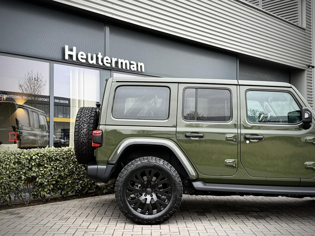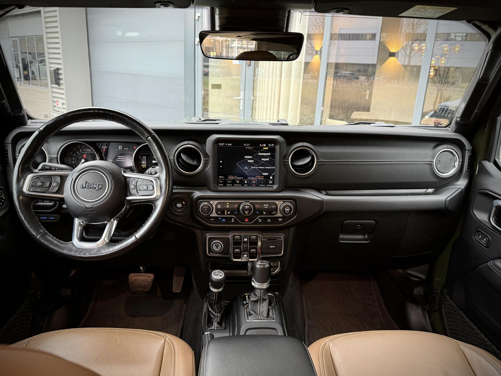 Alleen deze week, van € 63.950 voor € 61.950 In zeer nette staat verkerende, origineel Nederlands geleverde, dealer onderhouden en uniek samengestelde Jeep Wrangler plug in hybrid. Zwarte Brute velgen, cognac lederen bekleding, led verlichting, afneembare hard top met uitneembare dak panelen, premium audio installatie, afneembare trekhaak, Apple CarPlay, navigatie, stoelverwarming voor, stuurwiel verwarming, privacy glas achter, 2 x laadkabel, topstaat! Unieke kilometerstand van slechts 30d km!