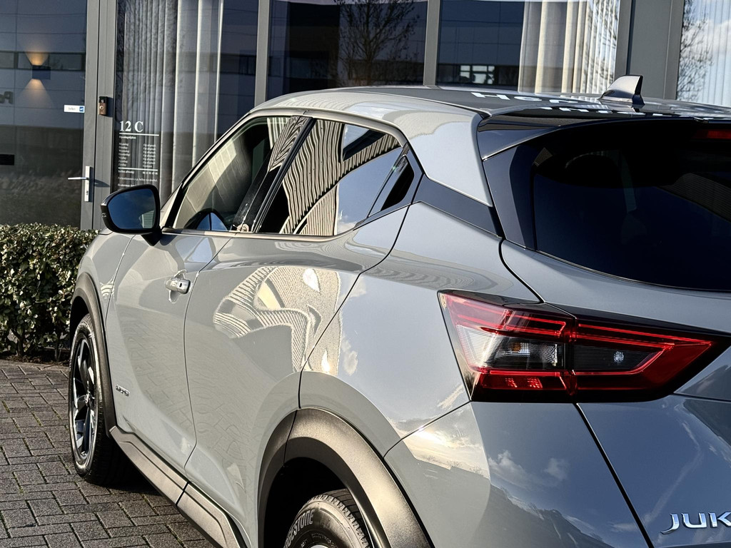 Van eerste eigenaar afkomstige, origneel NL geleverde en in nieuwstaat verkerende Nissan Juke 1.6 Hybrid. Voorzien van parkeercamera, climate control, lane assist, elec. inklapbare spiegels, privacy glas achter, hoogglans zwart/ gepolijste lichtmetalen velgen, navigatie multimedia, sportstoelen, zwarte hemelbeklding, etc. TOPSTAAT! Auto is nog voorzien van fabrieksgarantie.