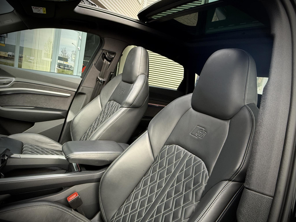 In absolute nieuwstaat verkerende, van eerste eigenaar afkomstige, dealer onderhouden en schade vrije Audi E-Tron 55 Sportback S Edition. Rechtstreeks afkomstig van Audi Duitsland. Voorzien van S line interieur, S line exterieur pakket, RS zetels voorzien van geruit nappa leder, elec. verstelbare stoelen met memory functie, Parkeer camera, 4 zone airco met bediening voor achter passagiers, Black optiek exterieur pakket, hoogglans zwarte originele S line velgen 21 inch, E-Tron oranje/ gele remklauwen, panoramadak, 2 x laadpoort rechts en links met snellaadfunctie, Key less entry & go, Sfeerverlichting (naar kleur instelbaar), Quattro vierwielaandrijving, Luchtvering (naar hoogte instelbaar), Bang & Olufson premium geluidsinstallatie, afgevlakt 3 spaaks stuurwiel, stoelverwarming, elec.achterklep, 2 x laadkabel aanwezig inclusief thuislader, topstaat! 30% wegenbelasting korting, lage bijteling voor ondernemer, prijs is inclusief BTW, Audi Accu garantie t/m 9-2030, SOH 96,8%!!, Al onze auto's zijn rijklaar en direct leverbaar inc. 1 jaar garantie.