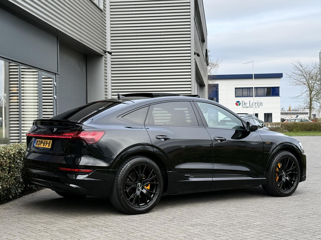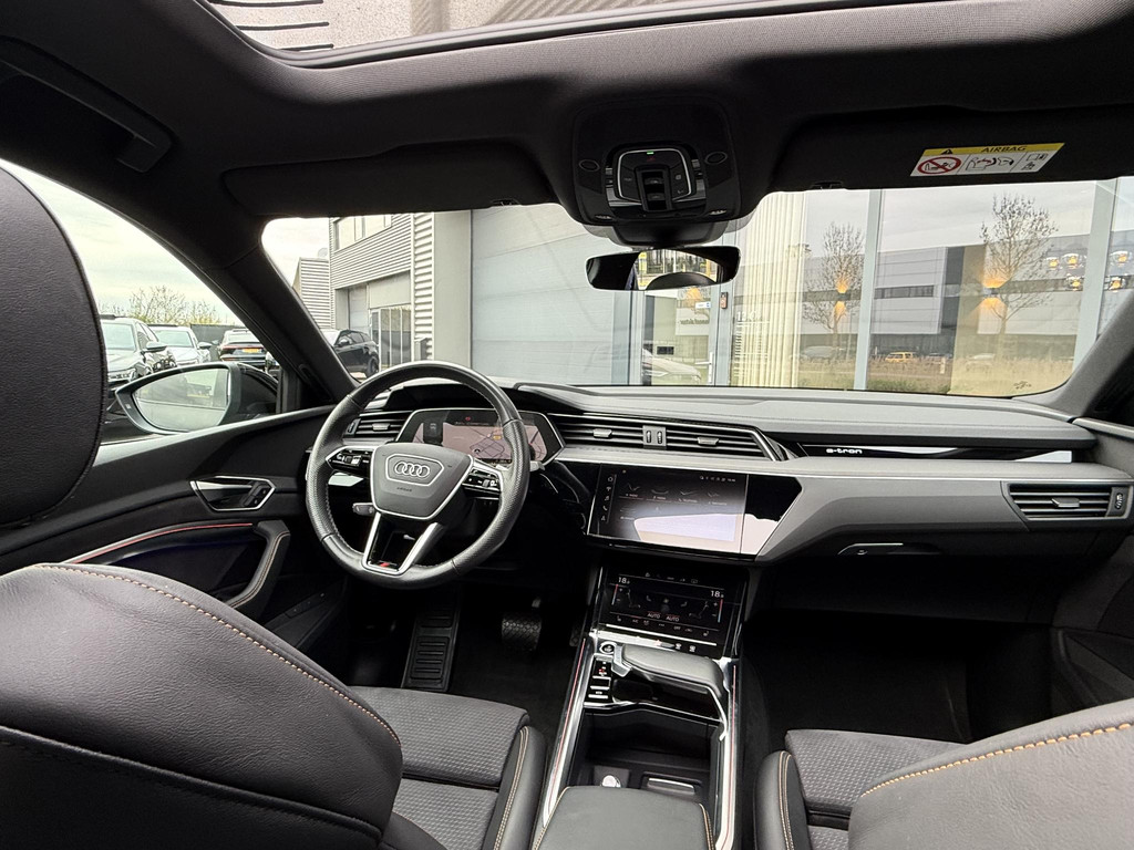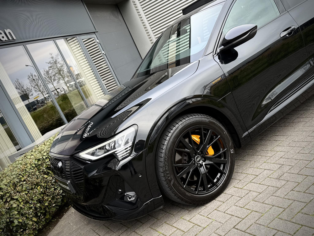 In absolute nieuwstaat verkerende, van eerste eigenaar afkomstige, dealer onderhouden en schade vrije Audi E-Tron 55 Sportback S line Black Edition. Rechtstreeks afkomstig van Audi Duitsland. Voorzien van S line interieur, S line exterieur pakket, elec. verstelbare stoelen met memory functie, Parkeer camera, Black optiek exterieur pakket, hoogglans zwarte originele S line velgen 21 inch, E-Tron oranje/ gele remklauwen incl gordels en sticksels, panoramadak, snellaadfunctie, Sfeerverlichting (naar kleur instelbaar), Quattro vierwielaandrijving, Luchtvering (naar hoogte instelbaar), 3 spaaks S line stuurwiel, stoelverwarming, elec.achterklep, 2 x laadkabel aanwezig inclusief thuislader, topstaat! 30% wegenbelasting korting, lage bijteling voor ondernemer, prijs is inclusief BTW, Audi Accu garantie t/m 11-2030, SOH 99,3%!!, Al onze auto's zijn rijklaar en direct leverbaar inc. 1 jaar garantie.