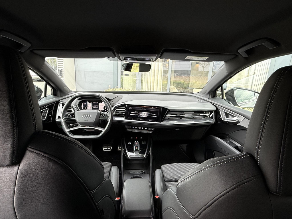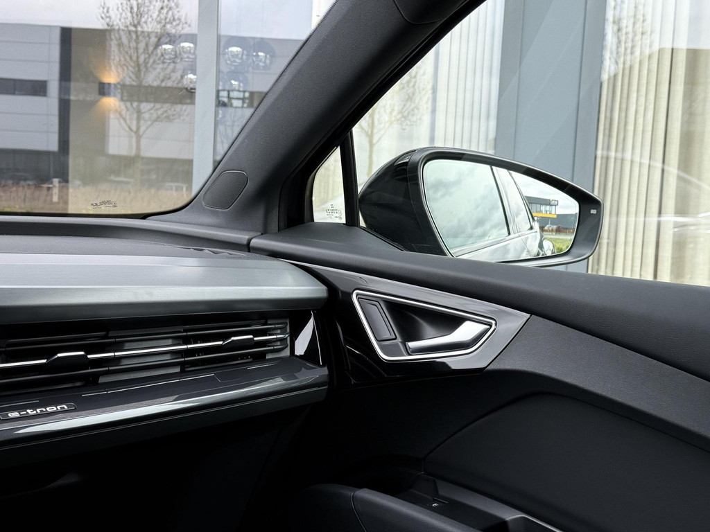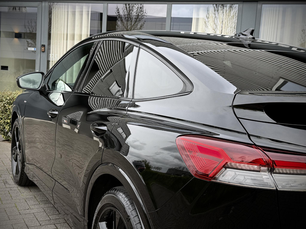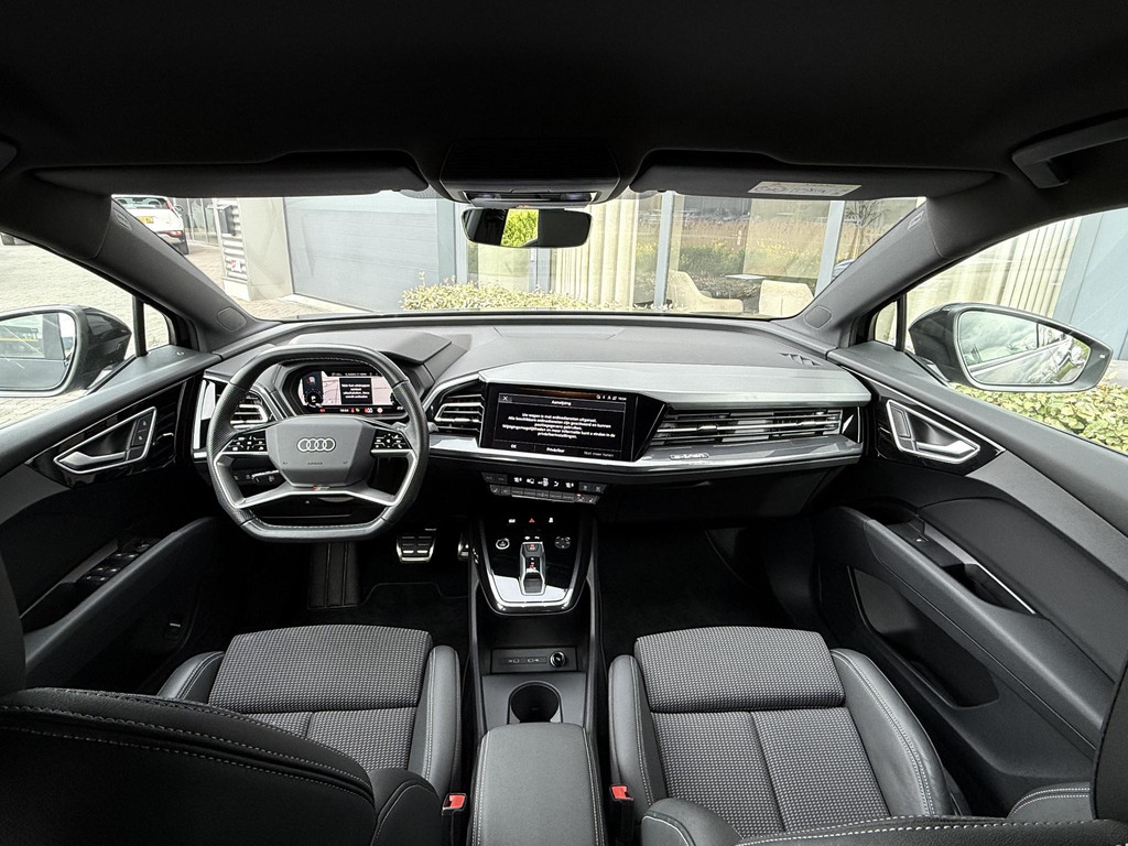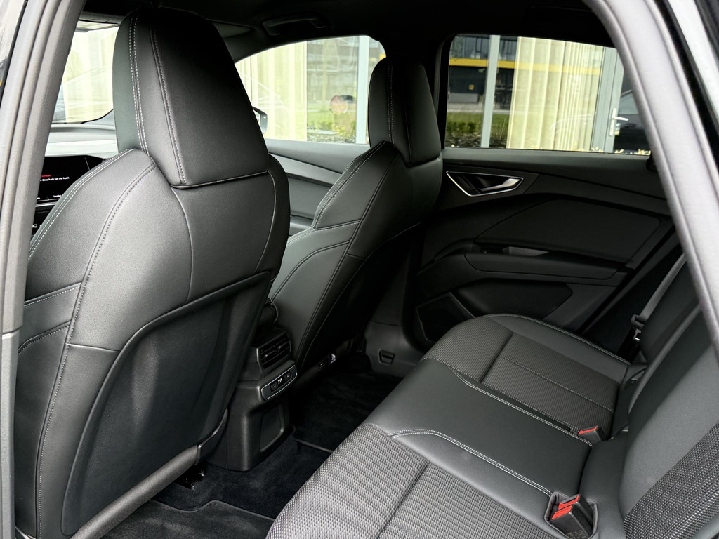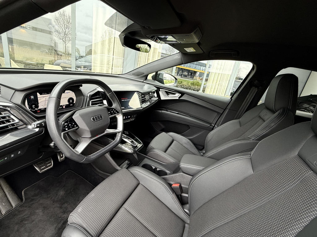 In absolute nieuwstaat verkerende Audi Q4 Sportback, S-Line uitvoering met zwart optiek pakket. Auto is verder voorzien van o.a. LED koplampen en - achterlichten, parkeersensoren voor + achter, elektr. bedienbare achterklep, 3 zone climate control met bedieningspaneel voor achter passagiers, stoelverwarming, stuurwielverwarming, MMI multifunctioneel touchscreen, S line exterieur pakket, S line interieur pakket, privacy glas achter, hoogglans zwarte S line velgen, hoogglans zwarte Audi logo’s, etc. etc. Auto heeft een uniek lage km. stand; slechts 10.868! Audi accu garantie tot 08-2023 of 160.000 km. Wij hanteren geen afleverkosten; prijs is rijklaar inclusief 1 jaar algehele Audi garantie. SOH 92,4%!!!